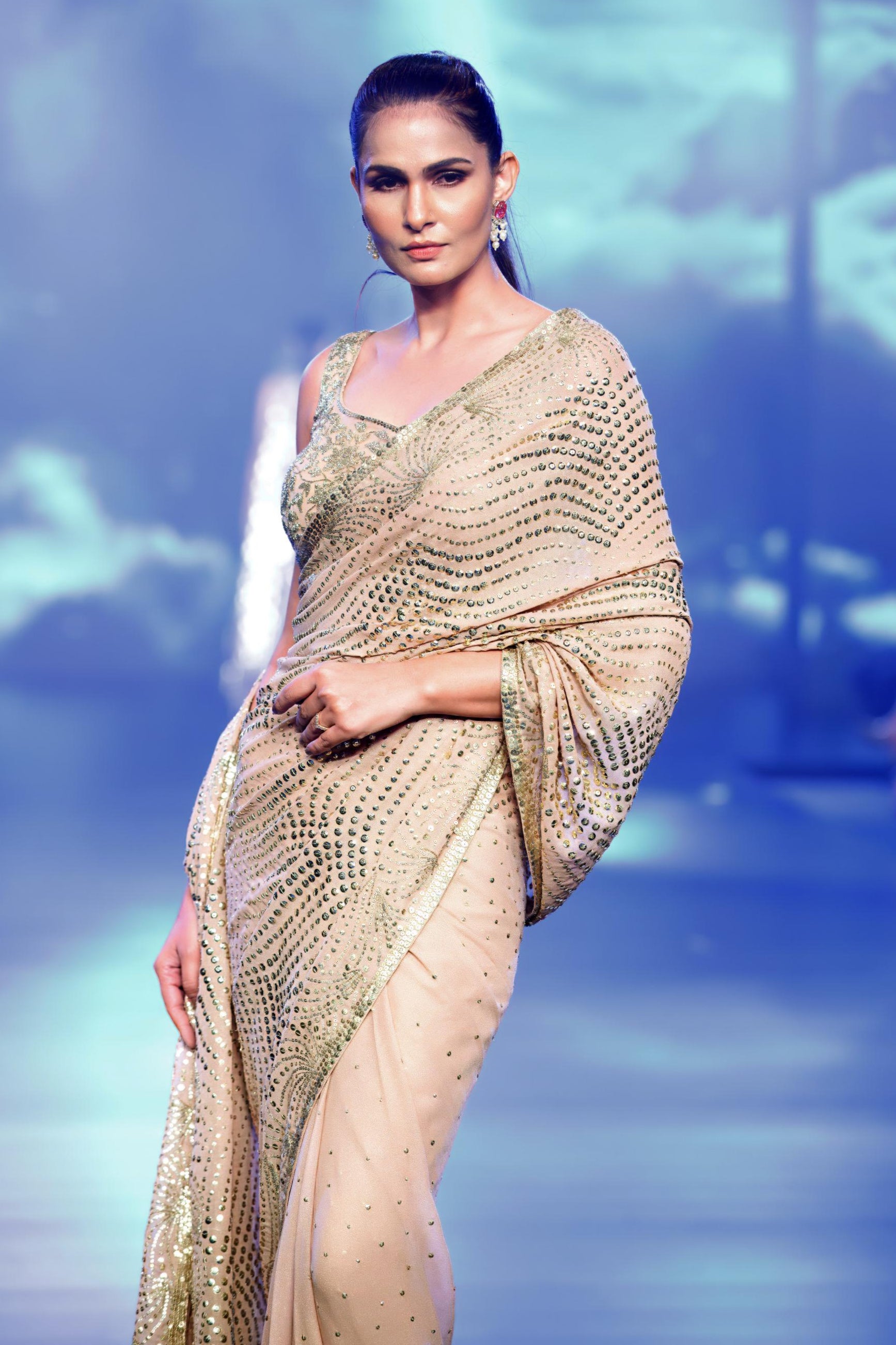 Rabani & Rakha is a renowned design house founded in 1999 by husband-and-wife duo Rahul and Shibani Rastogi, both graduates of Shri Ram College of Commerce, Delhi. Joined in 2001 by Gautam Rakha, a fellow graduate with a Diploma from NIFT, New Delhi, the brand has flourished, known for its exquisite and intricate designs. With accolades like the ‘Prix d’ Indiction’ award in Paris and experience from the studio of Tarun Tahiliani, the team has showcased their work globally, from Hong Kong to L.A. Rabani & Rakha have quickly gained critical acclaim and a discerning clientele, celebrated for their masterful craftsmanship and creative vision.