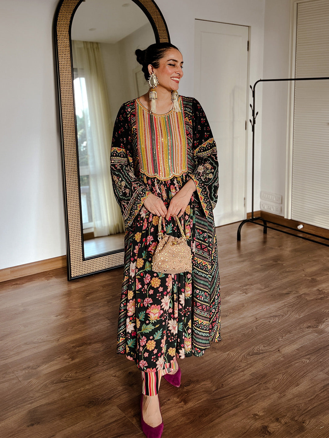 Due to the artisanal craftsmanship of our outfits, minor differences in color, embroidery, patterns, or fabric are expected and enhance their unique appeal. Actual colors may vary slightly due to screen settings and lighting.