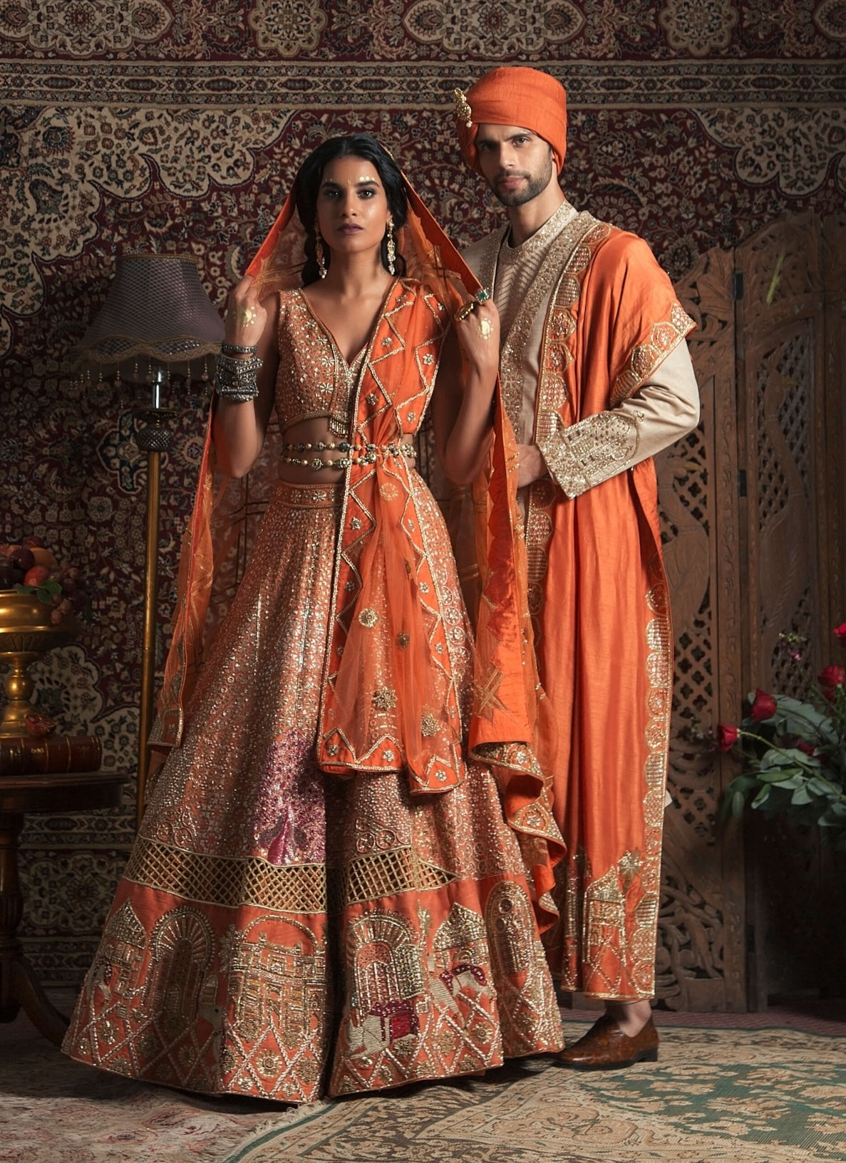 Rachit Khanna's "Turquoise" label is known for its luxurious blend of intricate embroidery, rich fabrics, and contemporary silhouettes. The designs range from opulent bridal wear to elegant occasion pieces, incorporating modern elements while maintaining a strong foundation in traditional craftsmanship. With a focus on vibrant color palettes, unique textures, and detailed embellishments, each piece offers a fresh take on Indian couture, making it ideal for fashion-forward individuals looking to make a statement at any celebration.