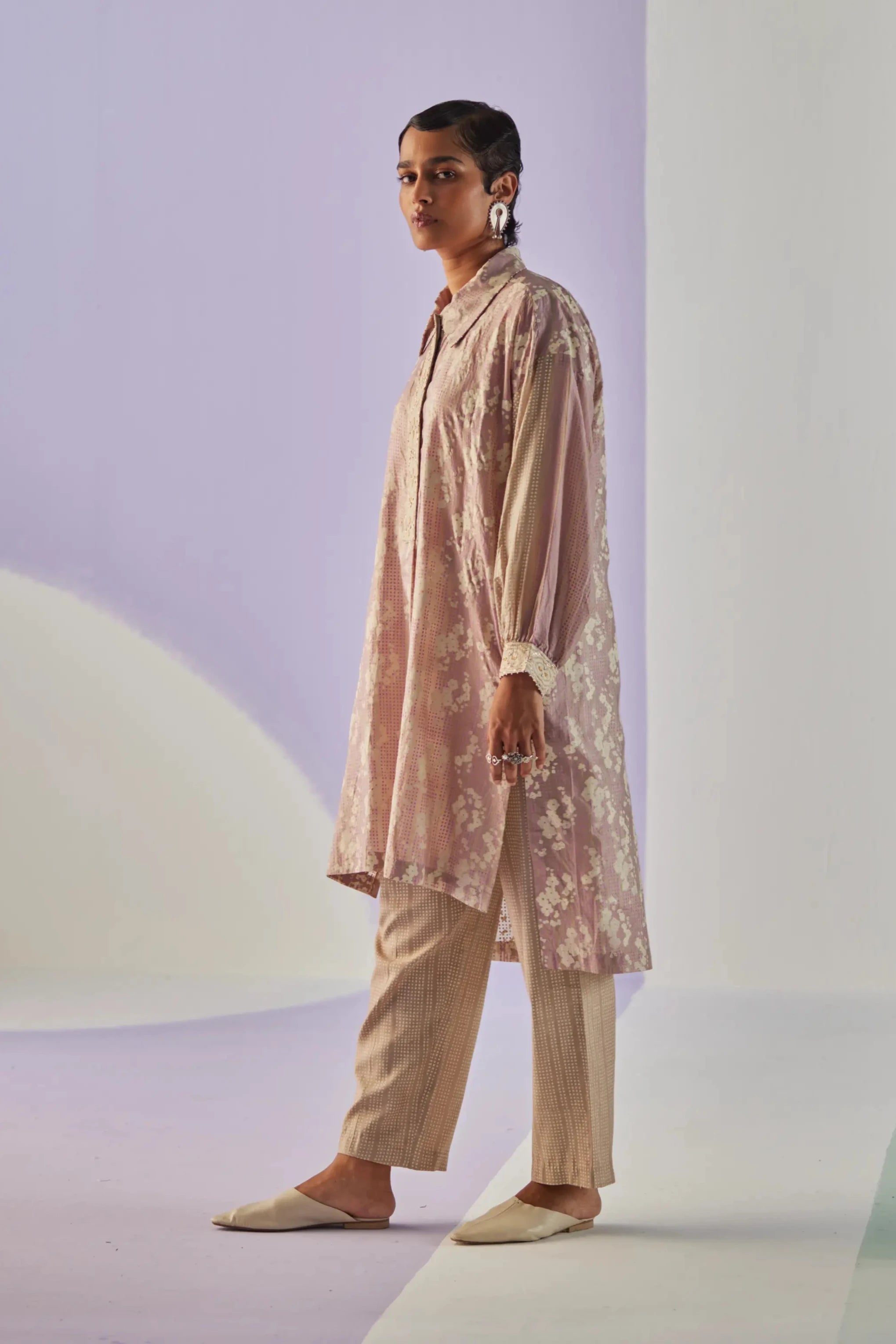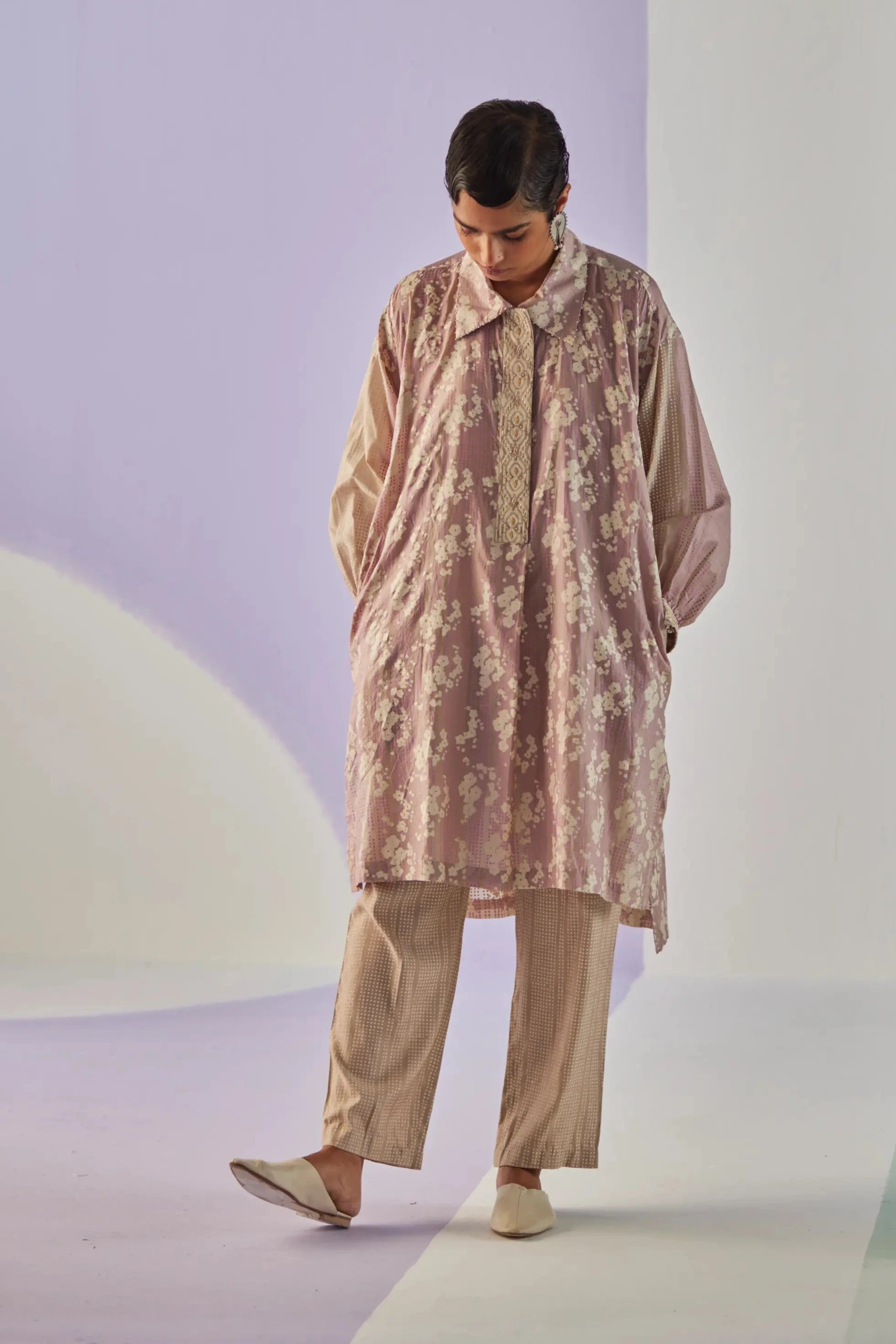 Surbhi Gupta embraces minimalism with designs inspired by architecture and global crafts. Featuring geometric motifs and symmetrical patterns, the brand combines traditional Indian techniques like block printing, tie-dye, and hand embroidery with simple, elegant silhouettes. The collections offer a refined blend of timeless craftsmanship and contemporary sophistication, perfect for those seeking understated elegance.