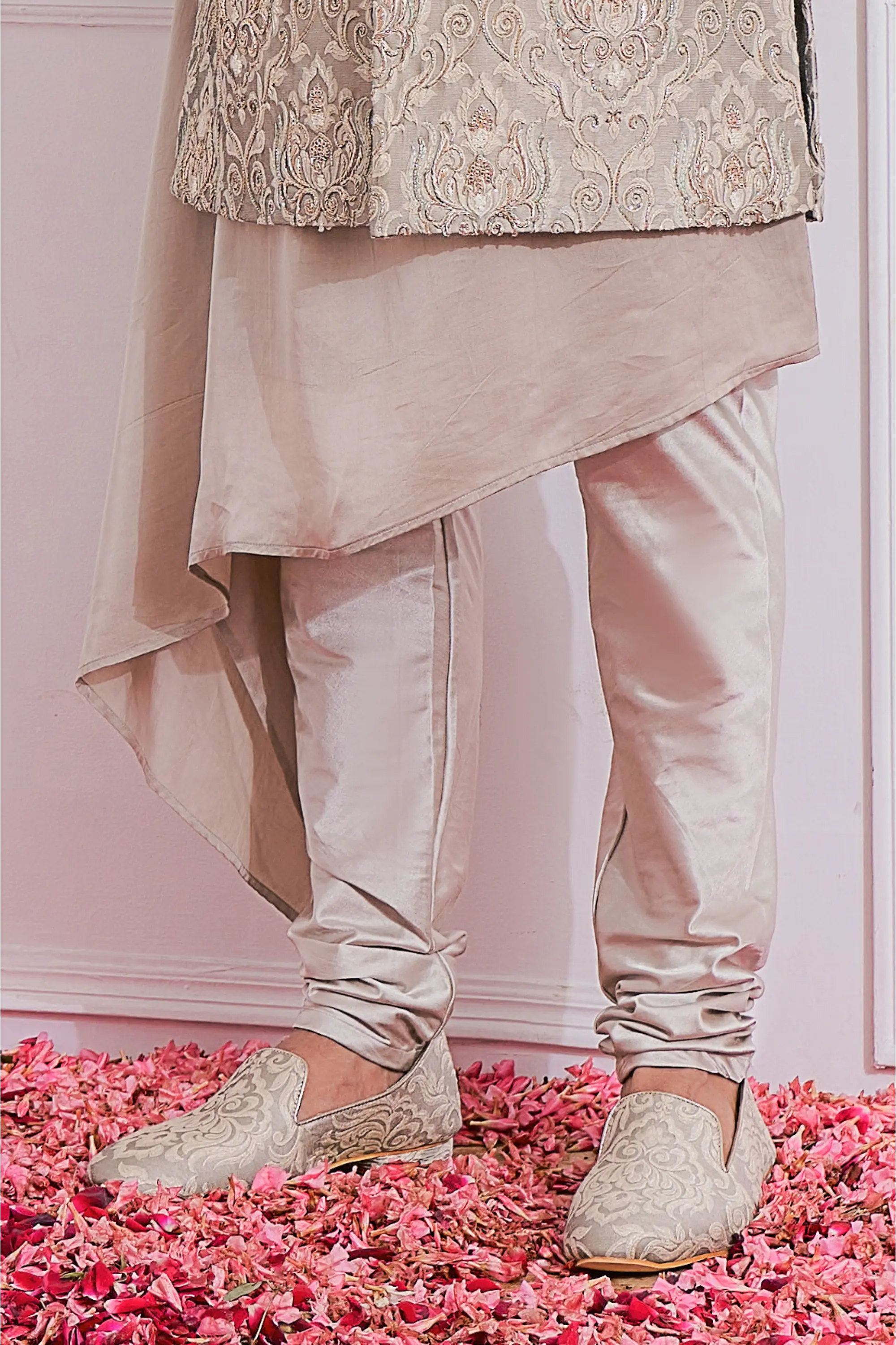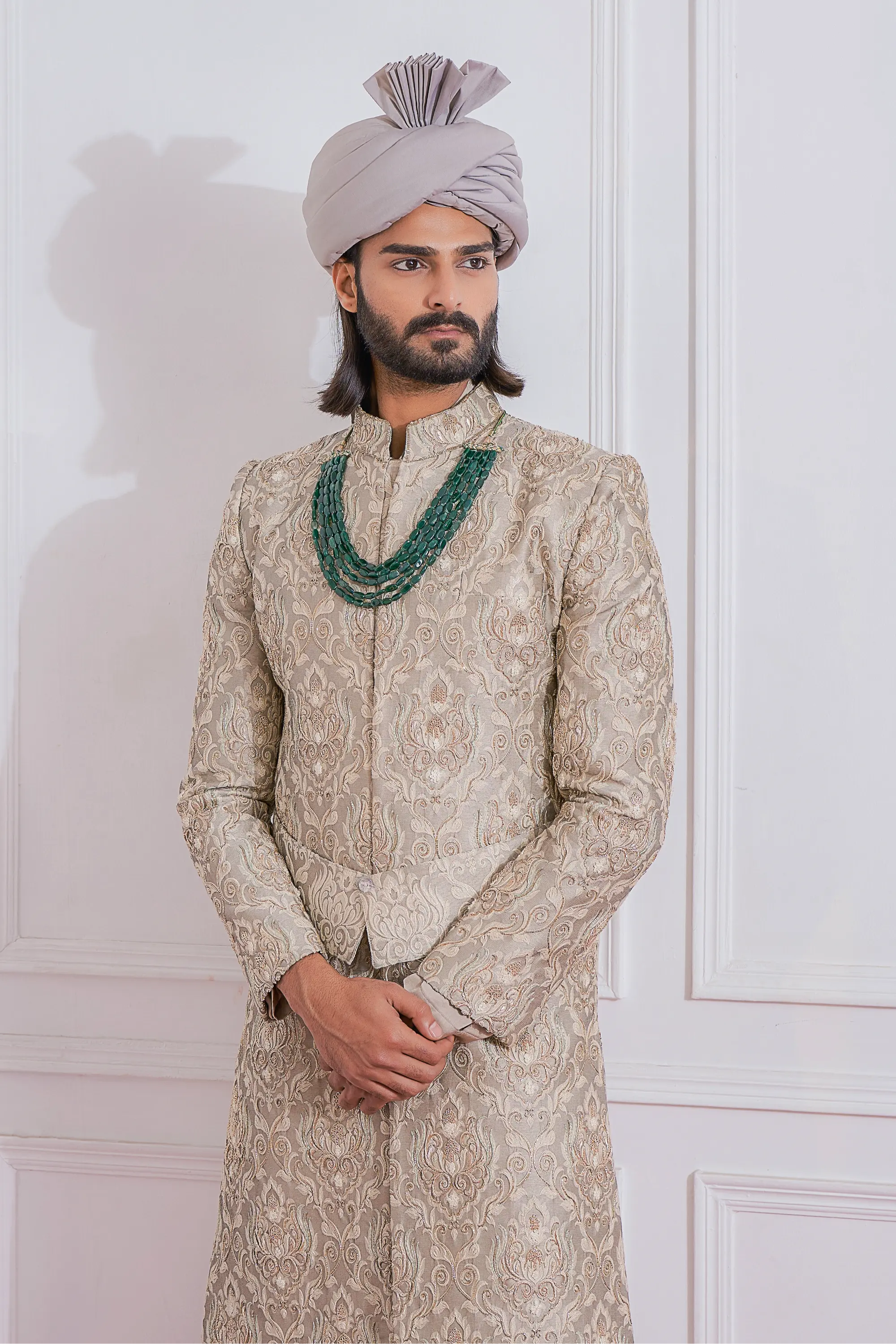 Components: 7 pieces (Sherwani, Kurta, Churidar, Kamarbandh, Stole, Safaa fabric and Shoes)
