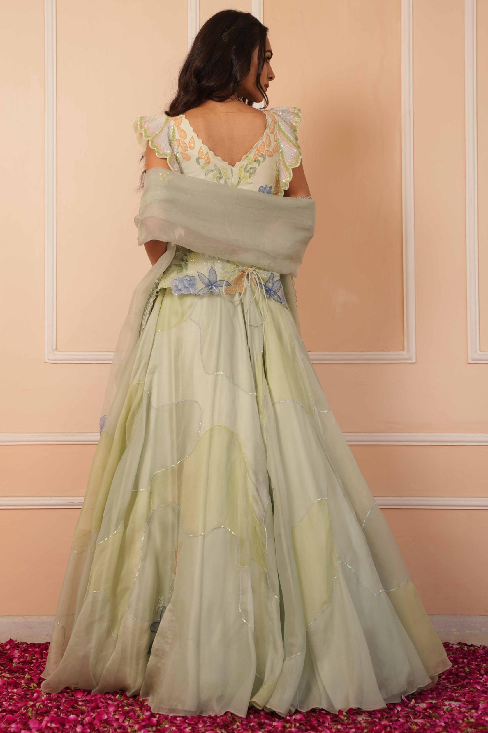 The Green Dil Se Sariyah Lehenga is a celebration of nature’s calm and feminine strength. Drenched in a soothing sage-green hue, this lehenga features soft textures, subtle embroidery, and a fluid silhouette that moves like a quiet breeze. Inspired by the name Sariyah, meaning “clouds at night,” this piece captures the spirit of softness and resilience—crafted for the woman who leads with grace and authenticity. Perfect for intimate weddings, soulful ceremonies, or garden soirées. Pair it with muted gold jewelry and earthy tones for a look that’s grounded, glowing, and truly dil se.