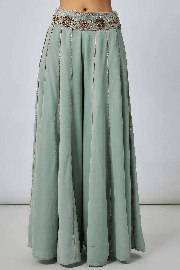 The Green Embroidered Choli Sharara Set is a striking ensemble that combines rich color with intricate craftsmanship. The vibrant green choli, adorned with detailed embroidery, pairs beautifully with the flowing sharara pants, creating a graceful silhouette. Perfect for festive occasions, this set exudes elegance and charm, making it a standout piece for any celebration. The balanced design ensures both comfort and luxury, offering a timeless yet contemporary appeal.