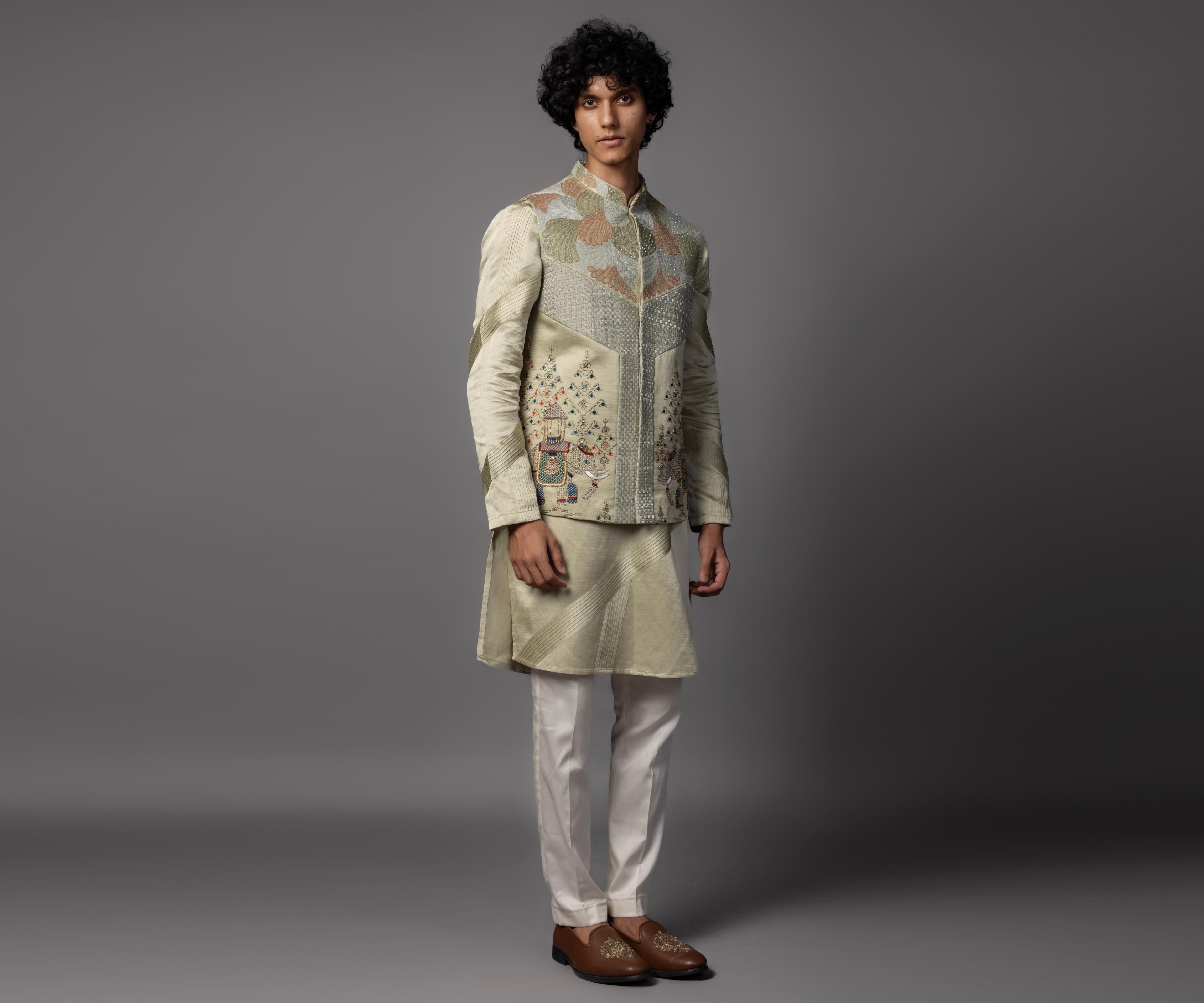 Components: 3 pieces (Nehru jacket, kurta, pajama)