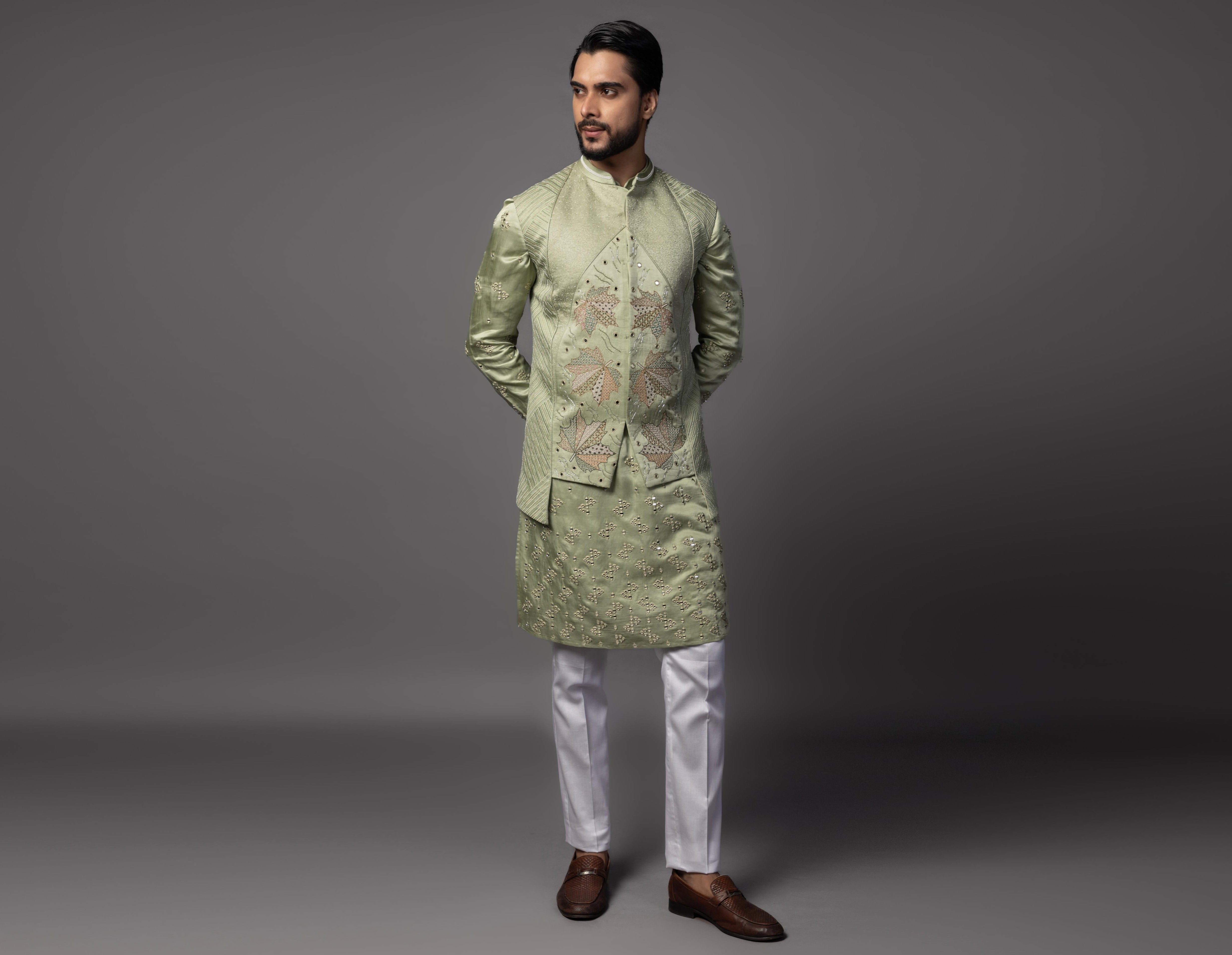 Components: 3 pieces (Nehru jacket, kurta, pajama)