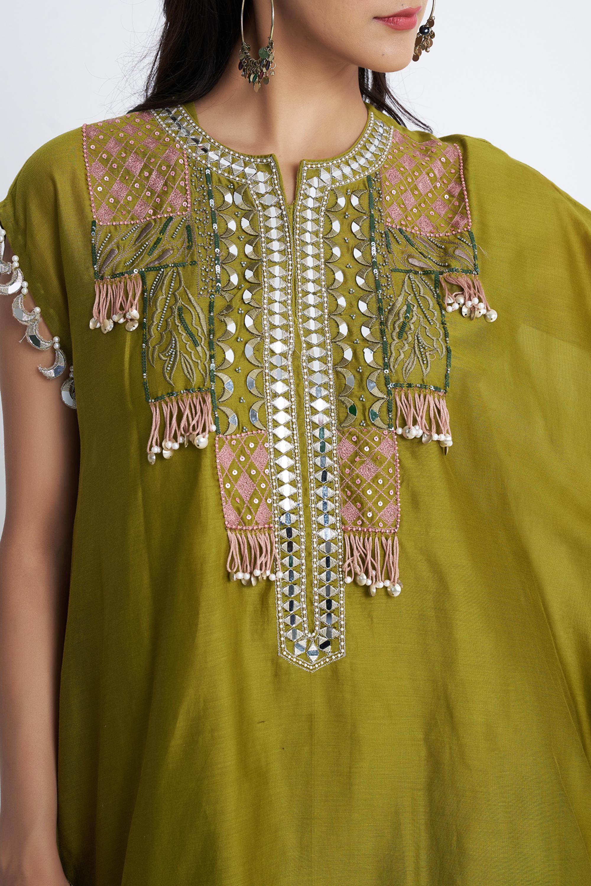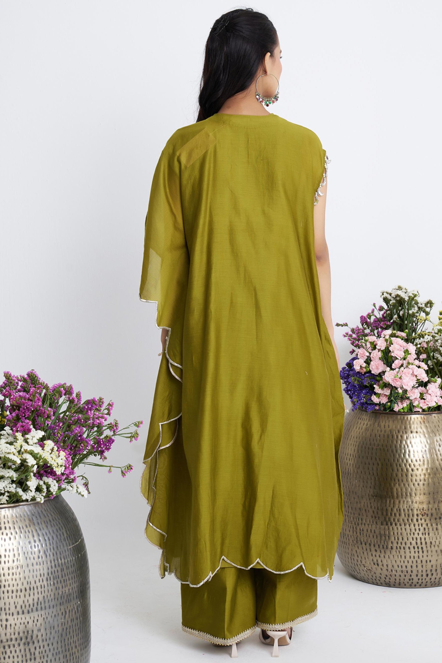 Graceful and free-flowing, the Green Leher Kaftan Set captures the rhythm of movement and modern elegance. Inspired by the gentle waves of “leher” (meaning ripple), this ensemble features subtle patterns and a fluid silhouette that drapes beautifully across the body. Crafted in a soothing green hue, the kaftan is paired with comfortable bottoms, making it perfect for resort wear, festive lounging, or intimate celebrations. The Green Leher Kaftan Set blends relaxed luxury with effortless style—a timeless staple for those who value comfort with a refined touch.