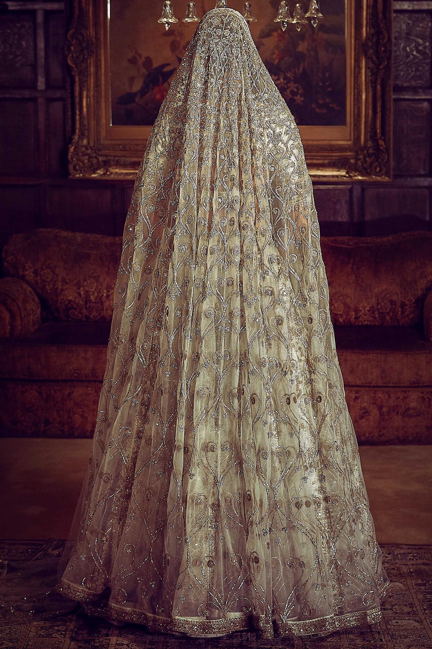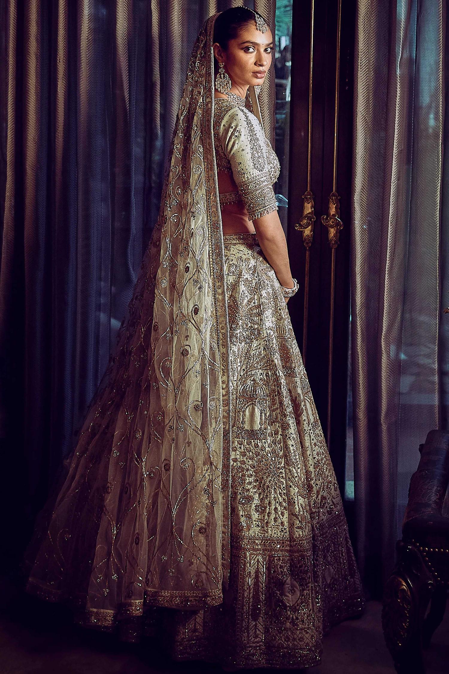 Components: 4 pieces (Blouse, lehenga, dupatta, veil)