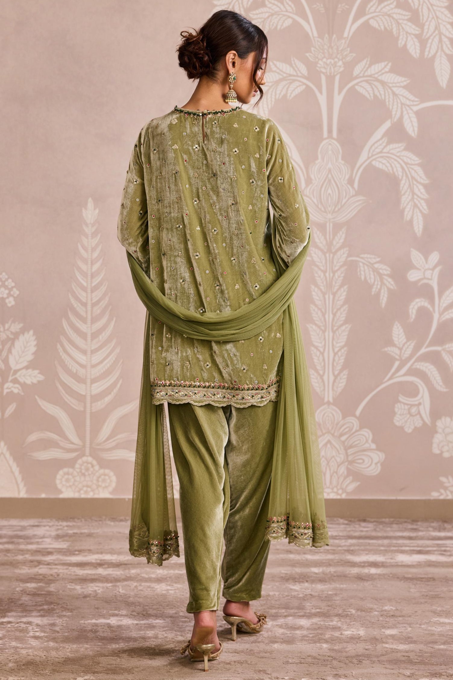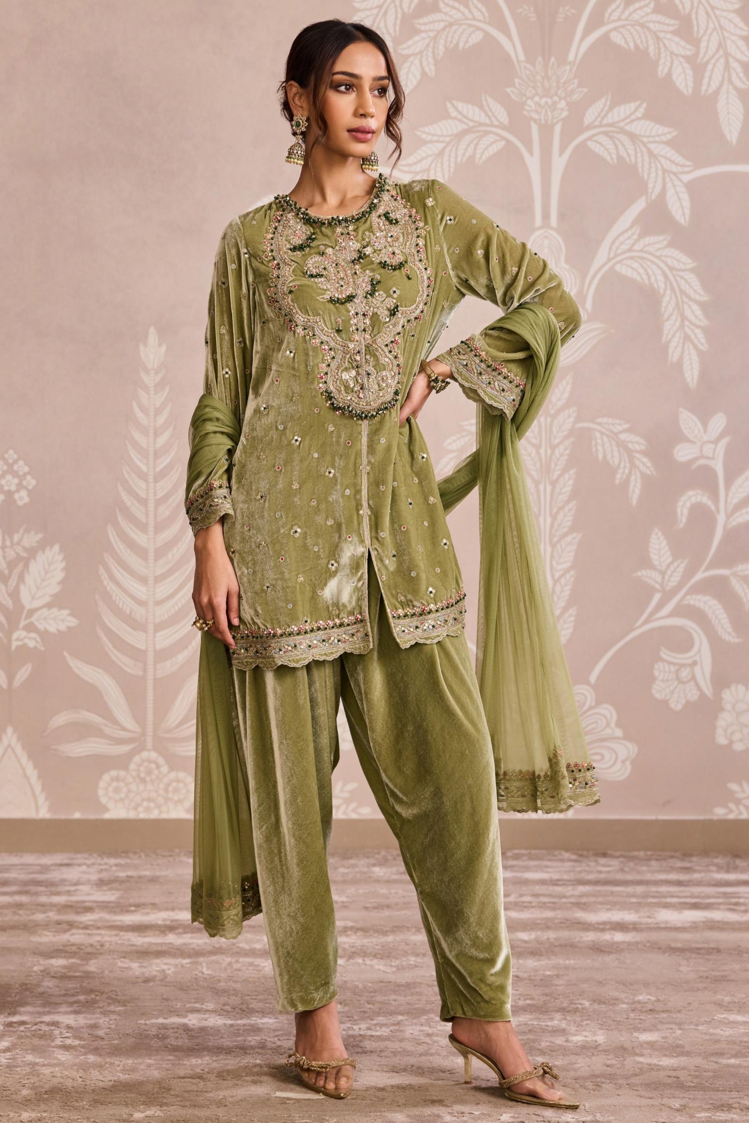Indulge in opulence with the Green Velvet Nooreh Ever After Ensemble Kurta SetÑa statement of regal elegance and rich craftsmanship. Designed in plush velvet, this kurta set brings together the richness of jewel-toned green with timeless silhouettes. Ideal for winter weddings, intimate festivities, or celebratory evenings, the ensemble radiates warmth, luxury, and sophistication. The lush texture and refined details make it a standout piece in any festive wardrobe.