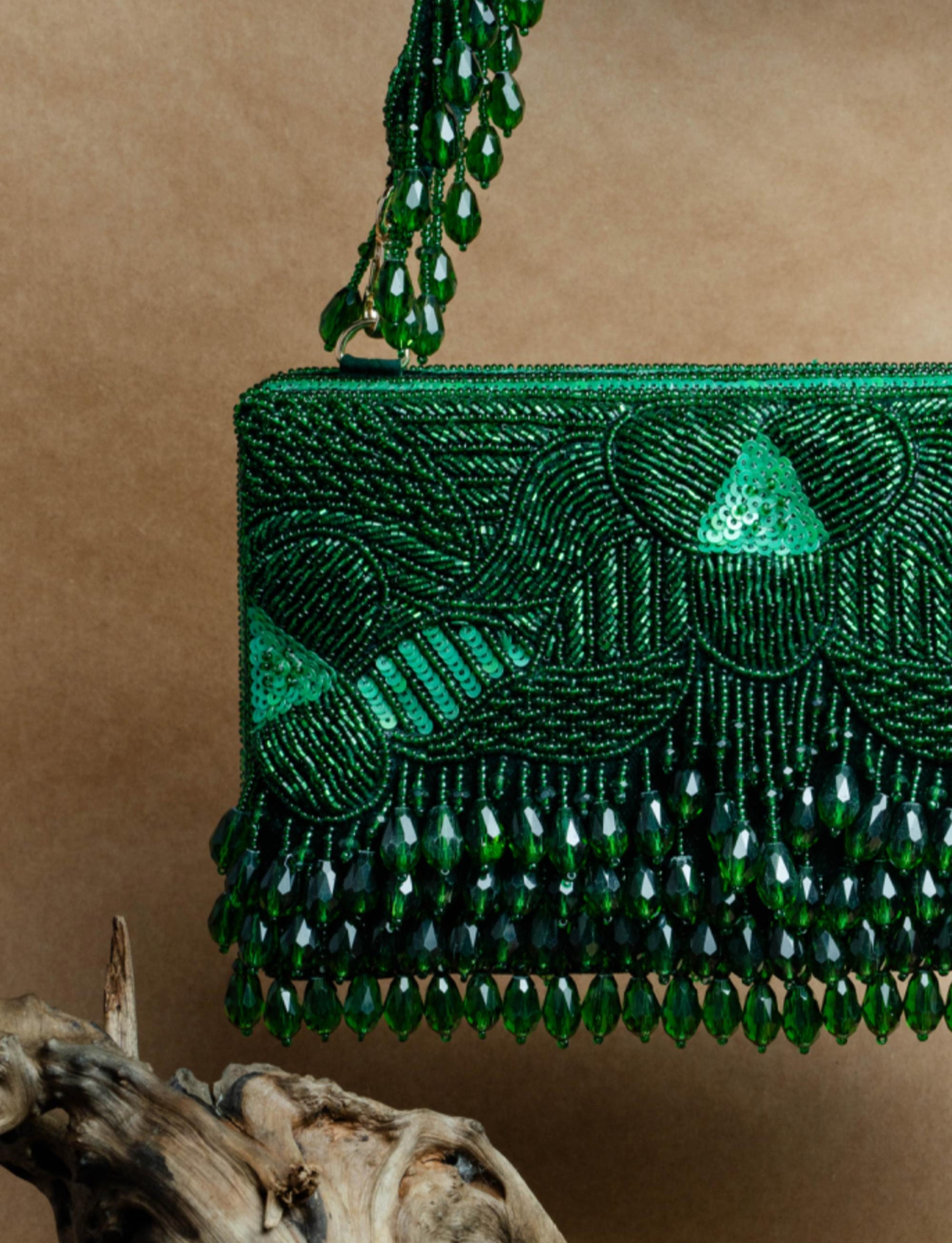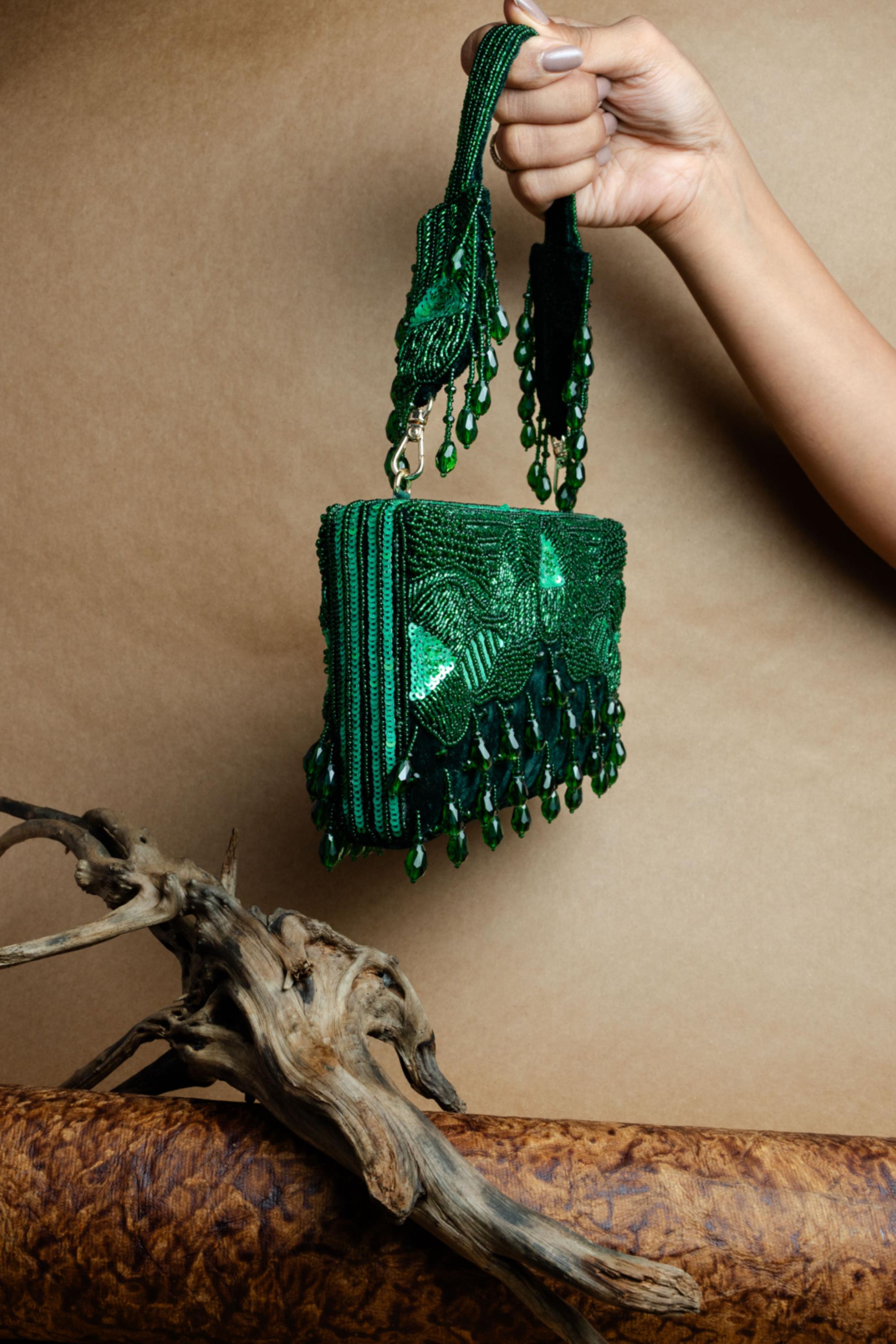 Elegant with a touch of opulence, the Green Ornate Radiance Kasse Bag is a statement piece that blends tradition with modern design. Showcasing a structured box silhouette with detailed embellishments, this accessory brings richness and vibrancy to your festive wardrobe. The regal green hue makes it a perfect companion for weddings, cultural celebrations, and evening soirées. Designed for the woman who loves refined style with bold charm, the Green Ornate Radiance Kasse Bag adds depth and drama to every look.