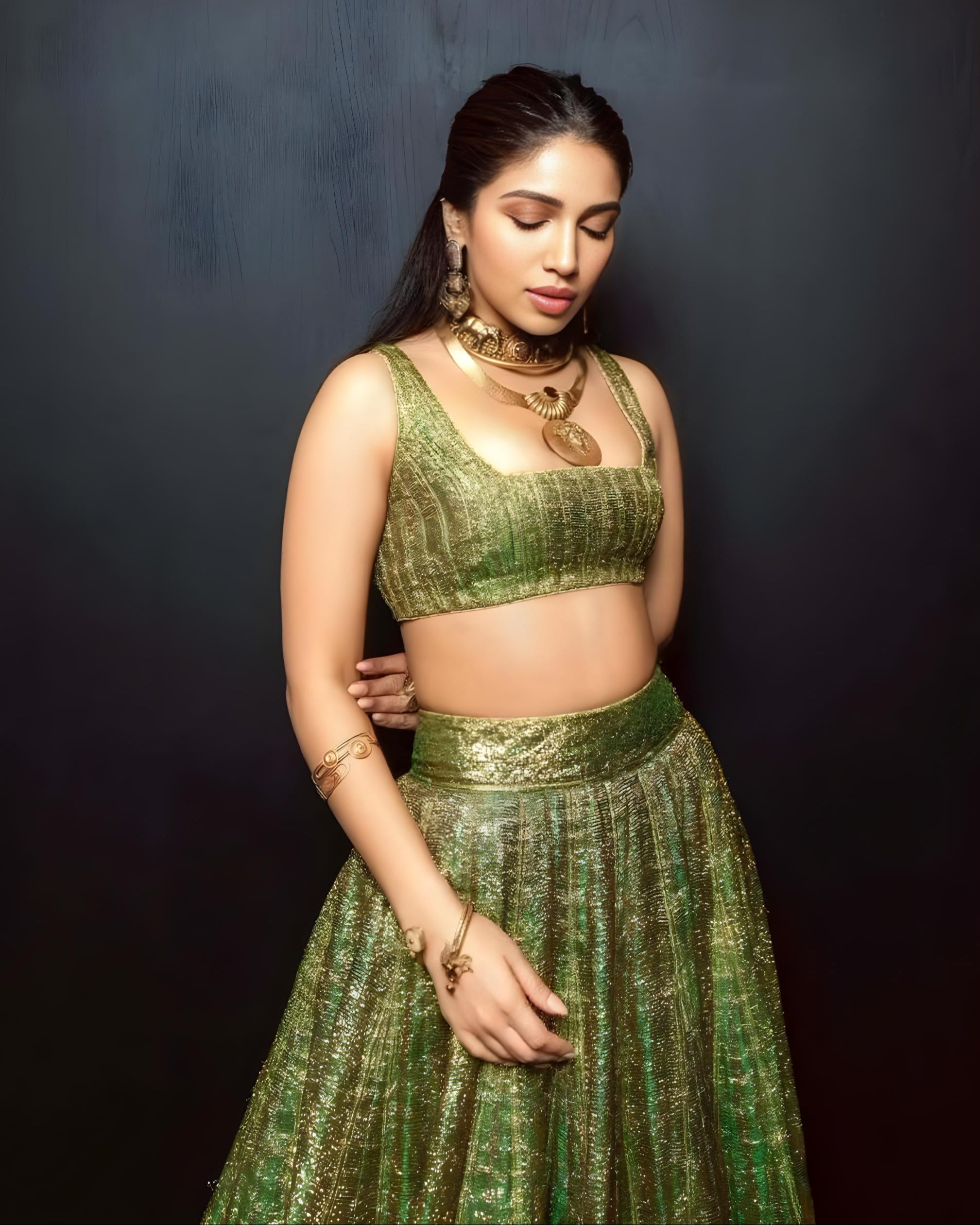 The Reshm Angoori Lehenga Set features a vibrant green lampi lehenga paired with a chic square neck sleeveless blouse. This elegant combination blends traditional craftsmanship with contemporary style, perfect for festive occasions, weddings, or special celebrations. The rich fabric and clean silhouette ensure a graceful and polished look, making it an ideal choice for those seeking classic charm with a modern touch.