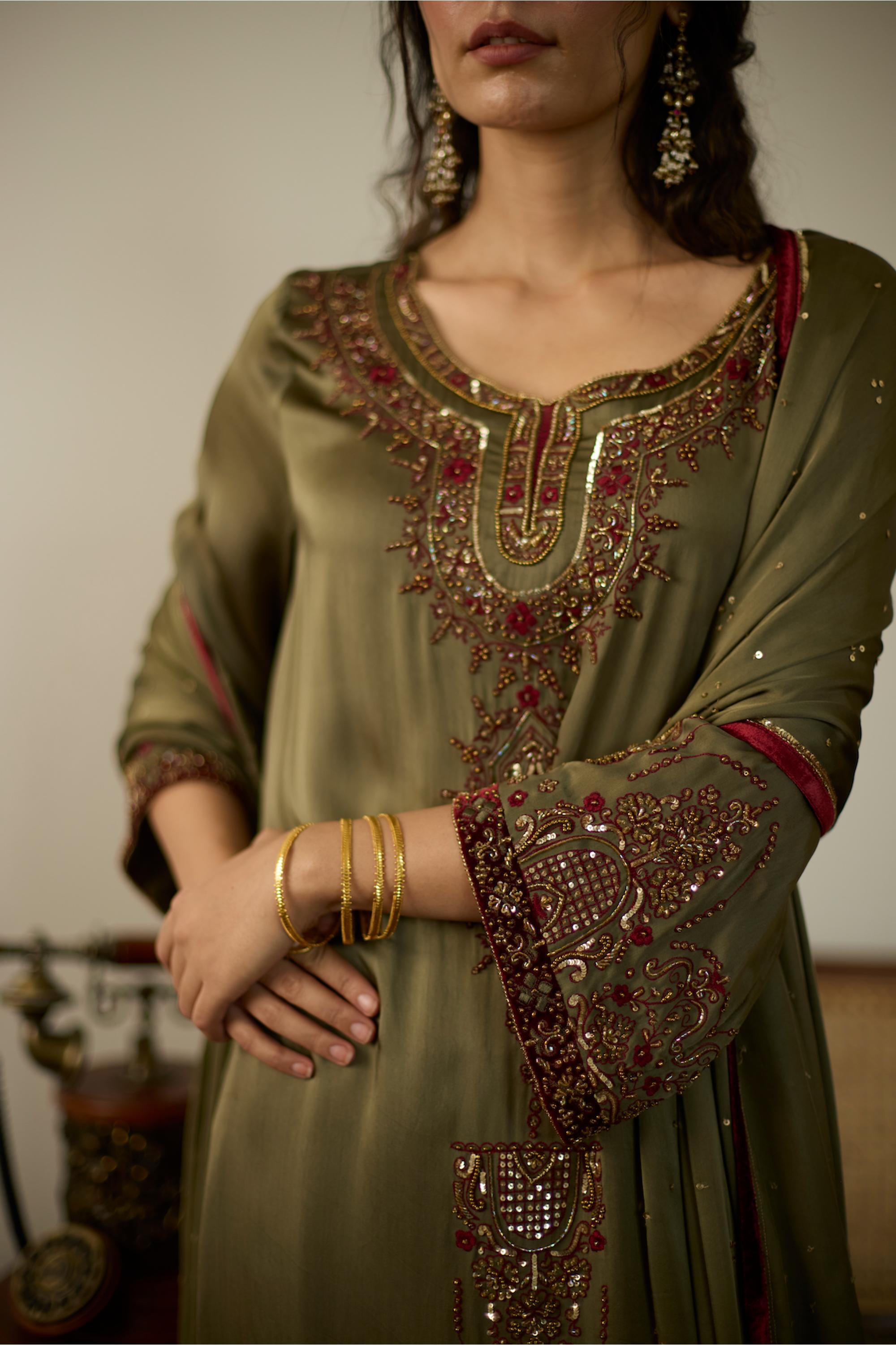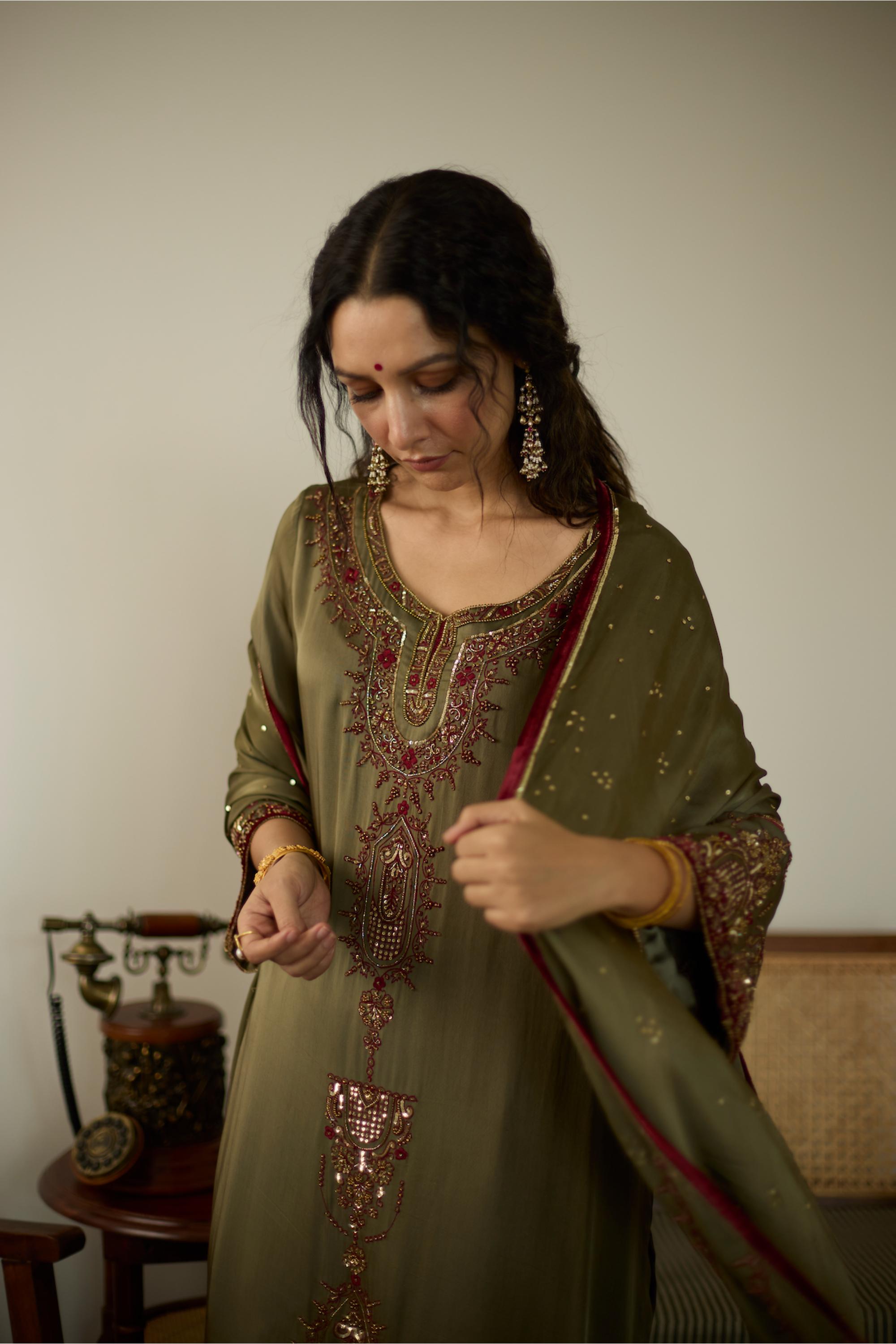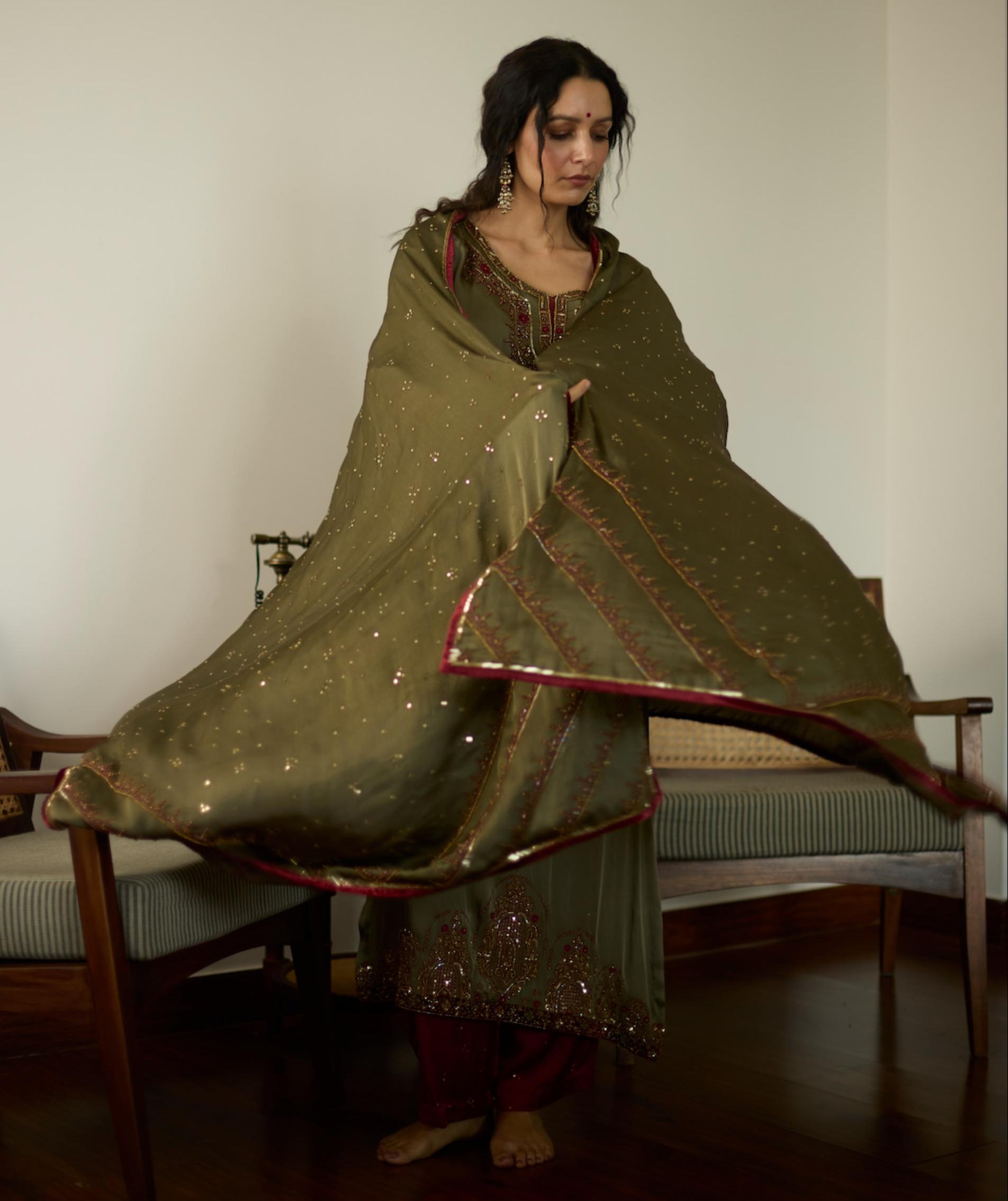 Components: 3 pieces (Kaftan, pant, dupatta)