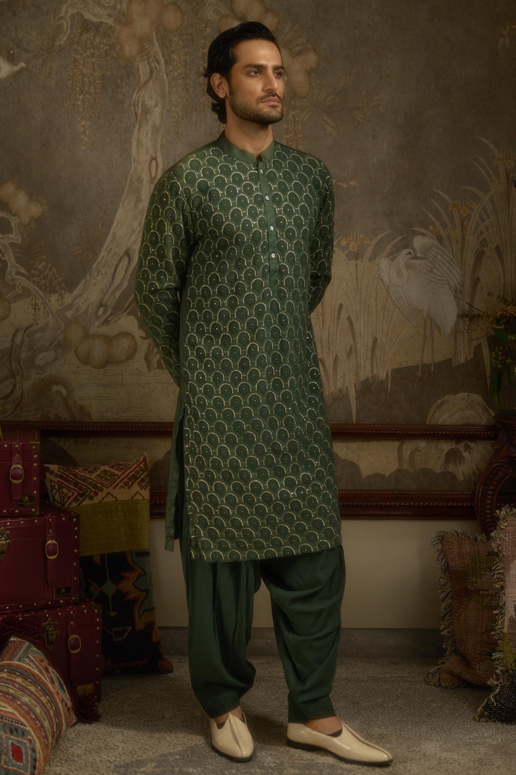 The Green Stardust Baageen Kurta captures the essence of nature through its lush hue and subtle handcrafted details. With its fine threadwork and modern cut, this kurta is a perfect blend of elegance and simplicity. It’s designed to elevate your festive wardrobe—ideal for haldi, intimate weddings, or cultural celebrations. Crafted in breathable fabric, it offers comfort without compromising on style.