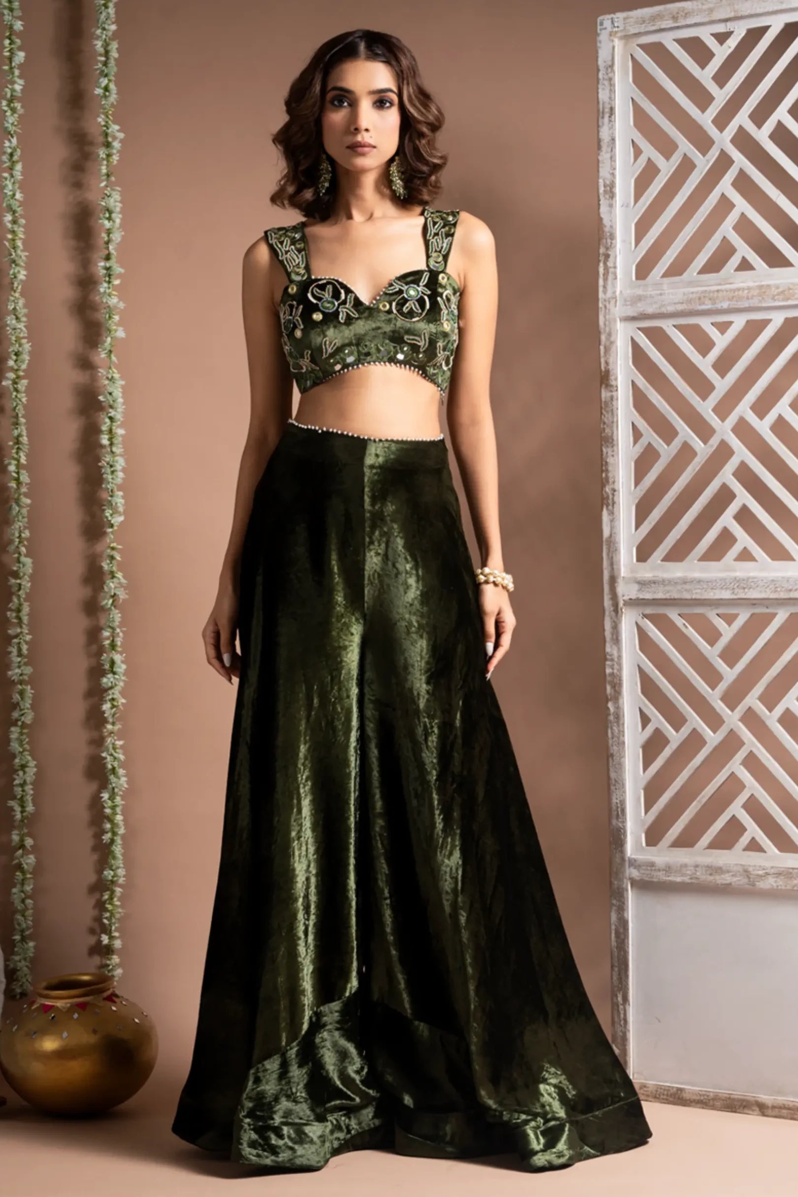 Components: 2 pieces (Bustier, palazzo)