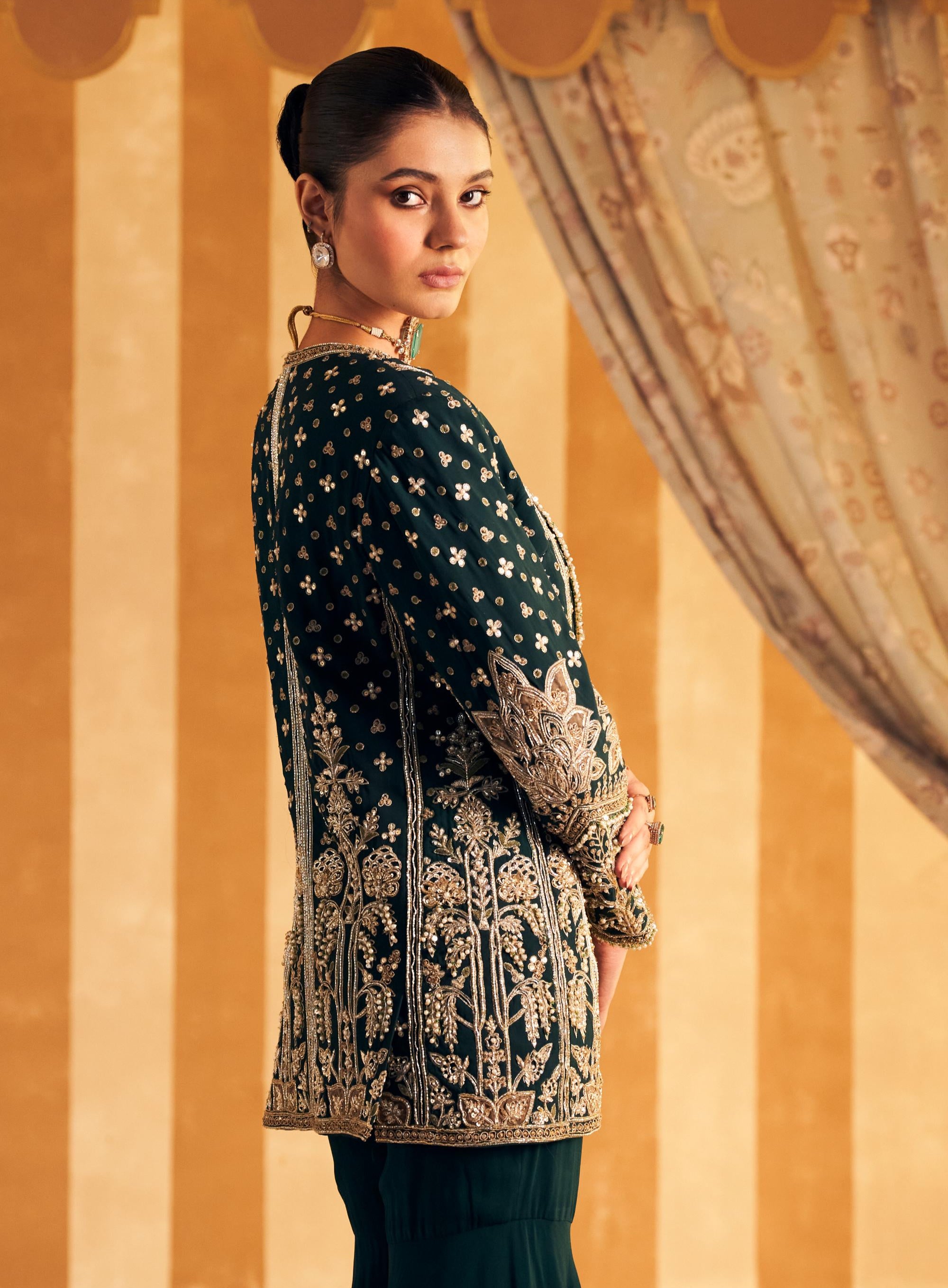 Exude modern sophistication with the Green Zeeb Hunar Pant Suit Set, a stunning blend of contemporary style and traditional charm. Designed in a vibrant green hue, this pant suit set features intricate details and a flattering silhouette that offers both comfort and elegance. The perfect choice for festive occasions, cultural gatherings, or special celebrations, this ensemble brings together the best of both worlds with its chic design and timeless appeal. Make a lasting impression with this effortlessly stylish and graceful pant suit.