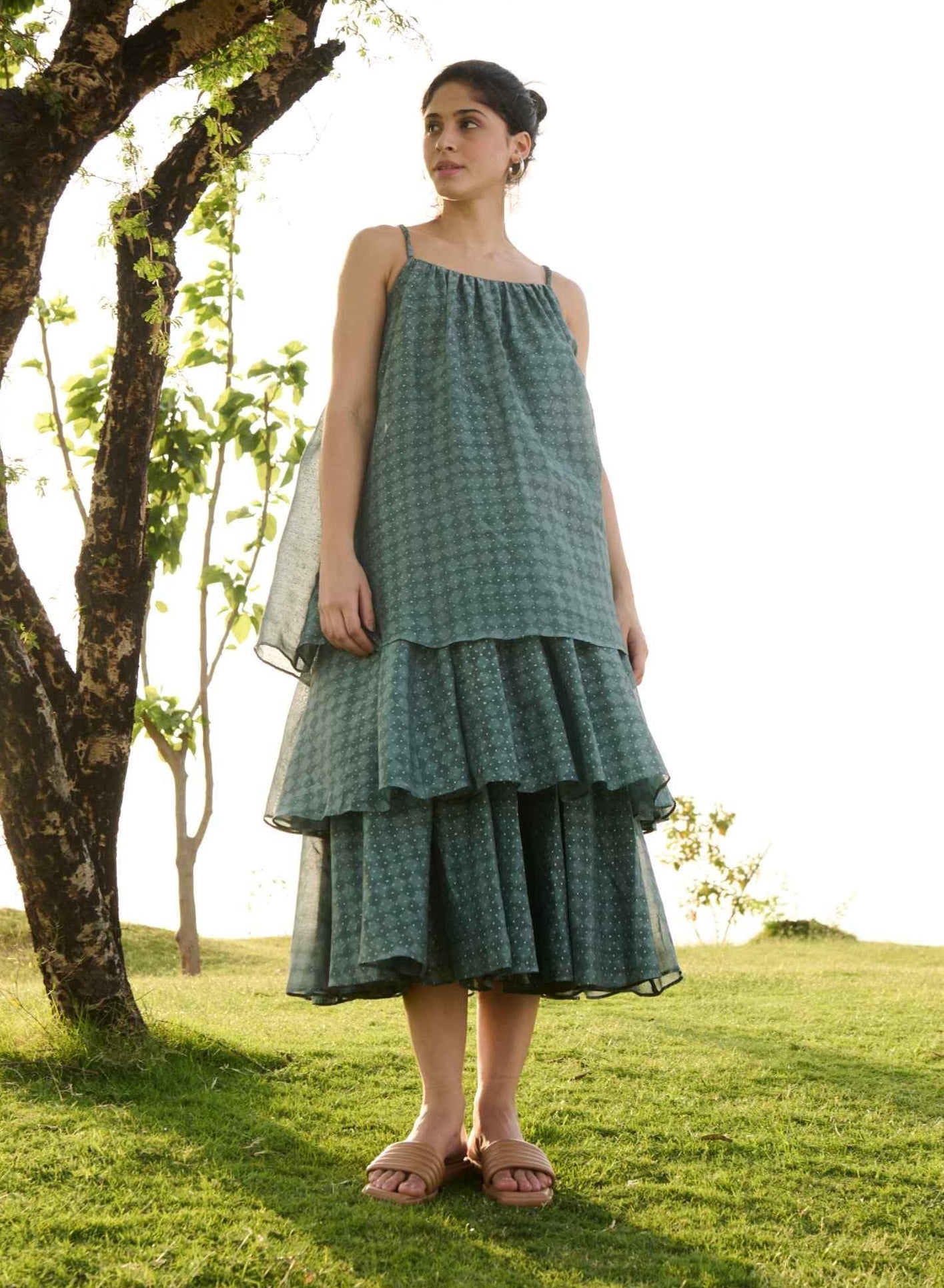 Elevate your wardrobe with the Princess Dress, crafted from our luxurious hand-block printed cotton-silk fabric. This exquisite dress features three tiers that ensure a graceful fall and fluid movement, adding a touch of elegance to any occasion. The intricate block print design enhances the dress's sophisticated charm, making it a perfect choice for both formal events and special gatherings.