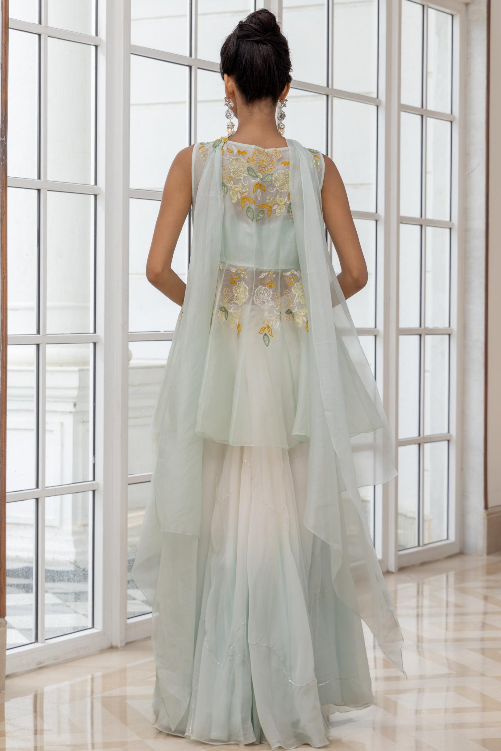 Components: 3 pieces (Peplum kurta, sharara, dupatta)