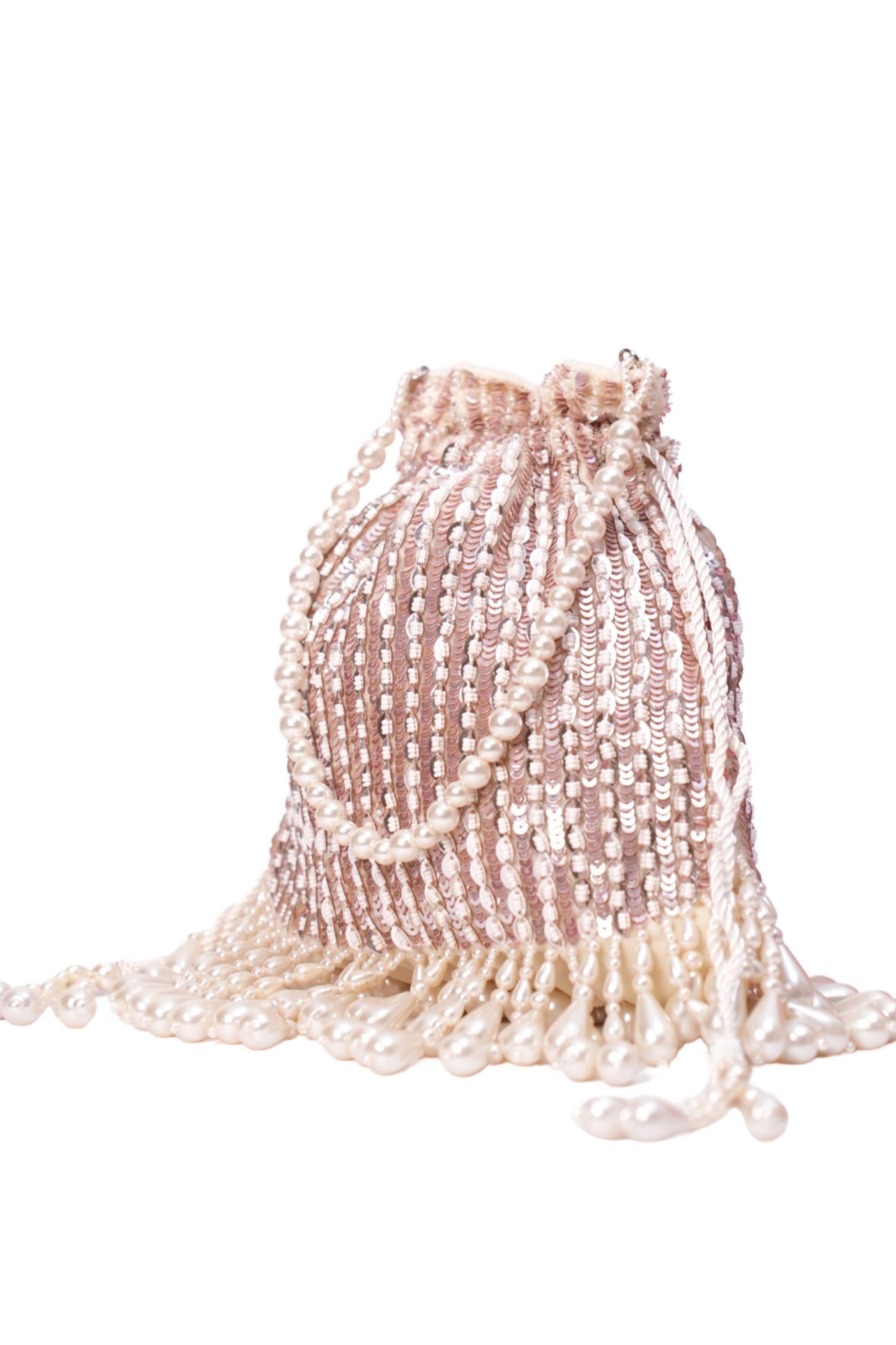The potli bag for women by House of Kosha is crafted for Indian weddings and festive occasions. Designed in a soft pink shade, this potli bag for women features elegant embellishments that enhance traditional appeal. Ideal for wedding rituals and festive functions, the potli bag for women pairs beautifully with lehengas and sarees. The compact interior of this potli bag for women holds essentials comfortably. Designed for traditional styling, the potli bag for women offers timeless charm.