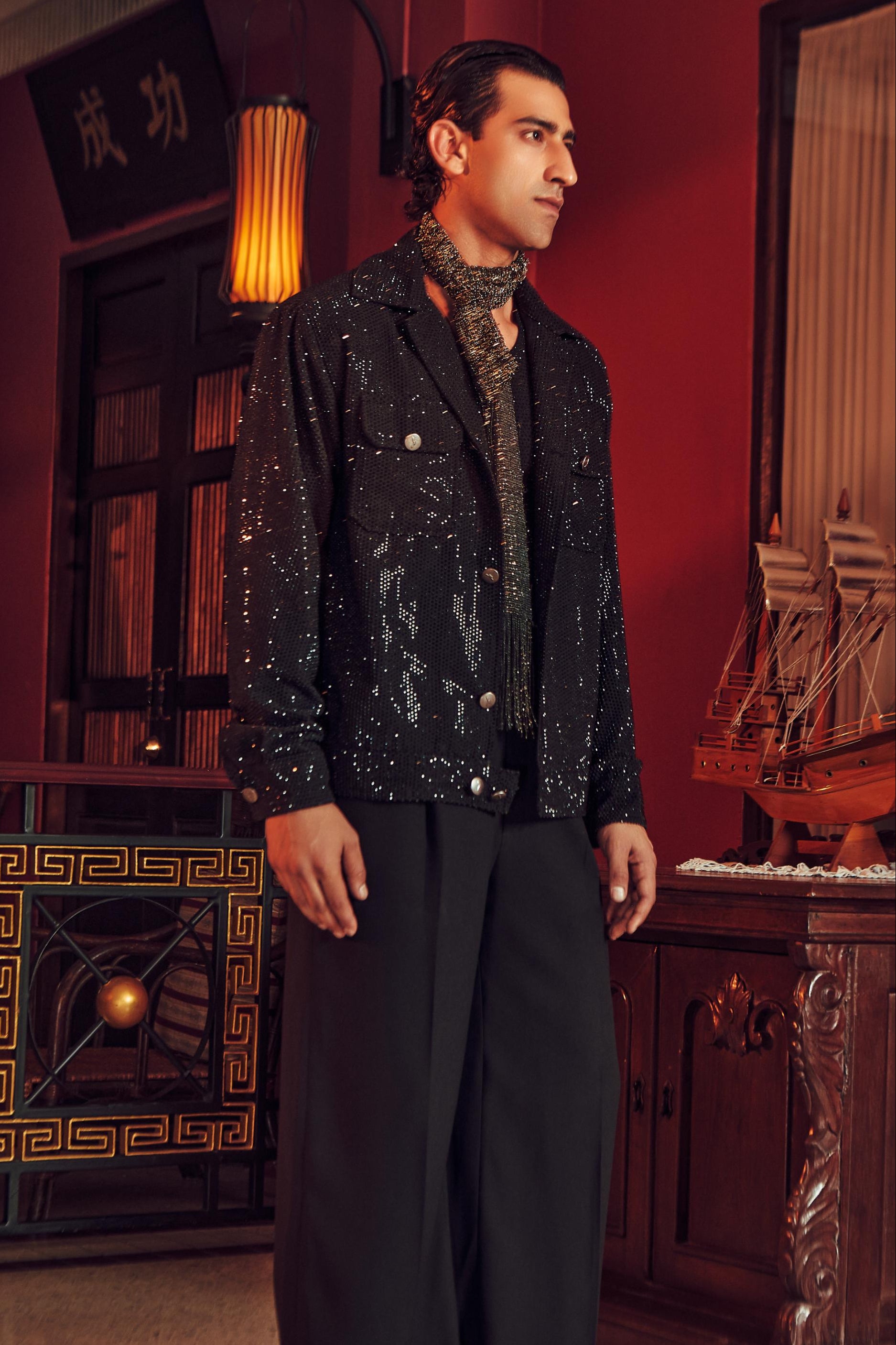 The Black Draco One Night in Bangkok bomber set is curated for sleek, urban-inspired styling. Ideal for evening outings, social gatherings, and modern celebrations, this bomber set balances comfort with bold presence. A versatile addition to contemporary wardrobes.