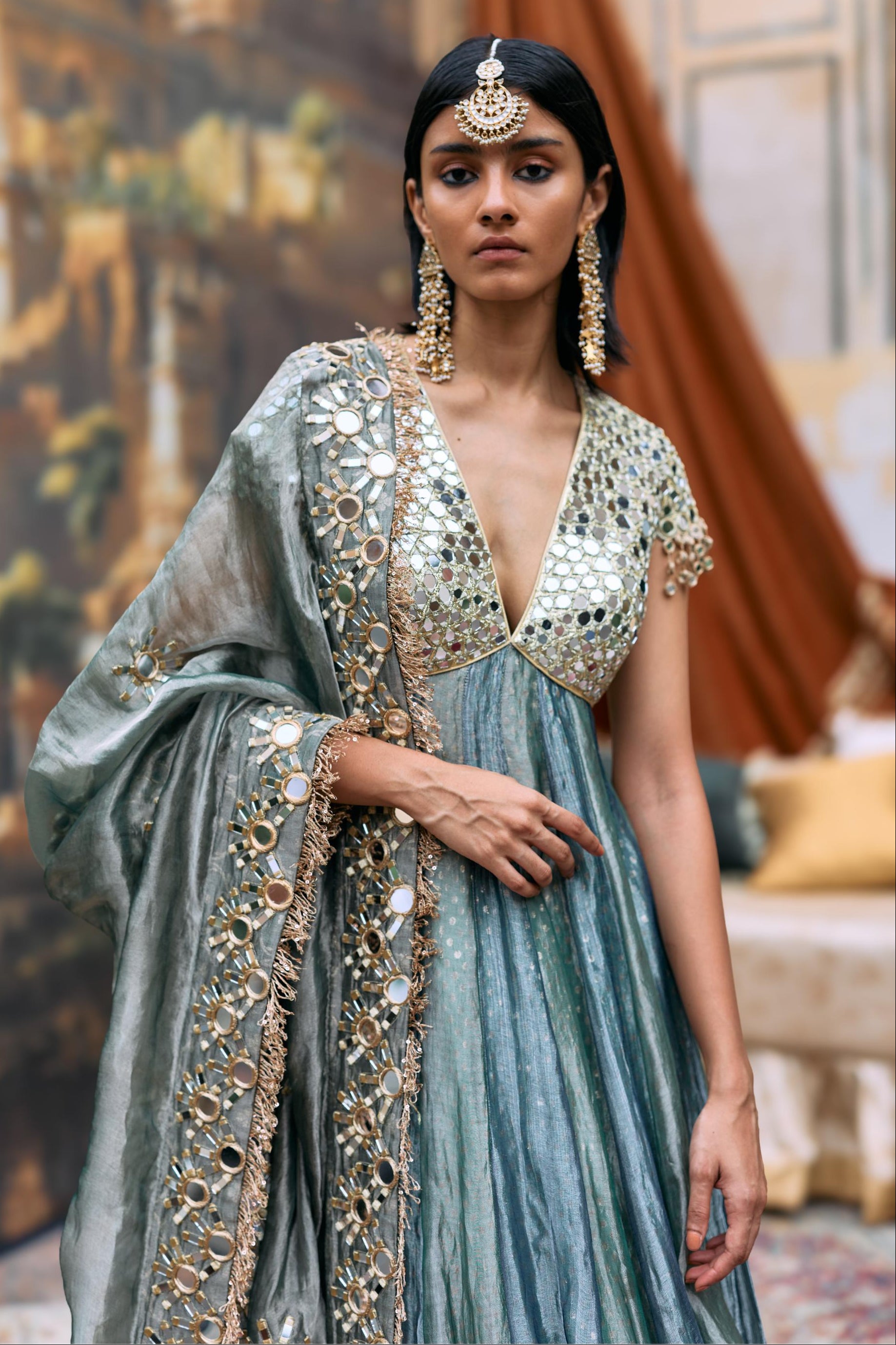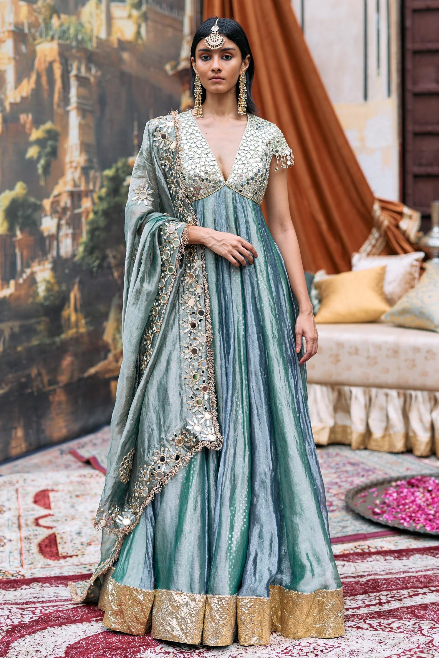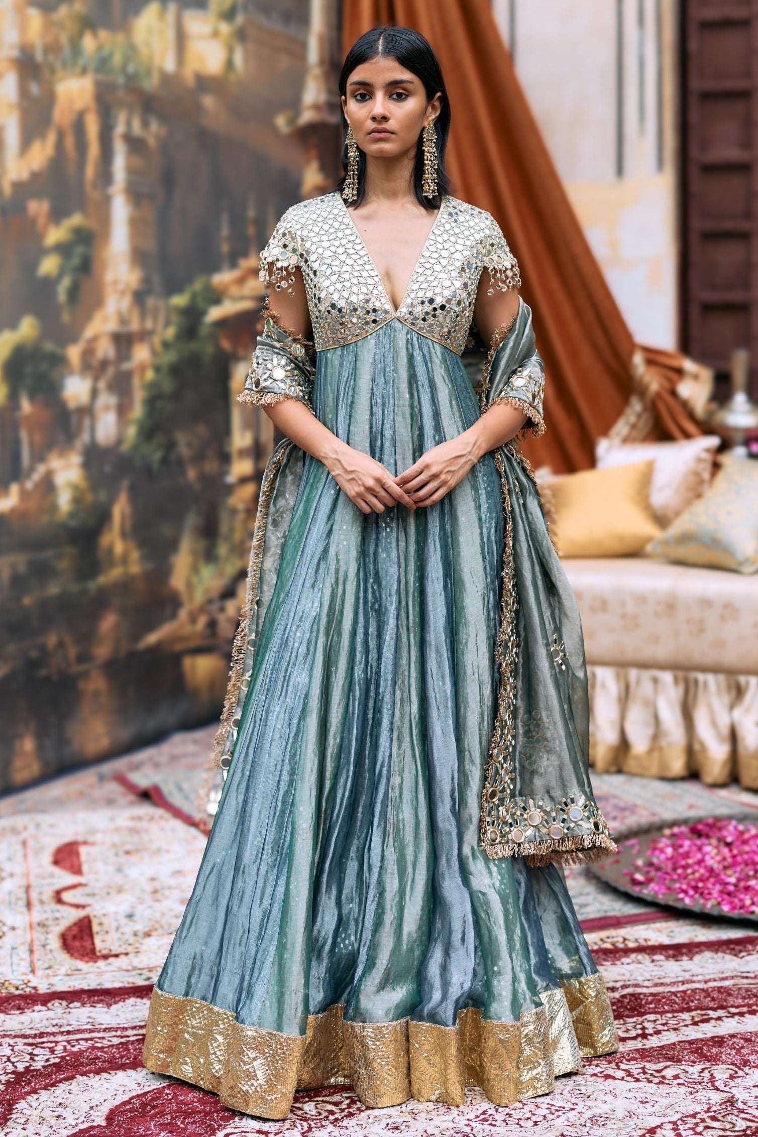 Fabric: Gota, tissue, dotted brocade, shantoon