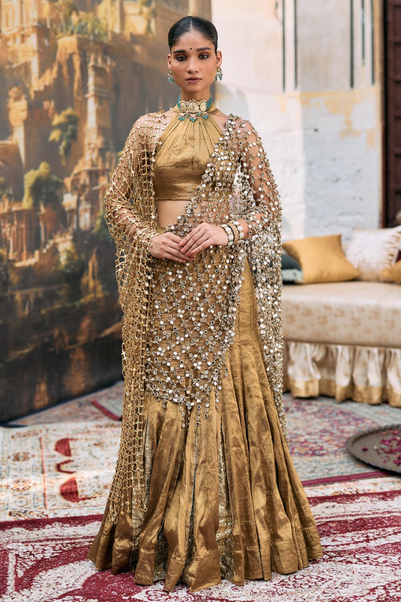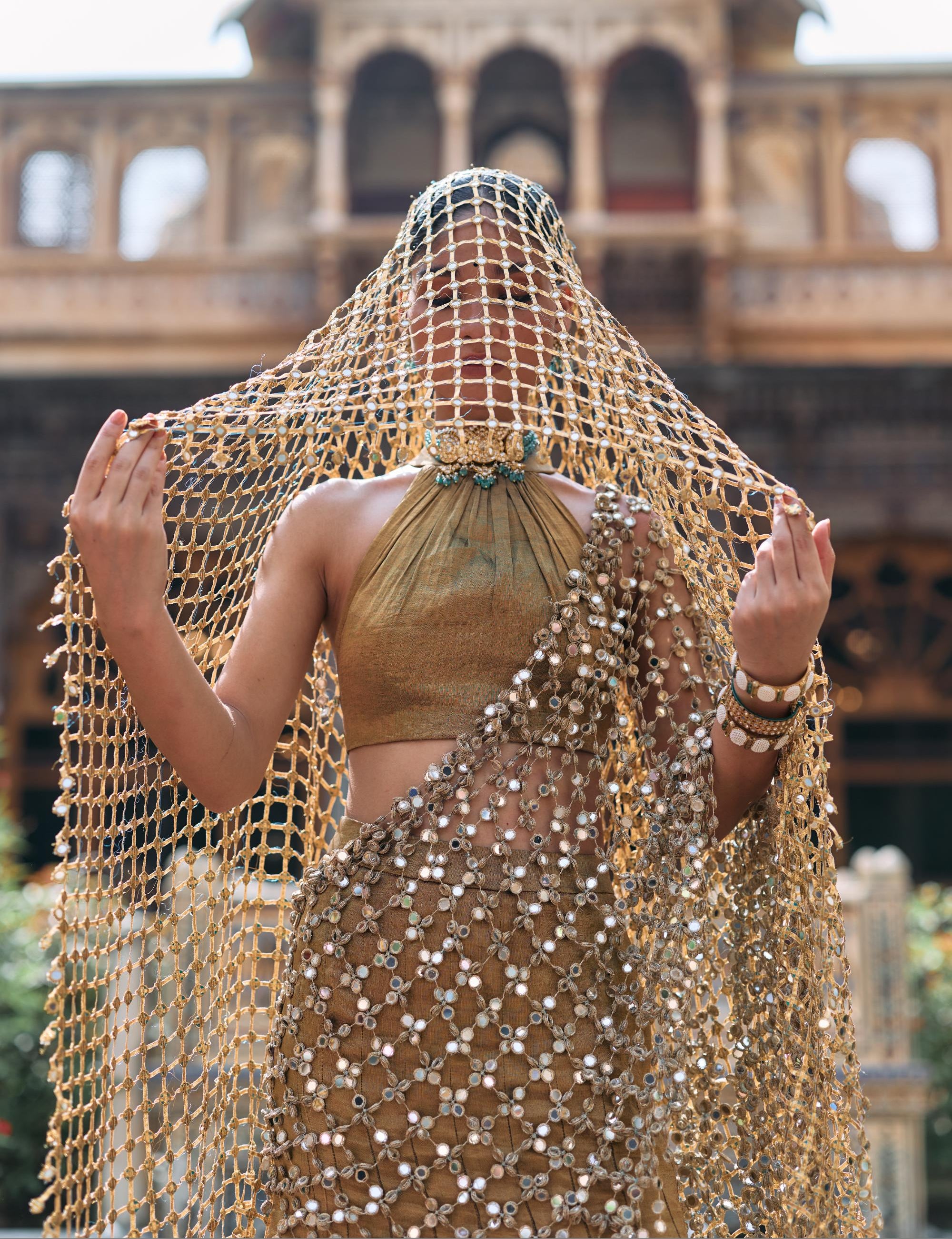 The Brown Mandira Lehenga Set with Sheeshya Veil by Itrh stands as a celebration of traditional craftsmanship. Featuring fine mirror detailing, this Lehenga Set captures the allure of Indian artistry. The coordinating Sheeshya veil elevates the Lehenga Set with elegance and symbolism. Perfect for bridal and festive occasions, each Itrh Lehenga Set offers a luxurious silhouette. The intricate design showcases hand embroidery, mirroring centuries of cultural legacy. Styled for grand events, this Lehenga Set embodies timeless splendor. Itrh’s craftsmanship ensures the Lehenga Set with Sheeshya veil remains a treasured piece for generations.