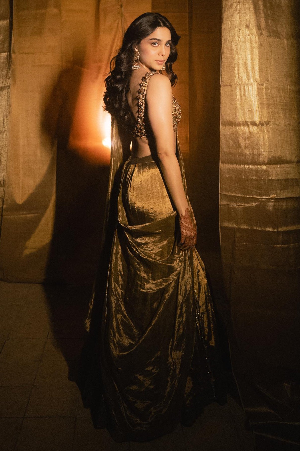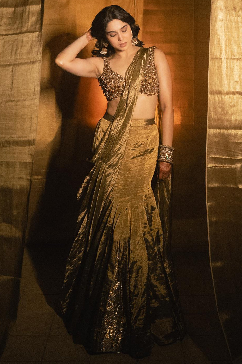 The gold antique embroidered lehenga set reflects timeless Indian craftsmanship and elegance. Designed for weddings, this lehenga set features intricate embroidery that enhances its regal appeal. The antique gold hue elevates the richness of the lehenga set, making it suitable for ceremonial occasions. Structured yet graceful, this lehenga set offers comfort without compromising grandeur. Ideal for traditional celebrations, this lehenga set pairs beautifully with heirloom jewellery and classic styling. A refined choice for festive dressing, this lehenga set delivers enduring sophistication.