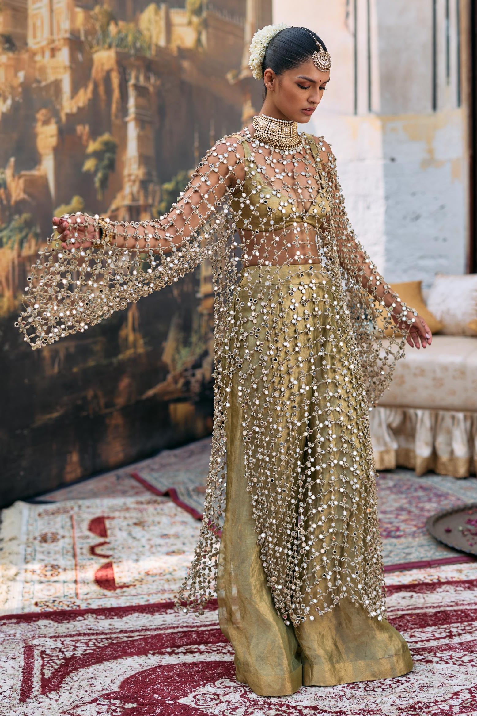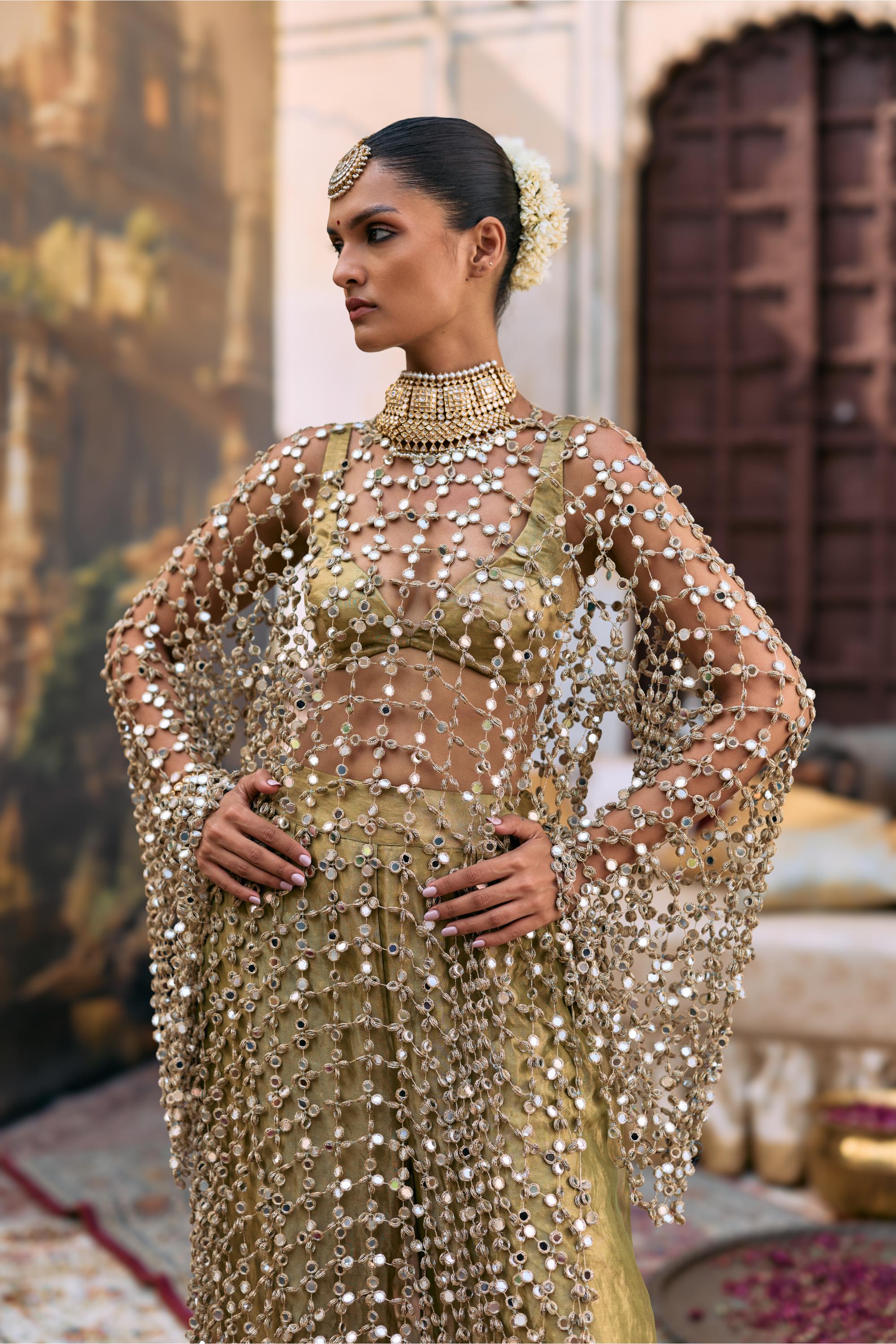 Fabric: Tissue, brocade tissue, brocade, mirror lace jaal