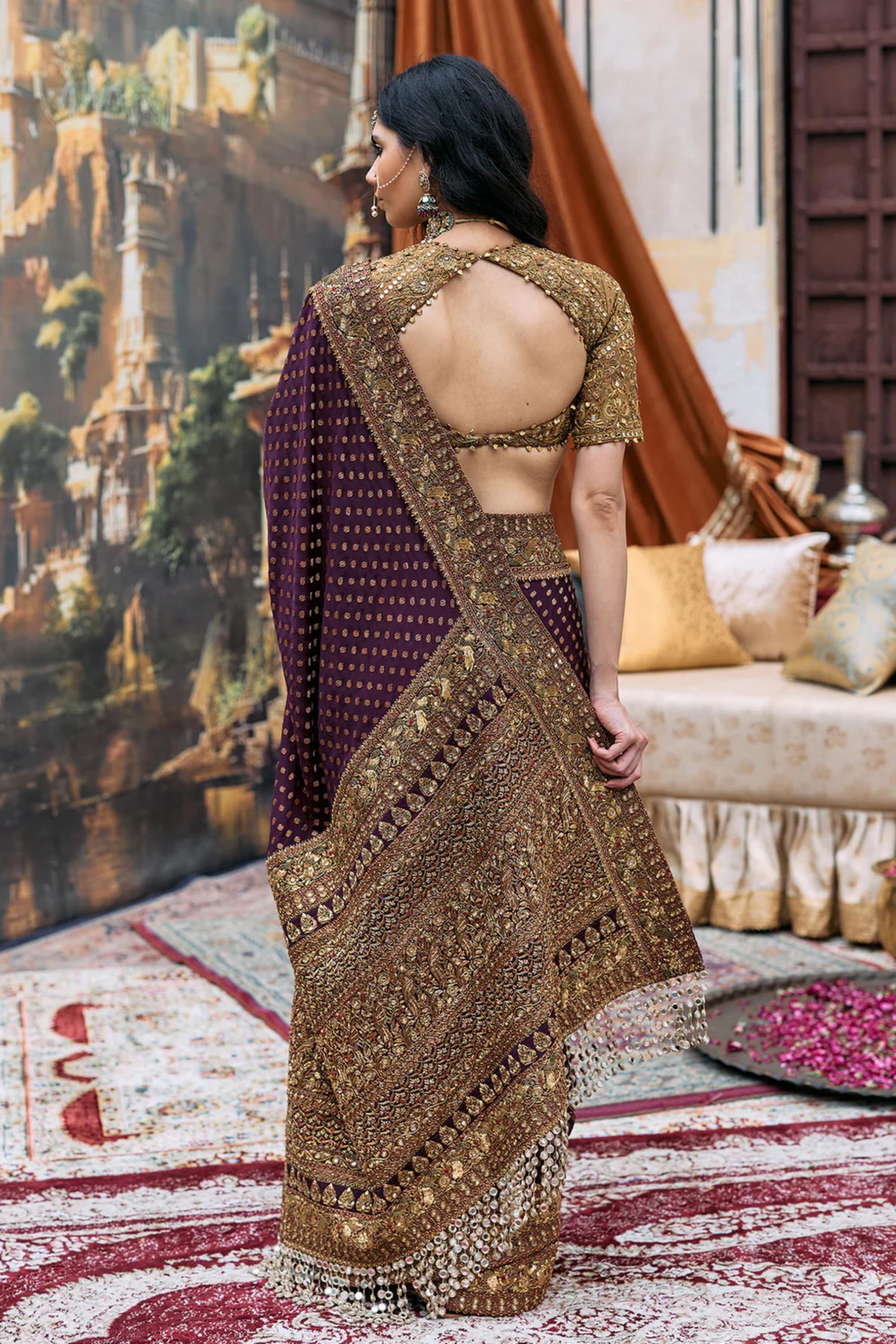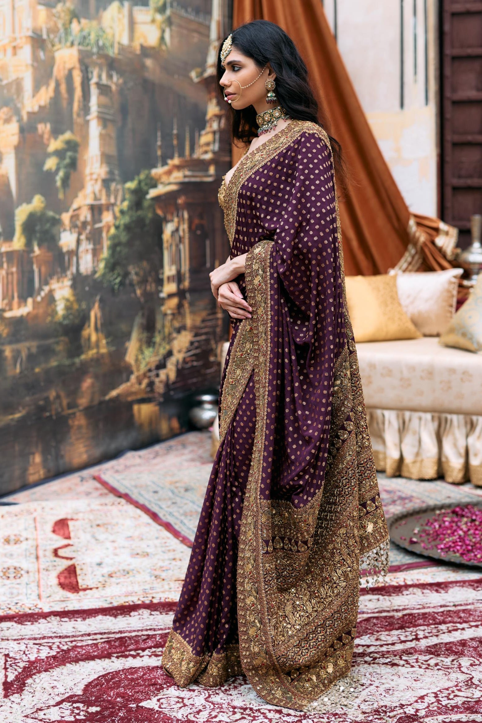 The Maroon Jadau Darpana Saree Set by Itrh is a masterpiece crafted for wedding ceremonies where regal charm takes center stage. Rich maroon hues symbolize tradition, prosperity, and elegance, making this saree set ideal for grand celebrations. The luxurious drape paired with intricate detailing captures the artistry of jadau craftsmanship. Designed to make a statement, this saree set brings together timeless Indian heritage with modern refinement. Perfect for bridesmaids, family members, or wedding guests, it exudes a sophisticated presence in every setting. Whether accessorized with heavy gold ornaments or delicate jewelry, the Darpana Saree Set radiates an aura of poise and grandeur. It is a true celebration of cultural aesthetics, making it an unforgettable wedding ensemble.