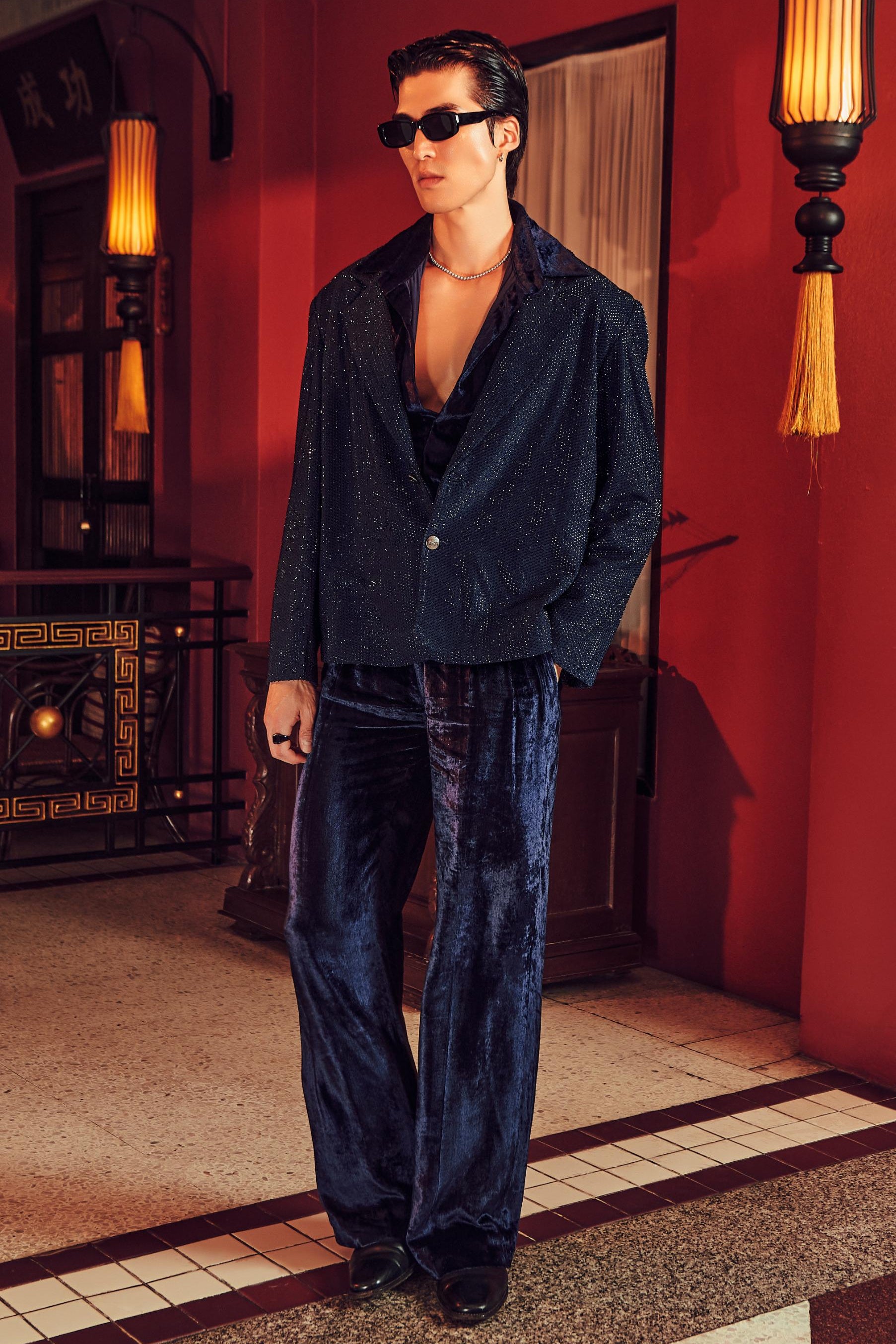 The Midnight Blue Cael One Night in Bangkok velvet blazer set is curated for refined evening luxury. Designed for receptions, cocktail nights, and upscale celebrations, this velvet blazer set brings richness and polish to contemporary menswear.