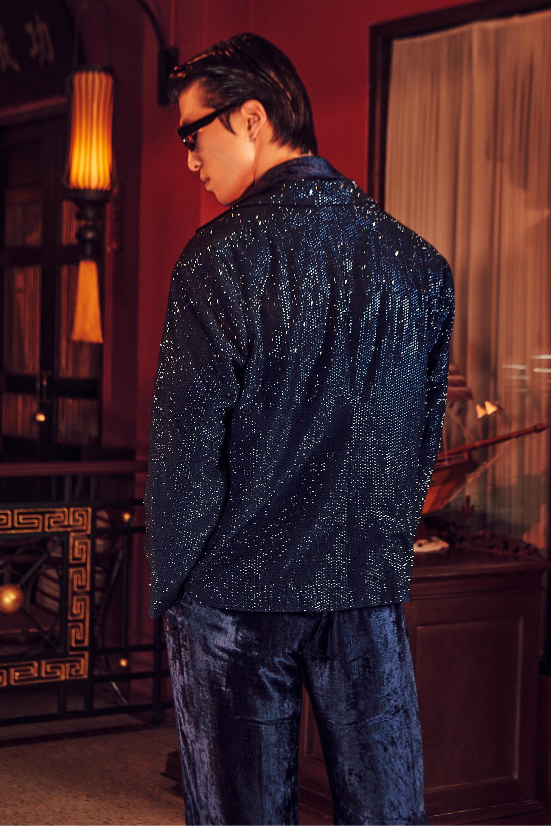 Midnight blue cael one night in bangkok velvet blazer set