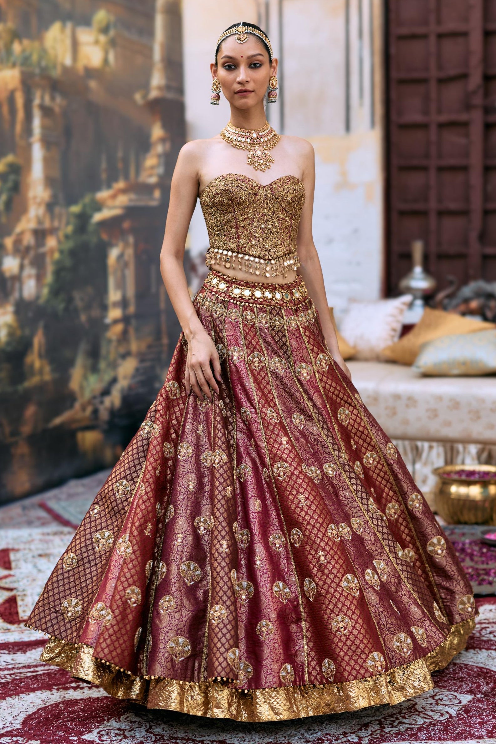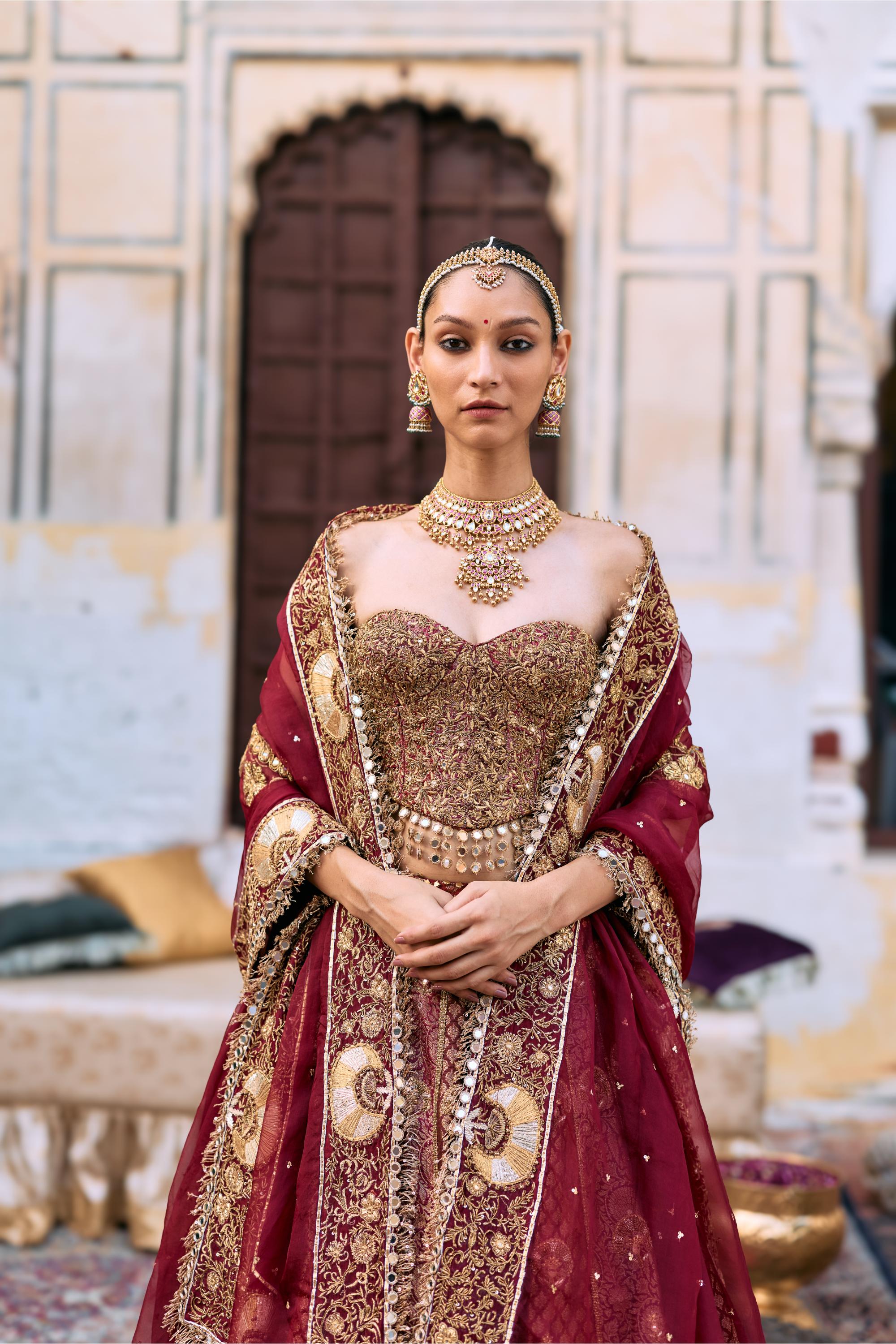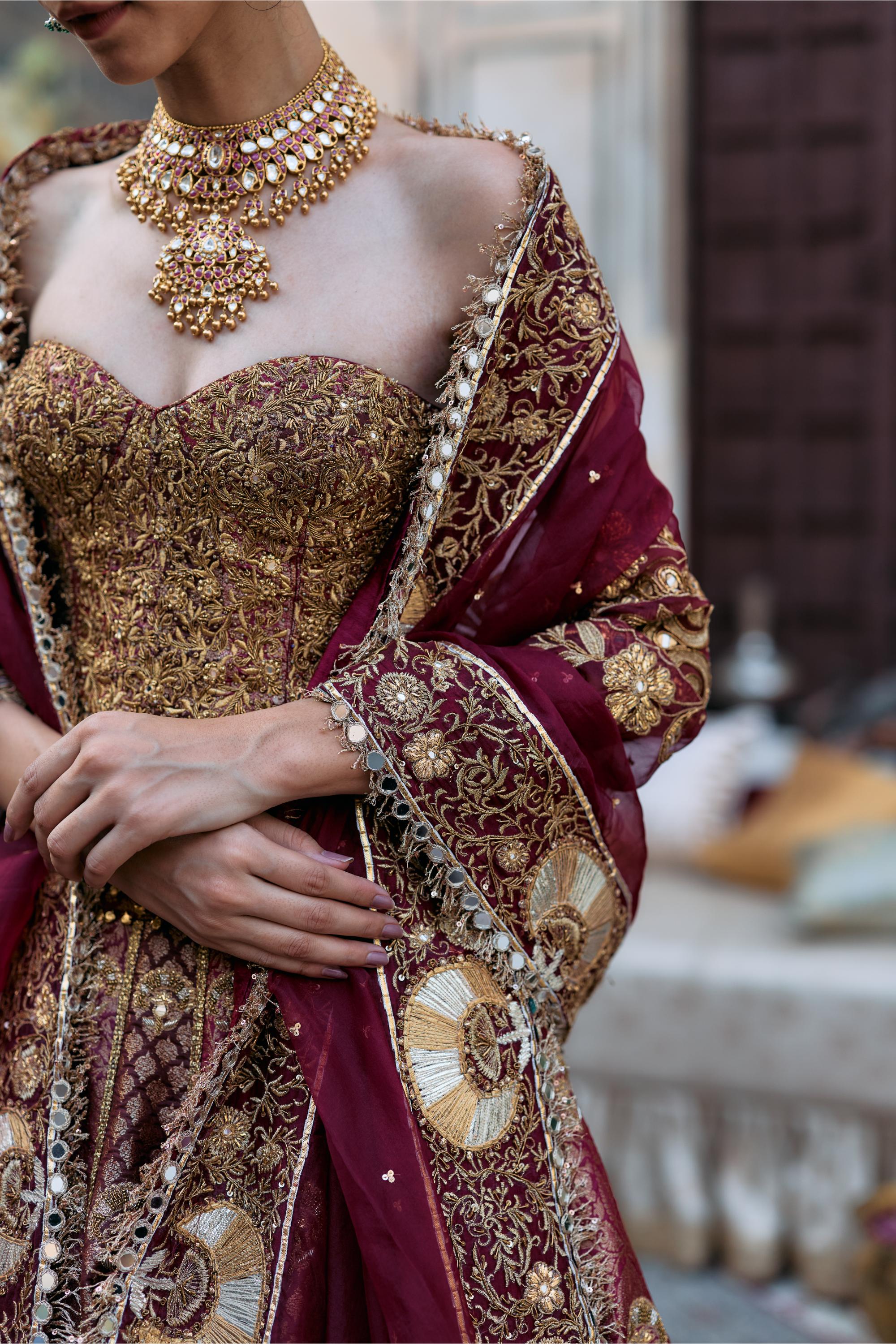 Components: 3 pieces (Lehenga, corset, dupatta)