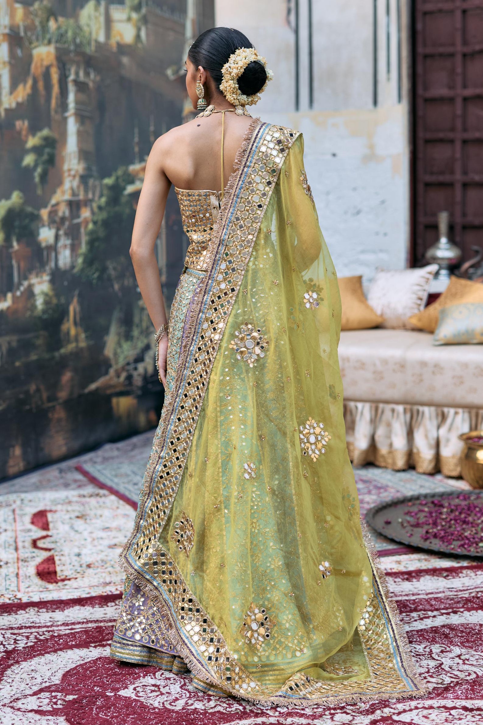 Itrh’s Multicolor Chaitrangi Lehenga Set captures the essence of joyous festivities. This lively lehenga set features a stunning blend of shades accentuated by intricate thread and mirror work. Ideal for destination weddings and pre-wedding celebrations, this lehenga set embodies modern Indian couture with a playful spirit. Its handcrafted finish and flattering silhouette make it an heirloom-worthy piece. The lehenga set radiates a youthful charm that beautifully bridges heritage and innovation—perfect for bridesmaids or festive revelers alike.