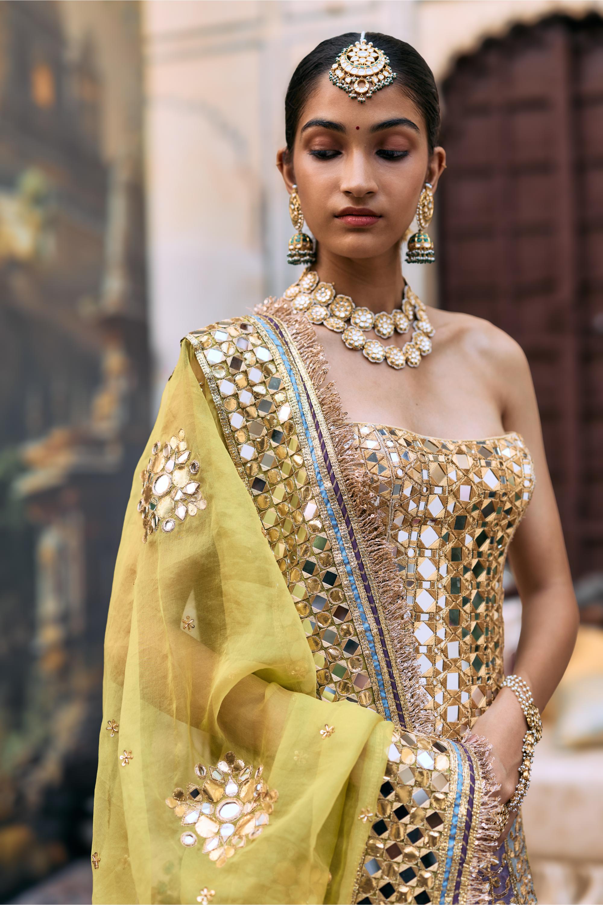 Components: 3 pieces (Lehenga, corset, dupatta)
