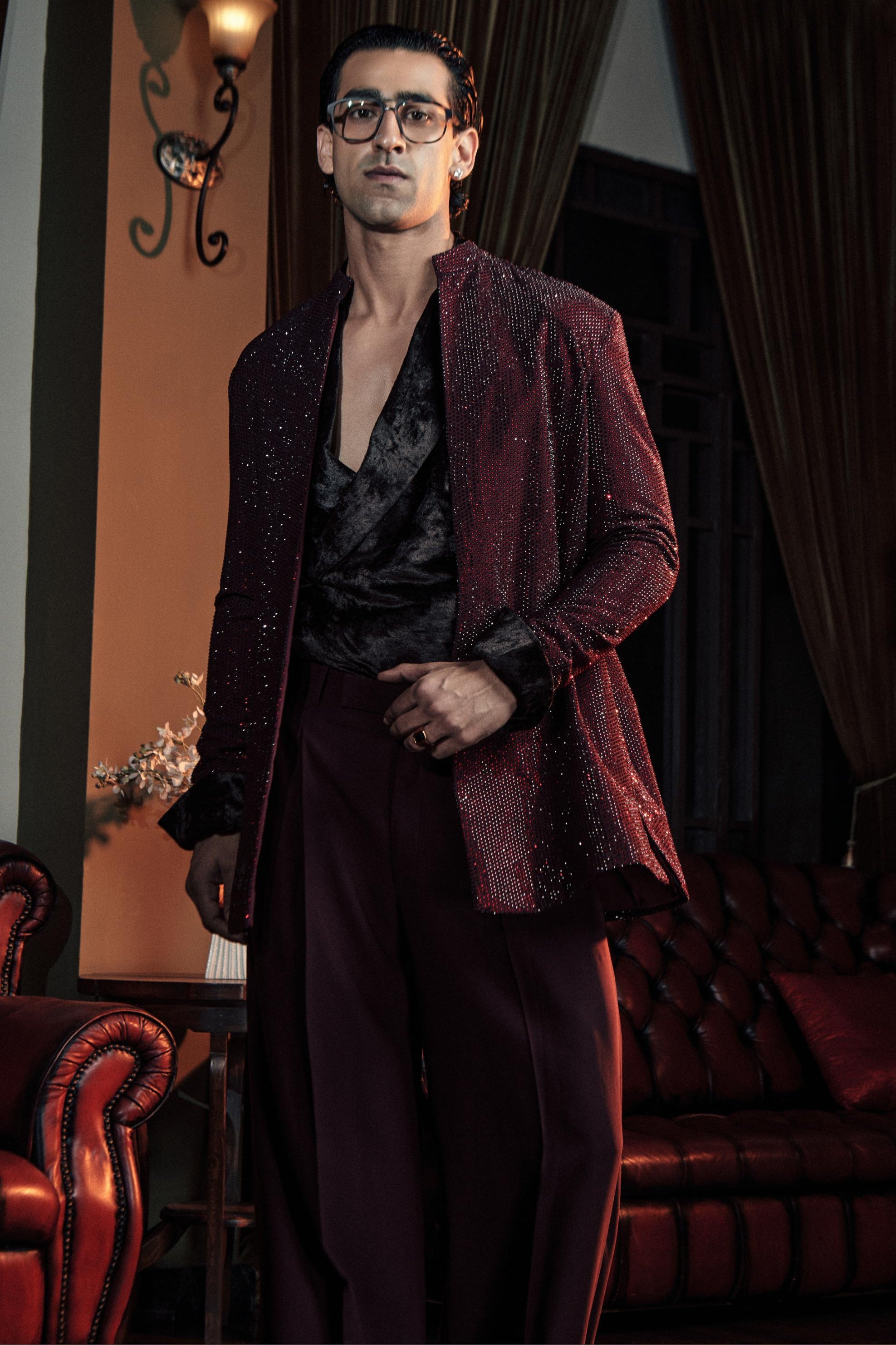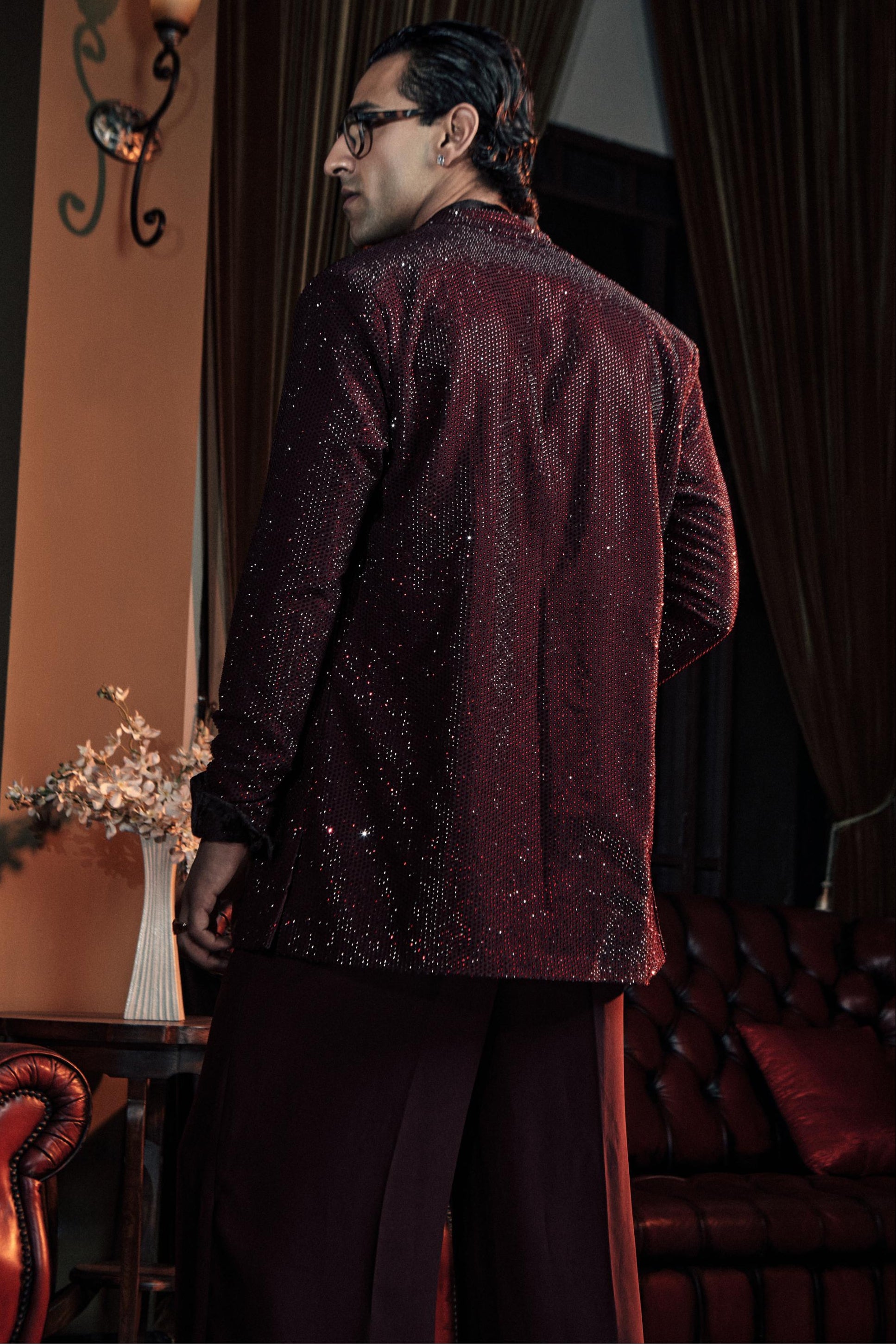 The Wine Raven One Night in Bangkok bandhgala set is curated for refined evening elegance. Designed for receptions, cocktail nights, and destination weddings, this bandhgala set offers a rich palette with structured tailoring. A curator’s recommendation for formal modern dressing.