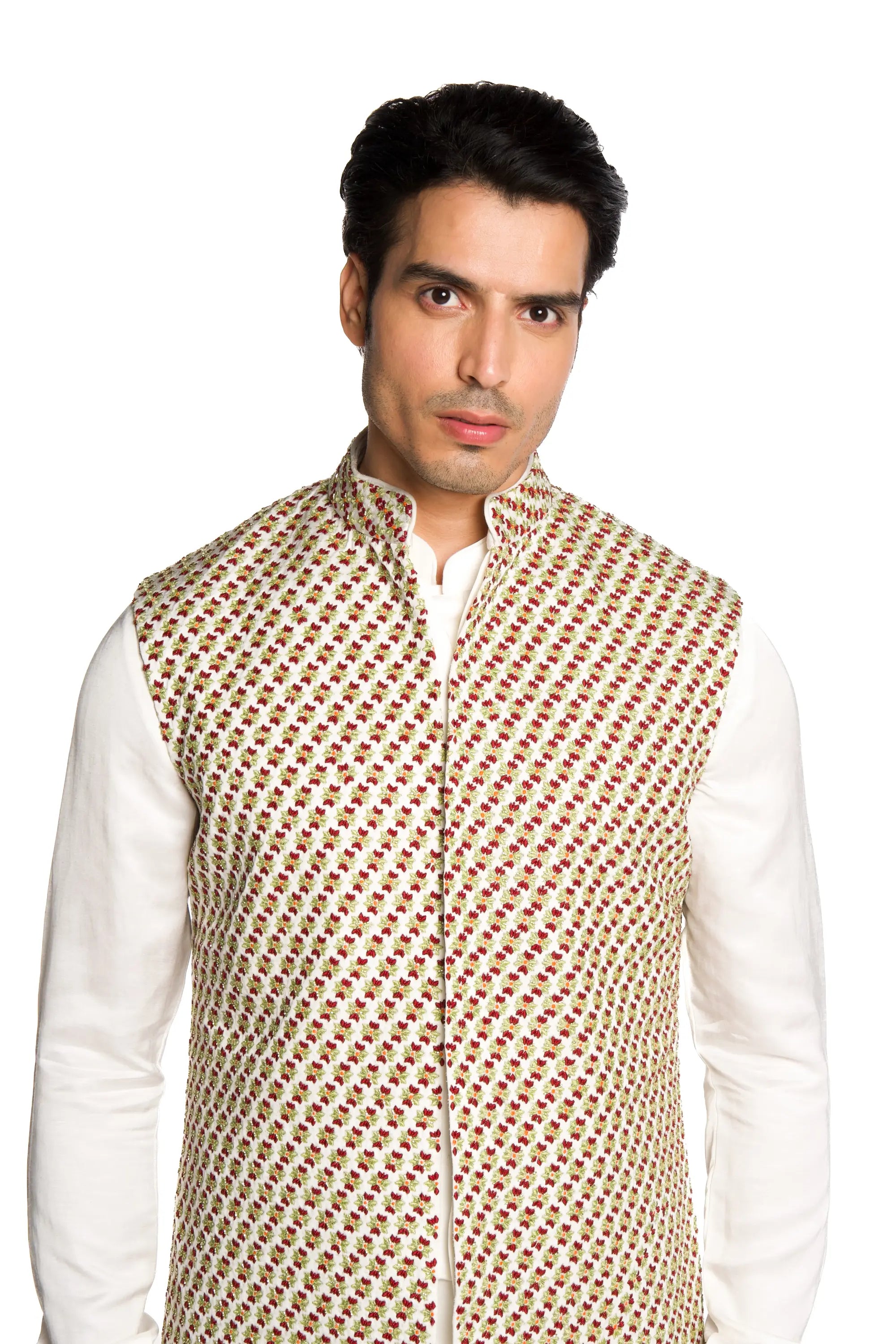 Ivory all over kashmiri embroidered bundi set