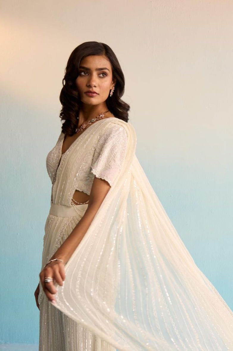 Ivory bahaar aurore pristine pre-draped saree