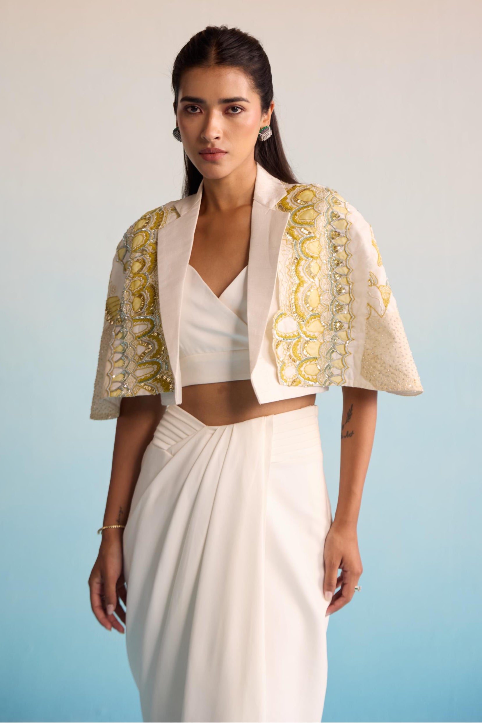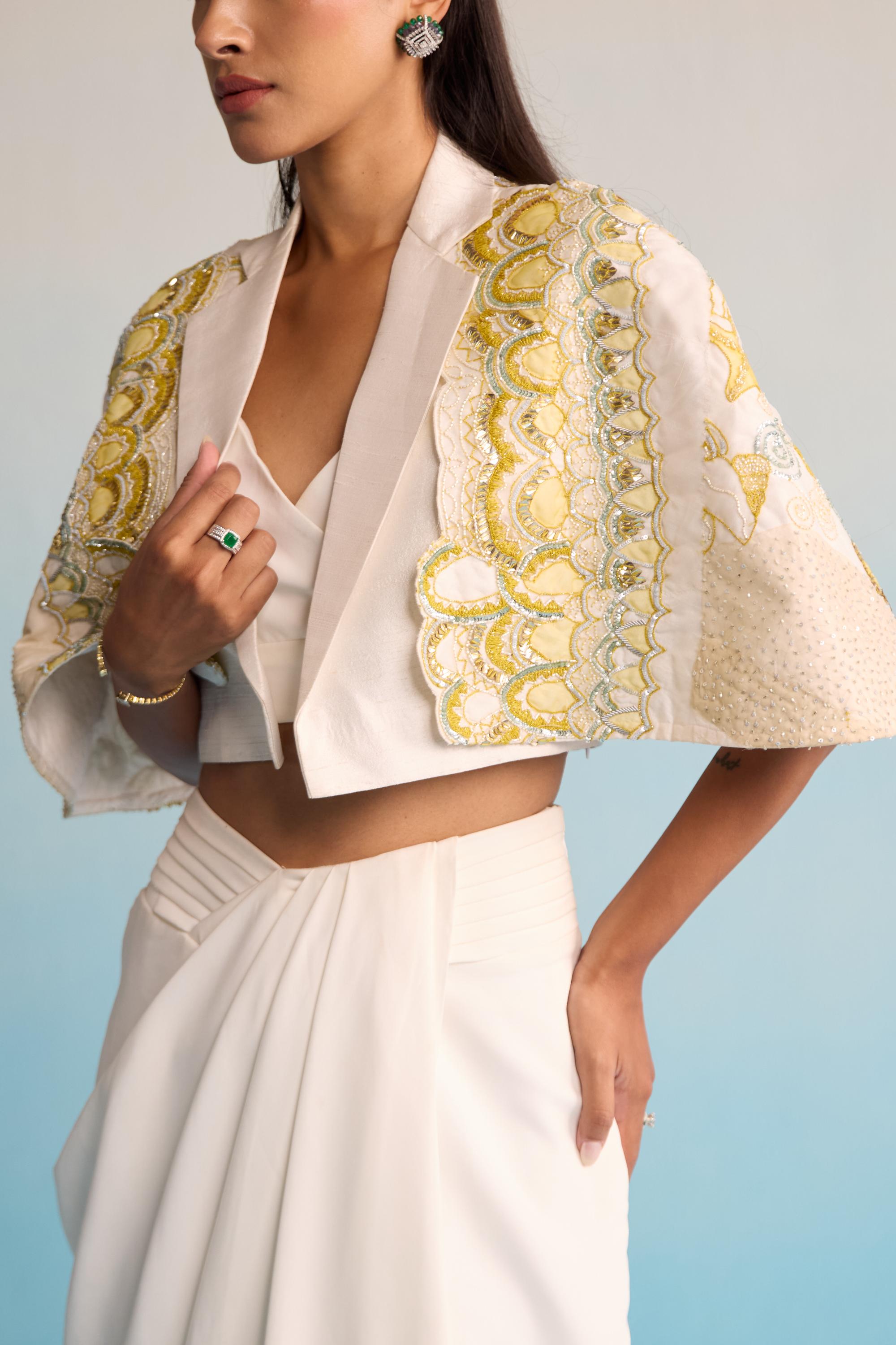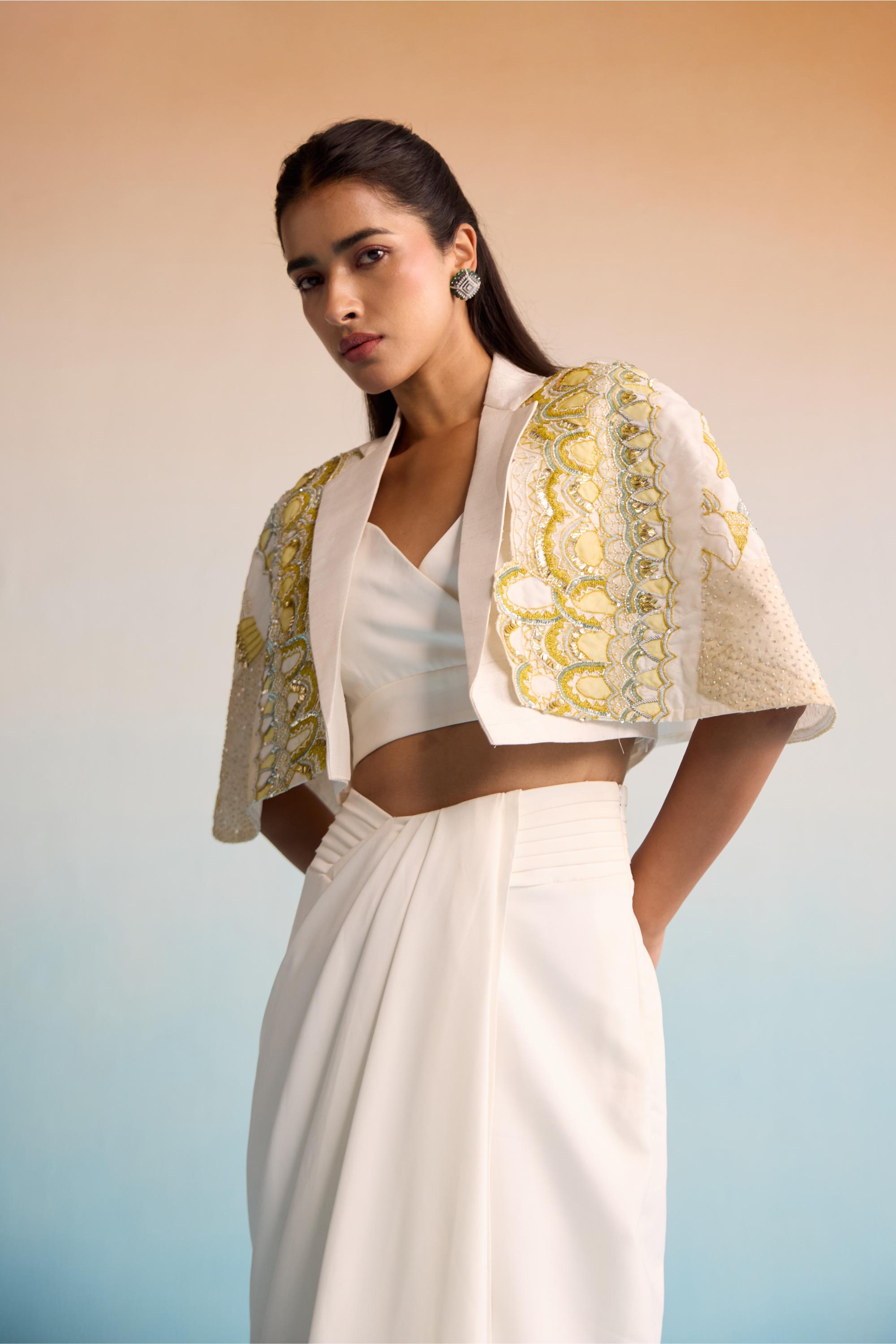Ethereal and effortlessly refined, the Ivory Bahaar Irisa Skirt with Jacket is a modern classic for elegant celebrations. Crafted in a timeless ivory hue, the ensemble features a delicately embroidered skirt paired with a structured, graceful jacket that adds polish to the look. Ideal for engagement parties, festive gatherings, or intimate wedding functions, this set is perfect for the woman who appreciates quiet luxury and understated sophistication. The Ivory Bahaar Irisa Skirt with Jacket is where tradition meets modern femininity.