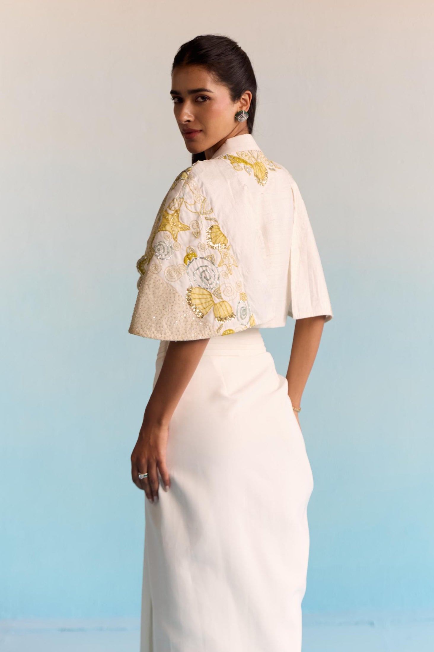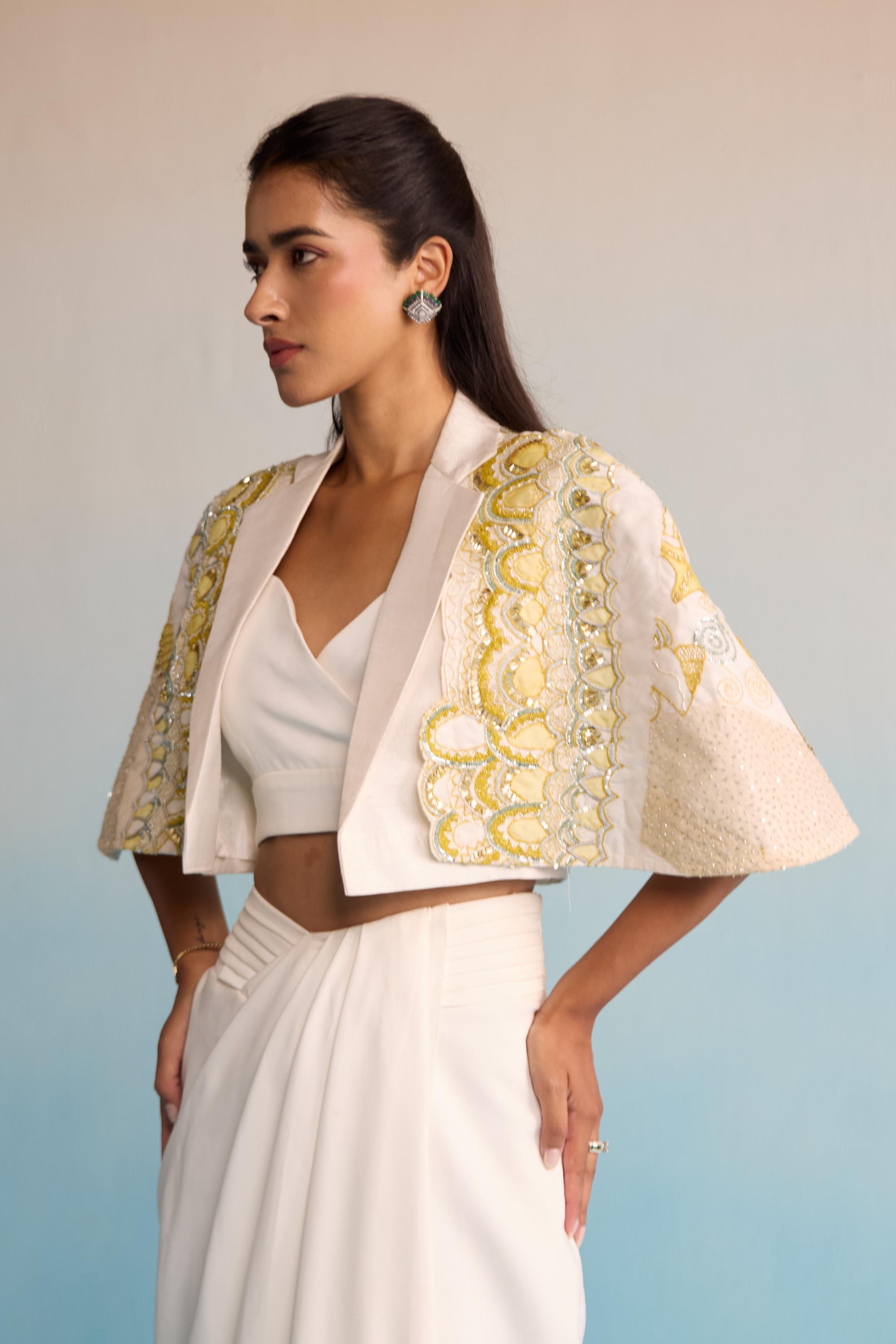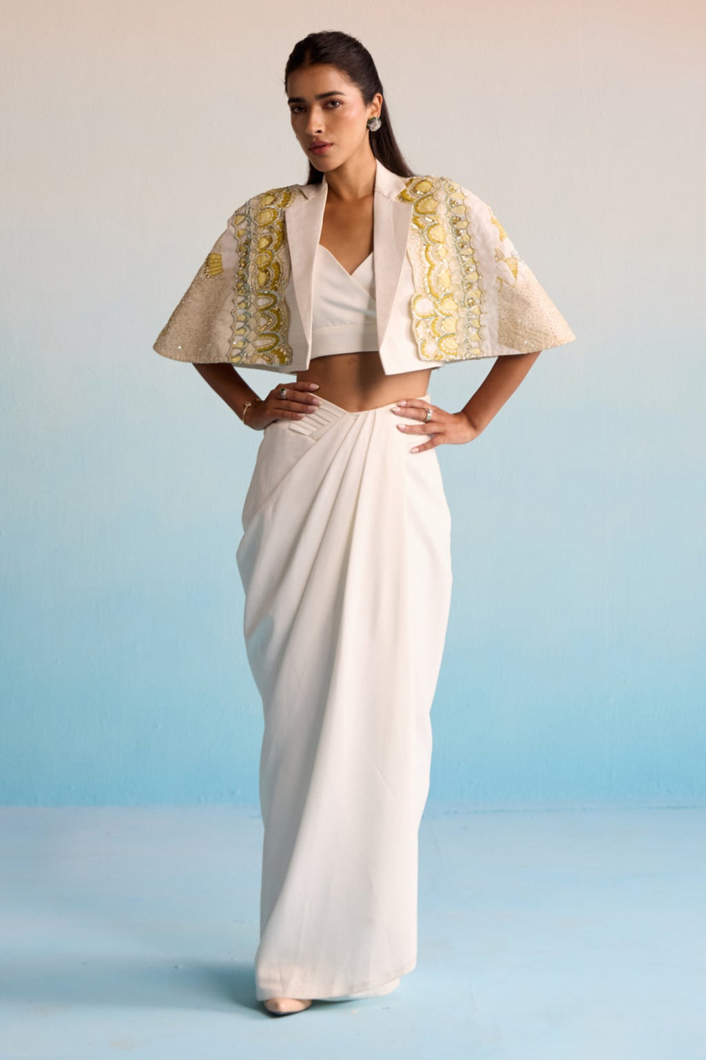 Ethereal and effortlessly refined, the Ivory Bahaar Irisa Skirt with Jacket is a modern classic for elegant celebrations. Crafted in a timeless ivory hue, the ensemble features a delicately embroidered skirt paired with a structured, graceful jacket that adds polish to the look. Ideal for engagement parties, festive gatherings, or intimate wedding functions, this set is perfect for the woman who appreciates quiet luxury and understated sophistication. The Ivory Bahaar Irisa Skirt with Jacket is where tradition meets modern femininity.
