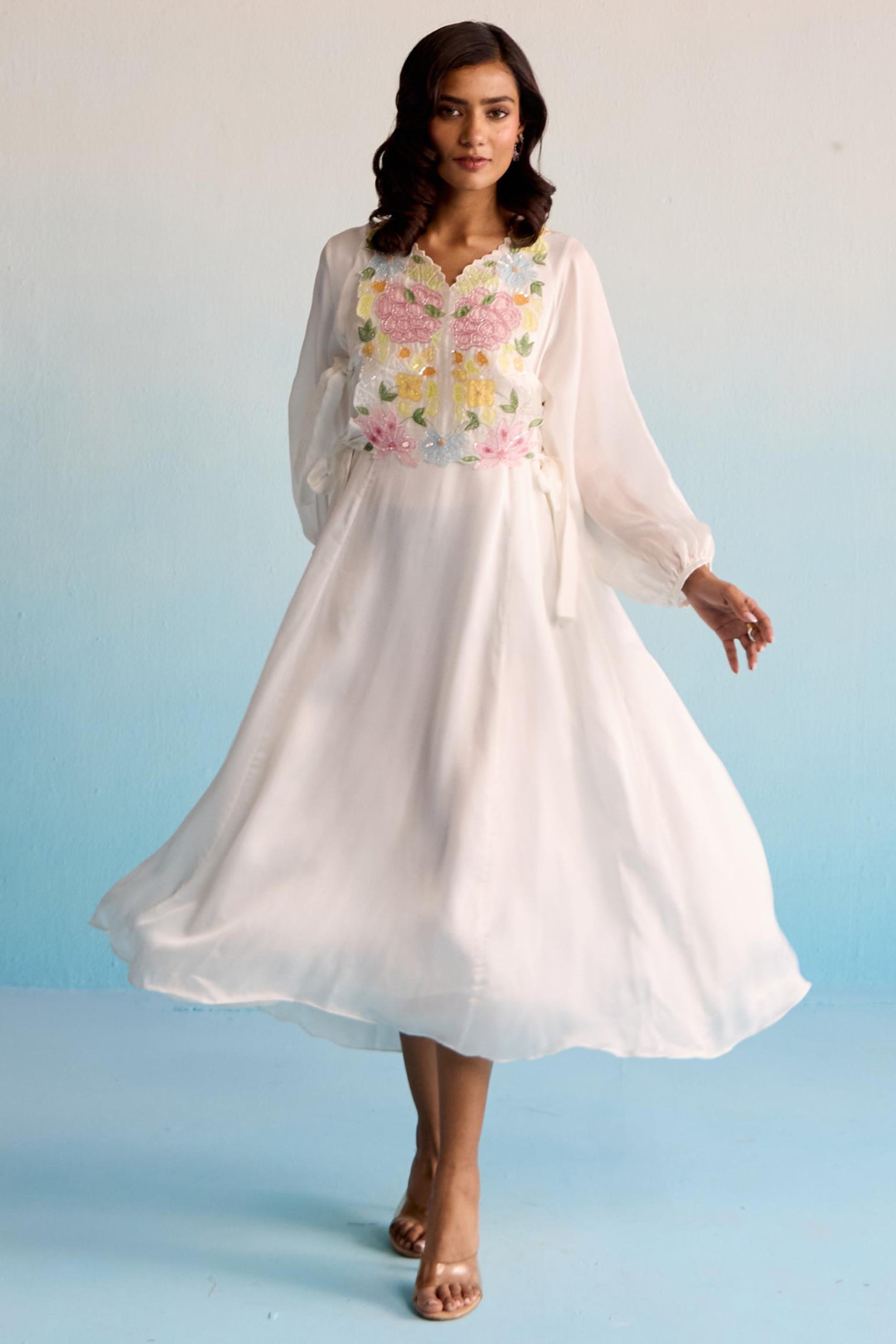 Delicate, artisanal, and effortlessly graceful—the Ivory Bahaar Kia Handpainted Dress is a canvas of elegance and craftsmanship. Featuring intricate handpainted floral motifs on a soft ivory base, this dress brings a poetic charm to any celebration. Its flowy silhouette and lightweight fabric offer comfort with an elevated, contemporary look. Perfect for daytime festivities, garden parties, or intimate pre-wedding events, the Ivory Bahaar Kia Handpainted Dress is for the woman who wears art with ease and sophistication.