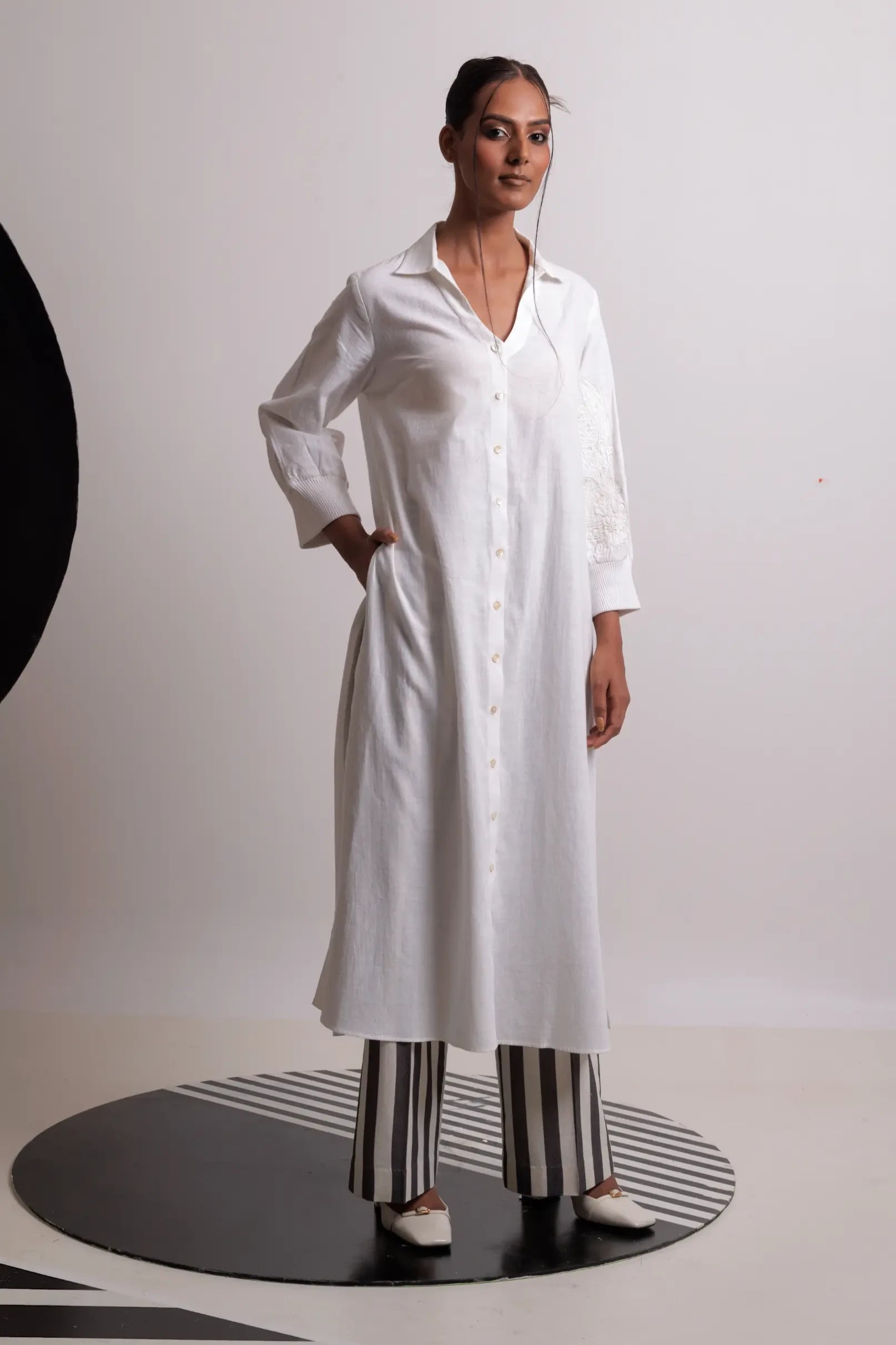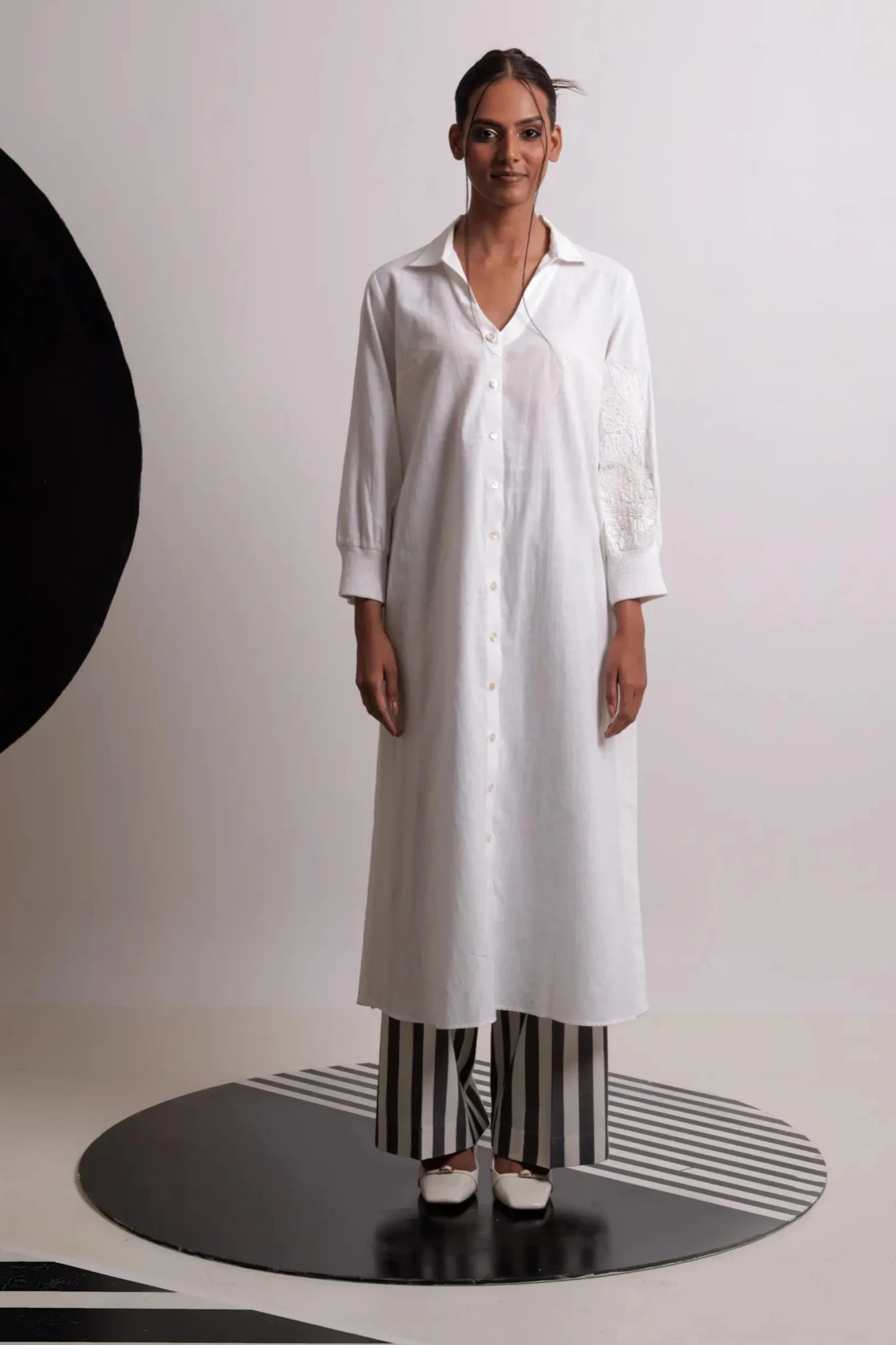 Elevate your wardrobe with our Ivory Collar Tie-Up Tunic paired with Pants, a stunning ensemble that combines sophistication with comfort. This beautifully crafted tunic features a stylish collar and an elegant tie-up detail, creating a flattering silhouette that suits any occasion. Made from soft, breathable fabric, it offers all-day comfort while maintaining a polished look.