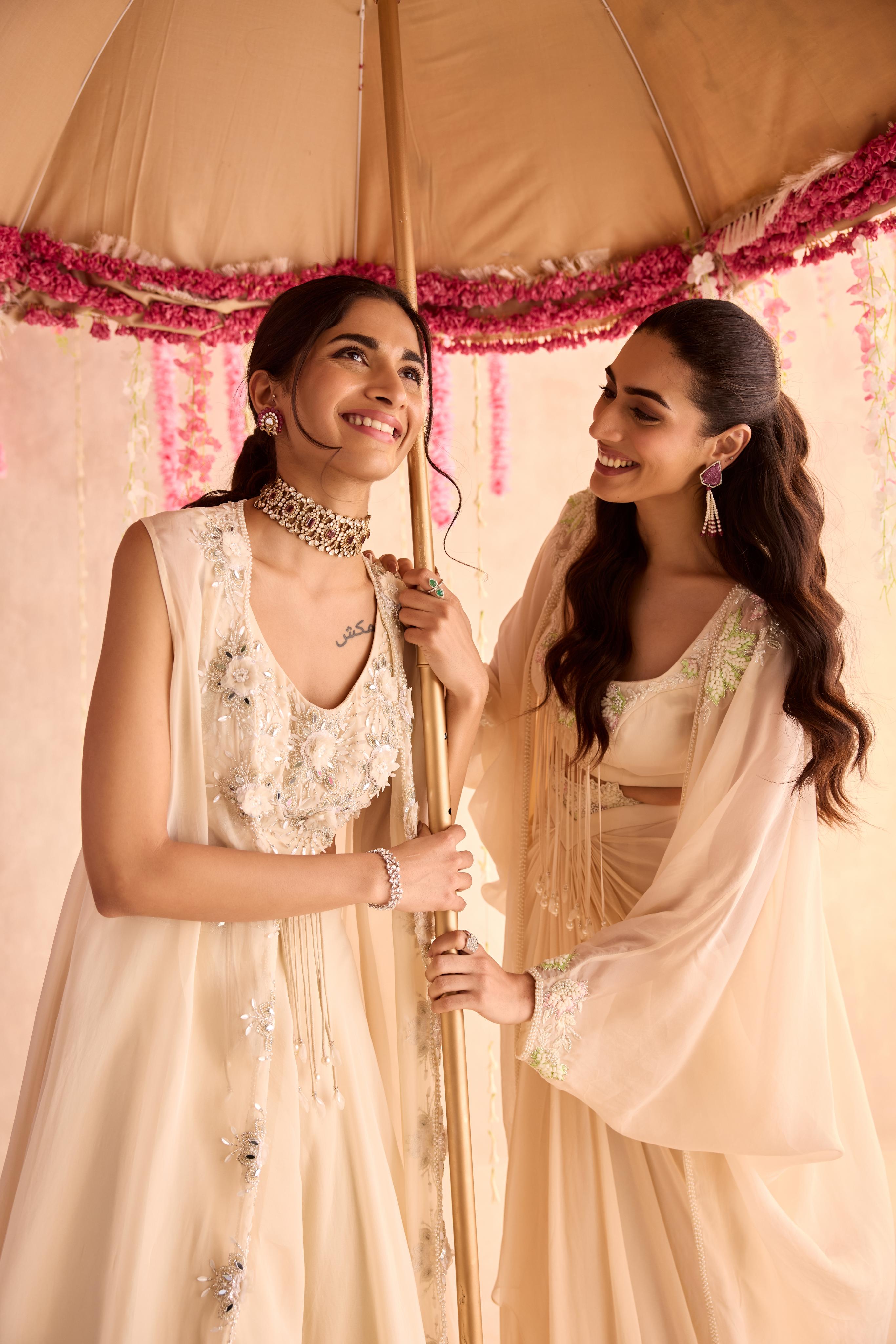 The Ivory Daffodil Under Bloom Cape Set is a beautifully crafted ensemble that radiates elegance and sophistication. Featuring a soft ivory hue with delicate daffodil-inspired floral details, this set includes a flowing cape that adds a touch of drama and modern flair. The cape gently drapes over a coordinated outfit, creating a flattering and ethereal silhouette. Perfect for weddings, festive occasions, or special events, this set combines the beauty of nature with contemporary design. A perfect choice for those who appreciate timeless elegance with a chic, nature-inspired twist.
