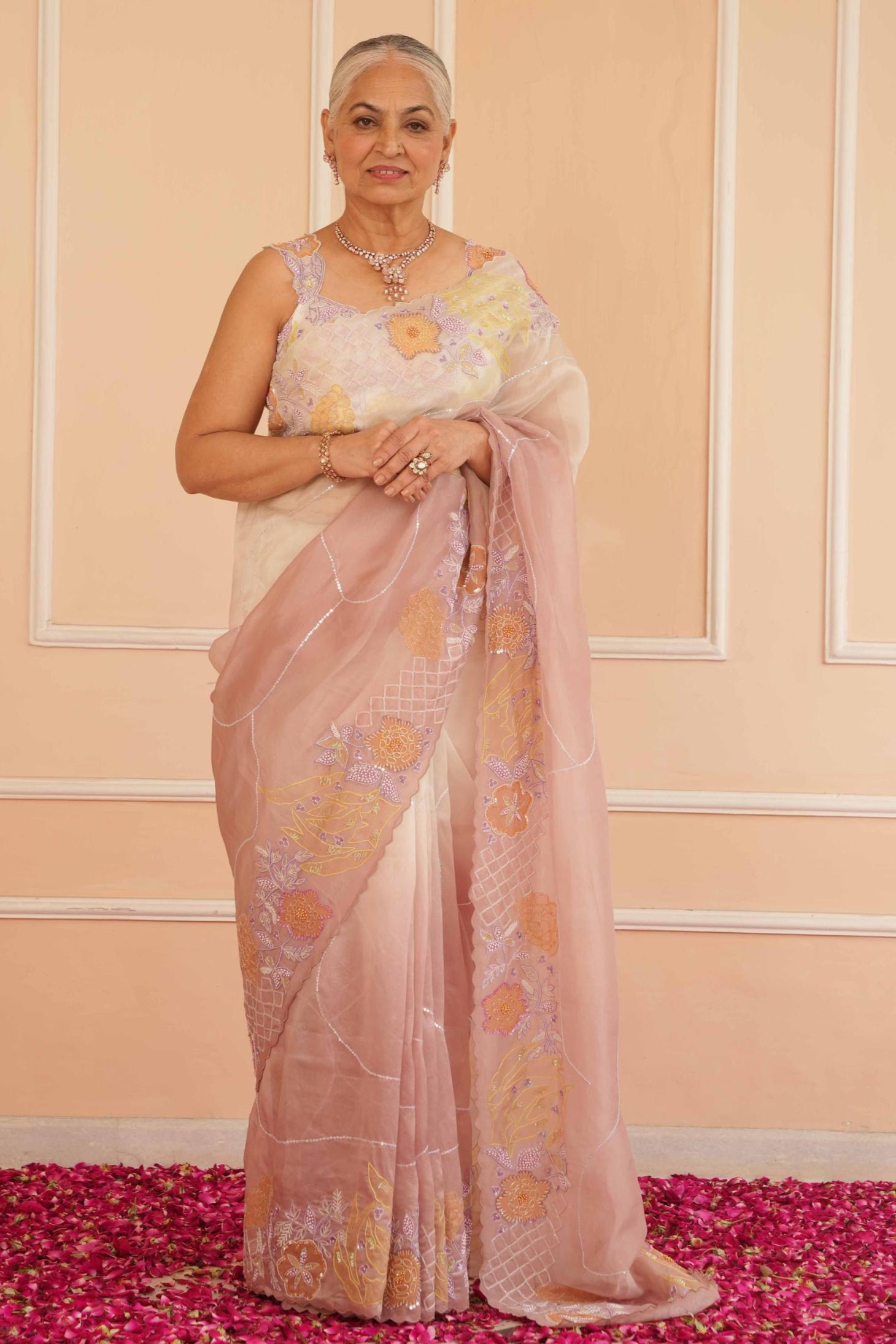 The Ivory Dil Se Mira Ombré Saree is a whisper of serenity wrapped in flowing elegance. Gently fading from soft ivory to muted gold tones, this saree captures the spirit of Mira—devotional, graceful, and fearless in expression. The ombré effect evokes quiet movement, while the lightweight fabric and subtle detailing make it effortlessly divine. It’s a piece that speaks from the heart, meant for moments that matter. Perfect for pre-wedding rituals, spiritual gatherings, or serene celebrations. Pair it with antique jewels and a bare-glow beauty look for a presence that’s timelessly dil se.