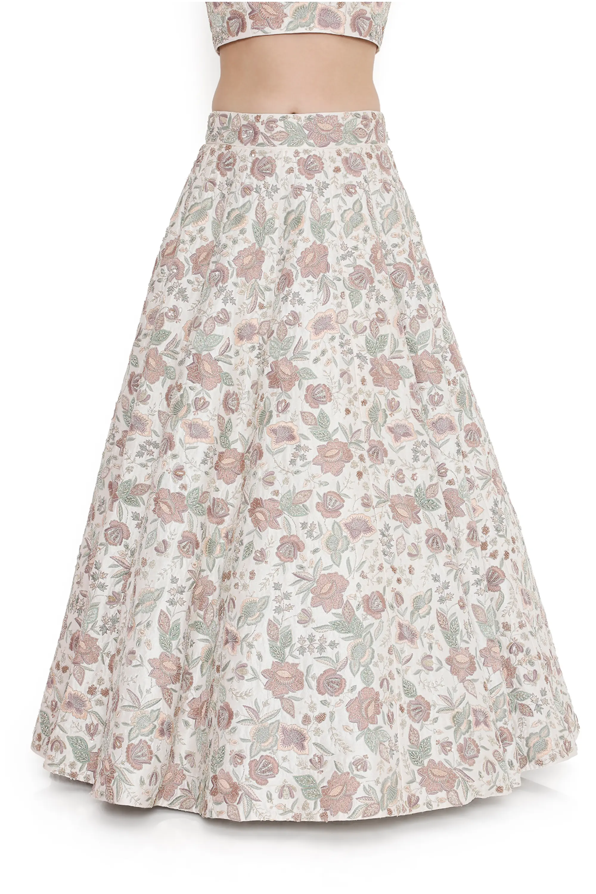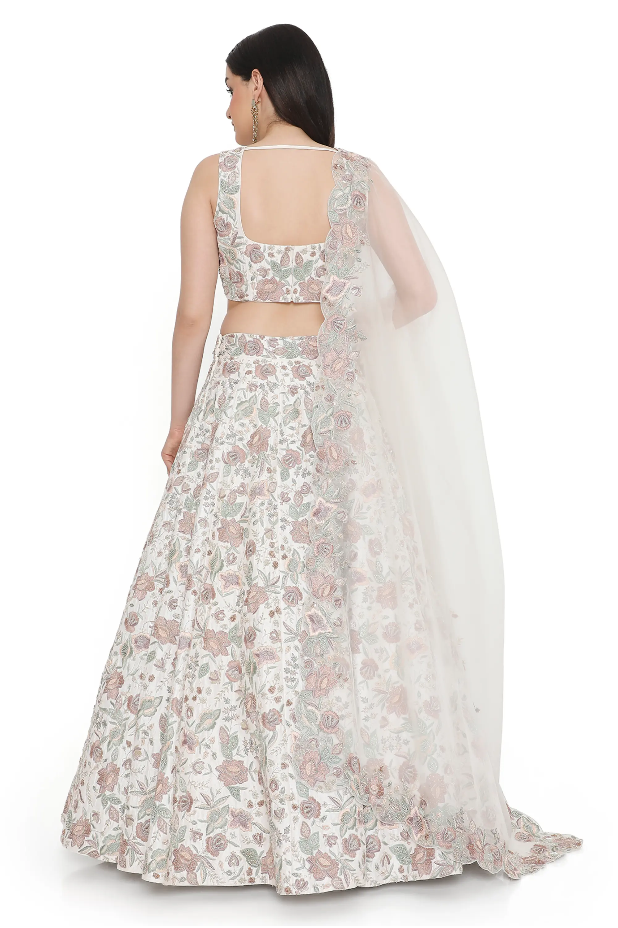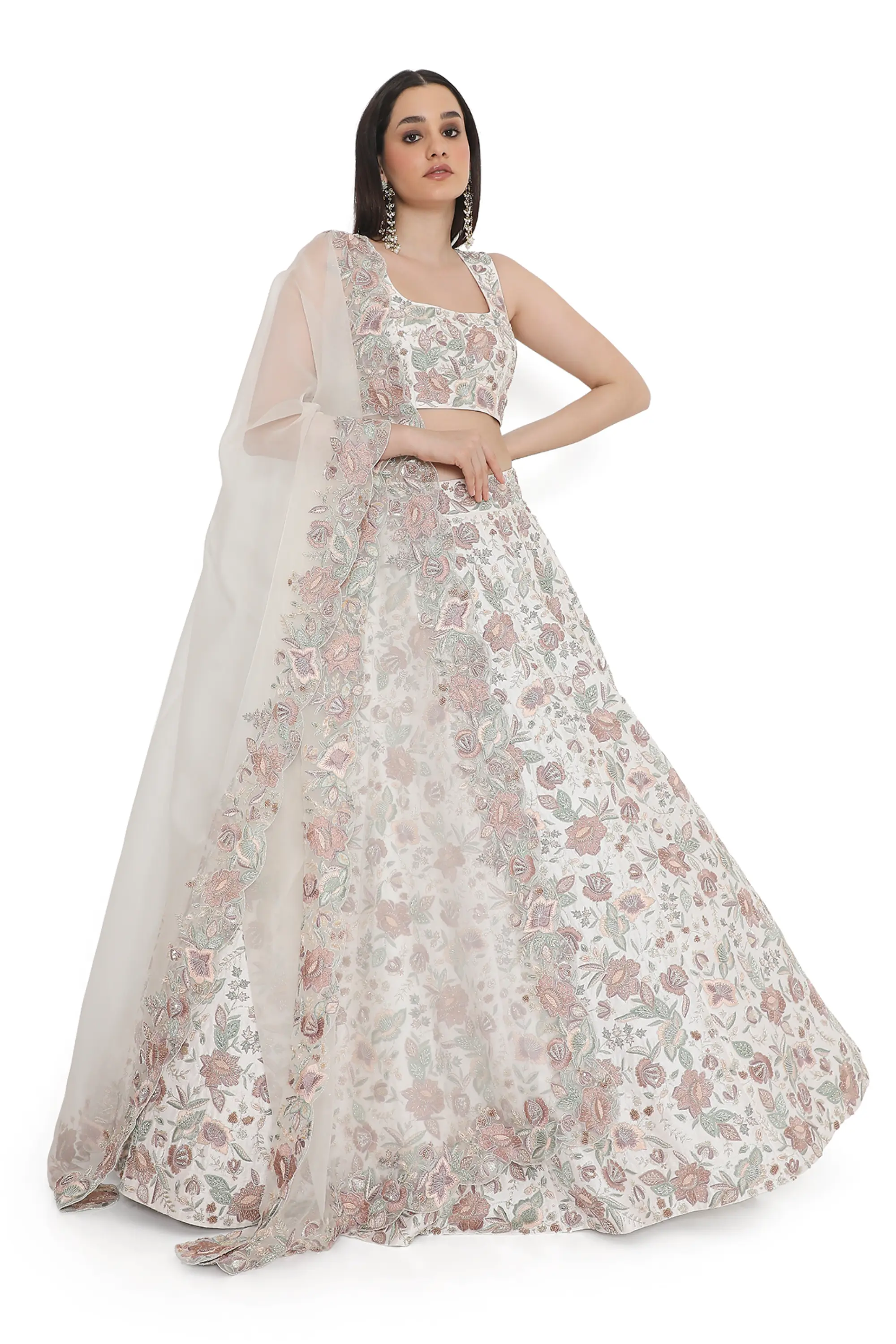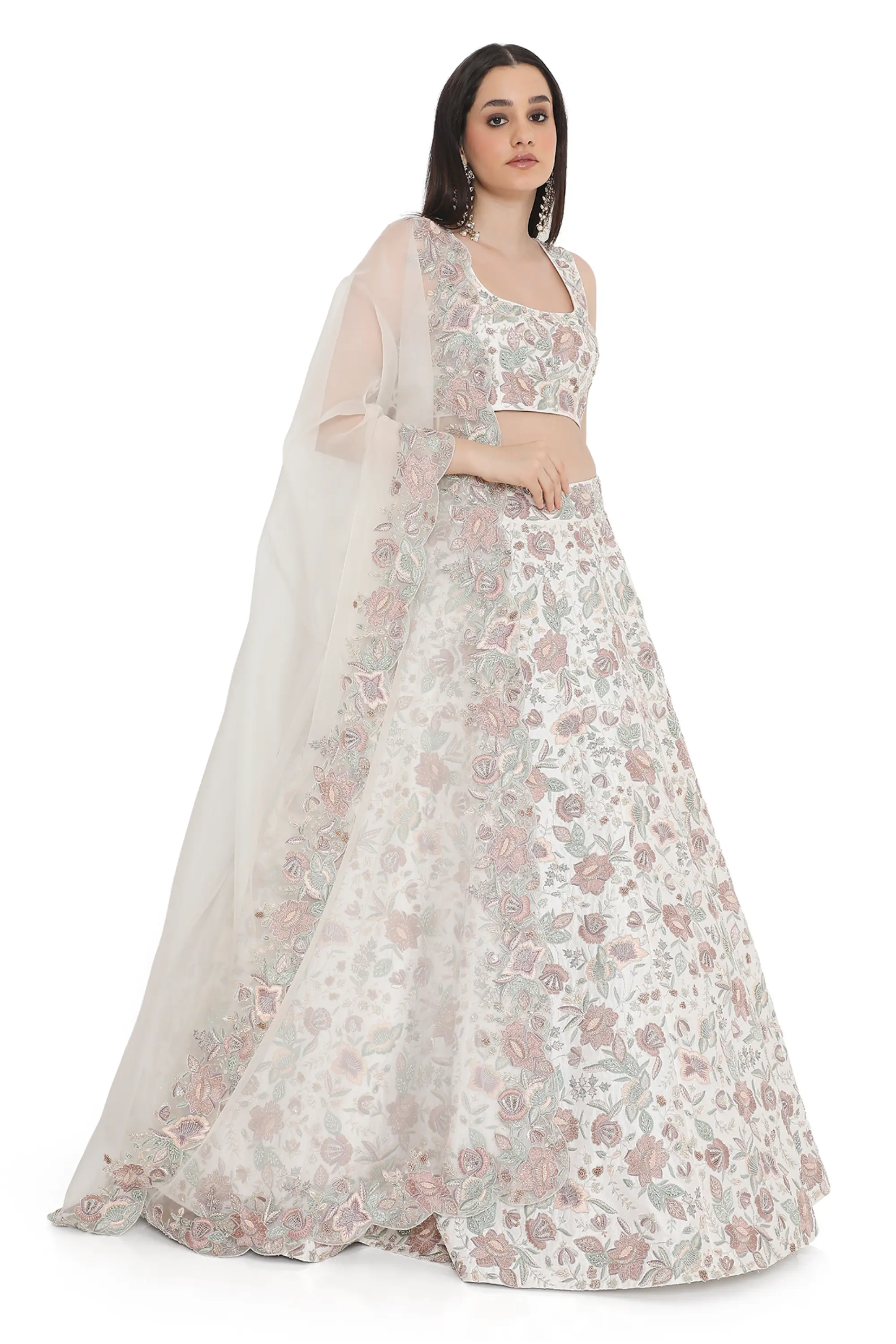 Ivory embroidered lehenga with choli and dupatta