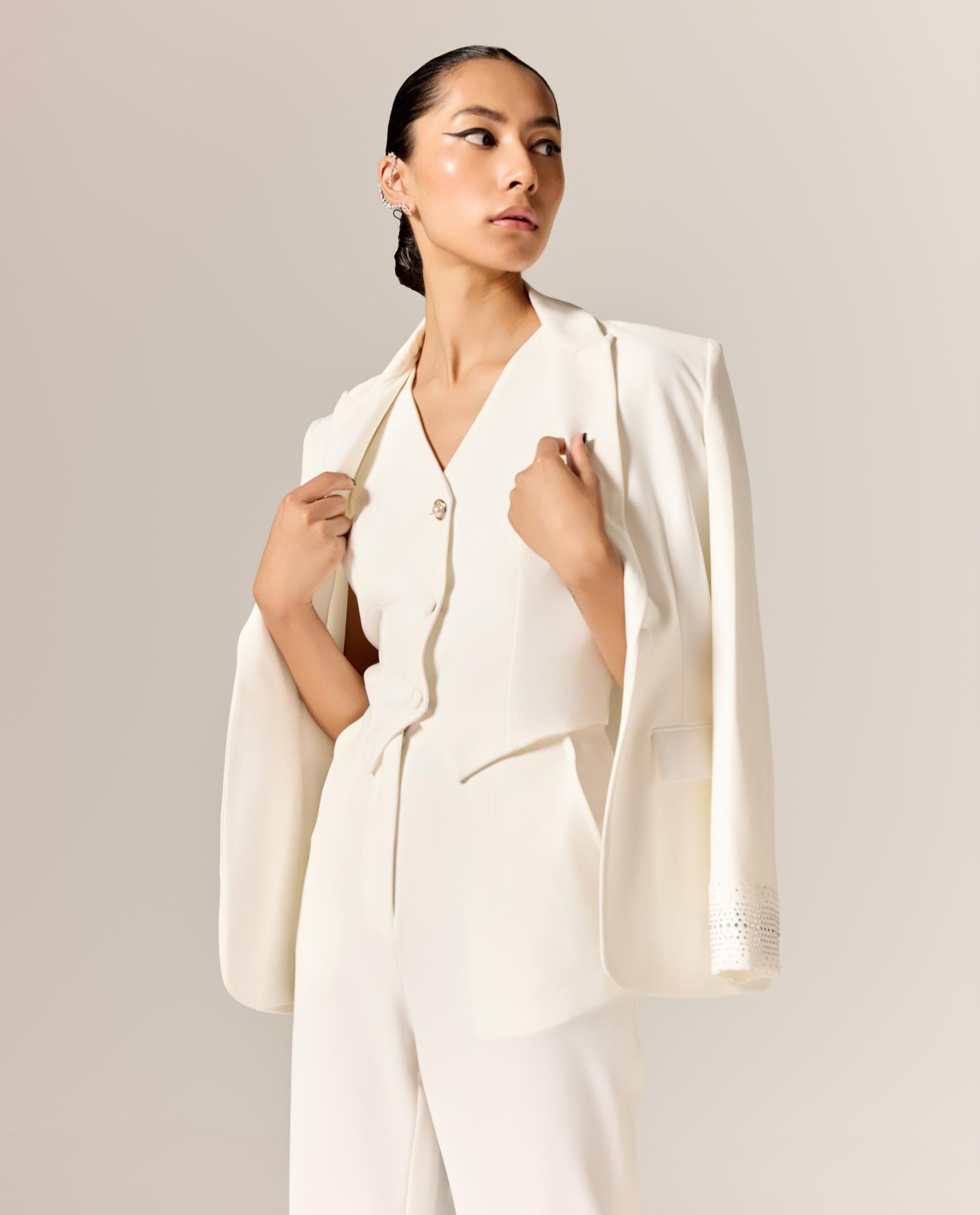 The Ivory Estelle Eminence Co-ord Set combines classic elegance with contemporary style. Featuring a soft ivory tone and flowing cape design, it's perfect for formal events and festive occasions. The set offers a graceful and polished look with intricate detailing. Designed for those who want to make a sophisticated statement. A timeless addition to your wardrobe.