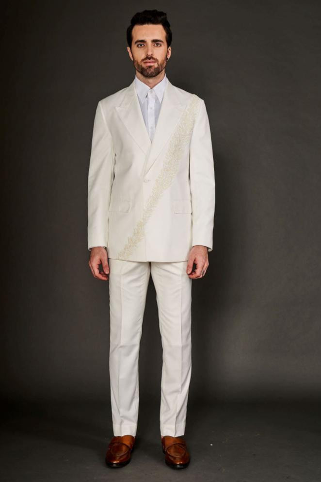 Embrace elegance with this Ivory Floral Cut Dana Embroidered Suit. Adorned with delicate floral cut dana embroidery, the intricate detailing enhances the soft ivory fabric, creating a timeless and sophisticated look. Perfect for weddings, receptions, or festive occasions, this suit exudes grace and charm. Pair with statement accessories for a polished and refined ensemble.
