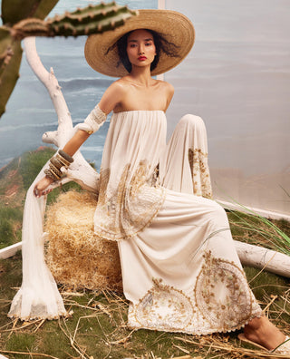 Chic, contemporary, and effortlessly stylish, the Ivory Florentia Checkered Bardot and Pants set is the perfect blend of modern flair and timeless sophistication. The checkered pattern adds a bold graphic element to the otherwise soft ivory hue, while the Bardot neckline adds a touch of feminine allure and sophistication. Paired with tailored pants, this ensemble offers a flattering silhouette and versatile styling options, ideal for casual gatherings, brunches, or semi-formal events. For the woman who loves minimalist design with a twist of bold detail, this set is a must-have addition to your wardrobe.