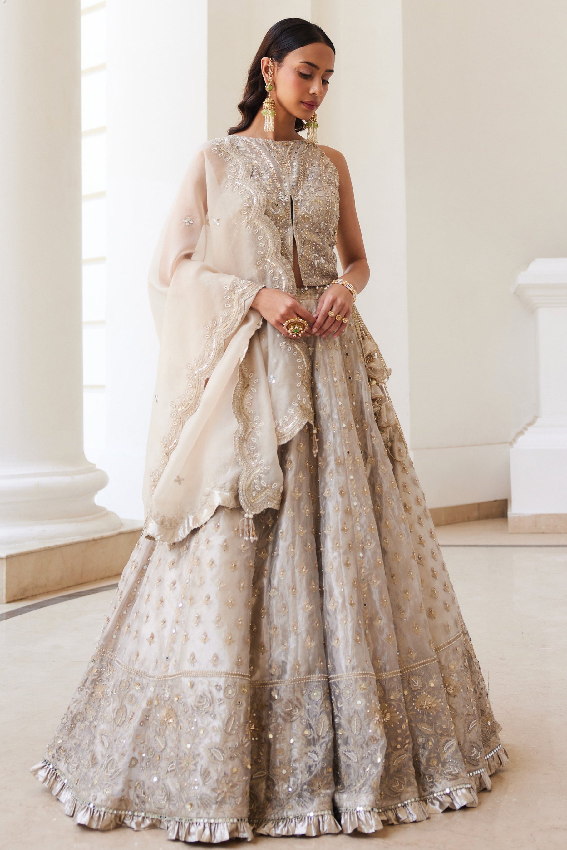 Sanya Gulati's designs stand out with their playful elegance and a focus on versatile luxury. Her collections feature a vibrant mix of rich fabrics, intricate detailing, and contemporary silhouettes, from flowy lehengas to structured blouses. The designs are infused with a modern edge while staying deeply rooted in traditional Indian aesthetics, offering pieces that are both bold and delicate, suitable for a range of occasions. The label captures a youthful spirit while embracing a sophisticated, timeless appeal.