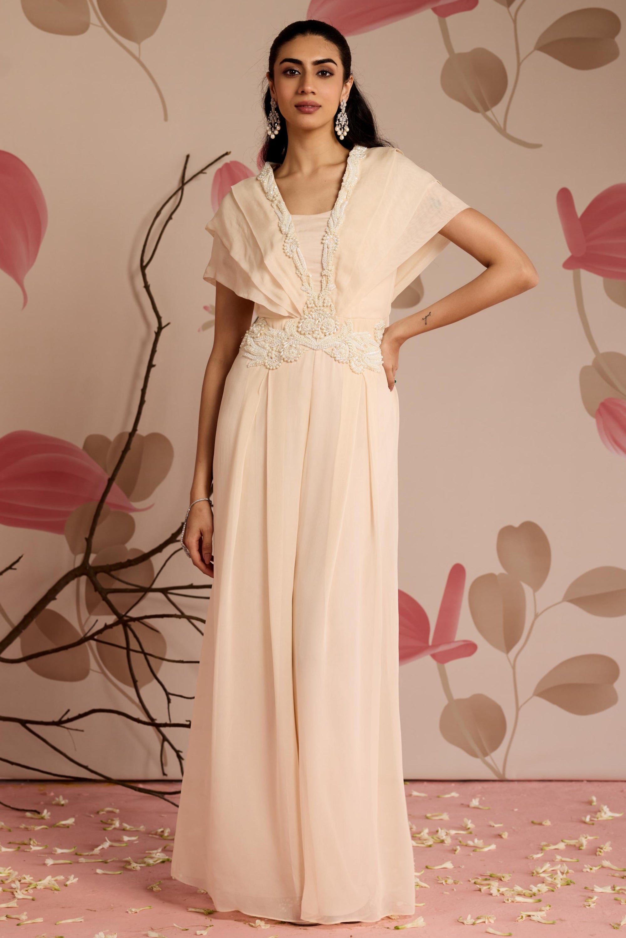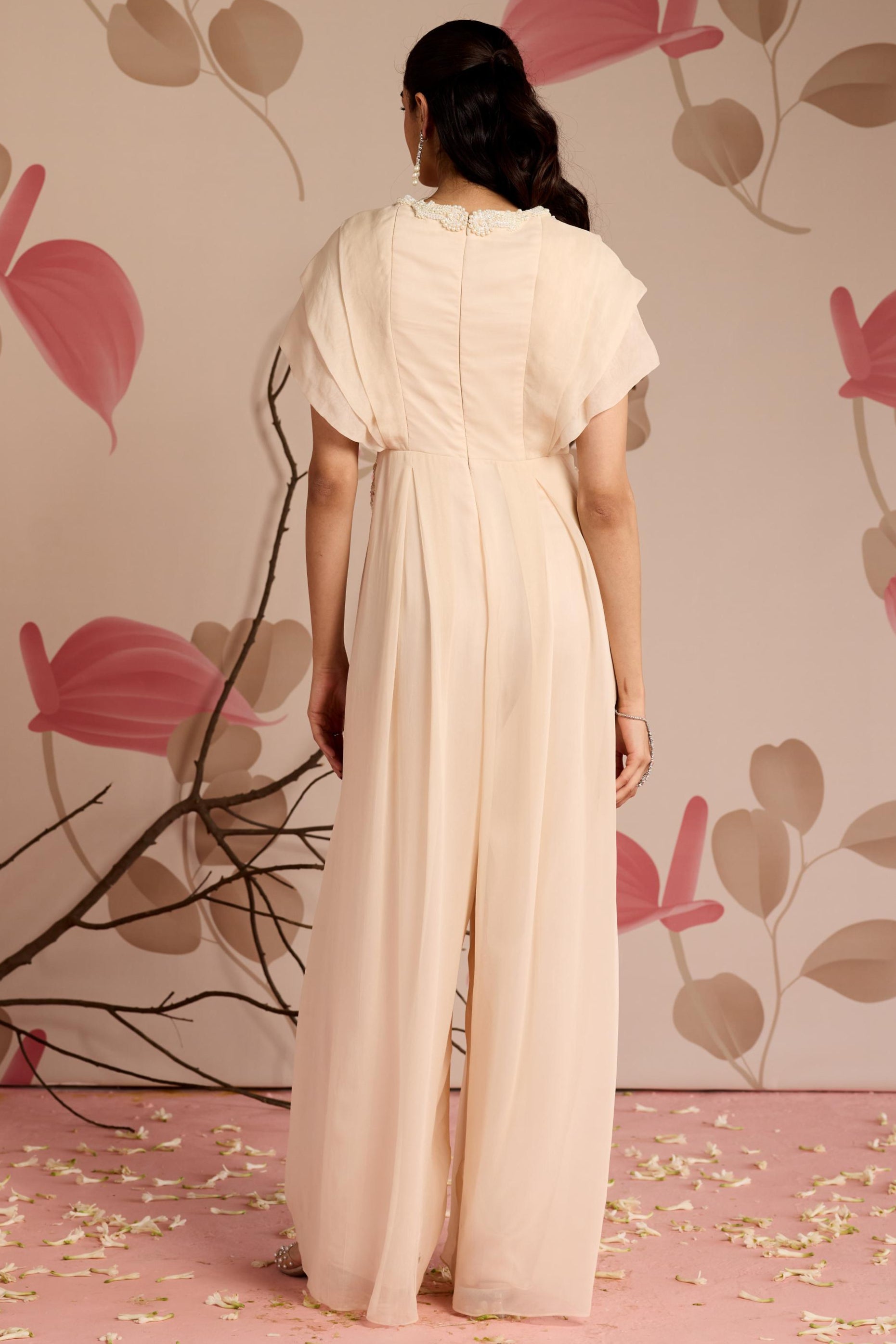 The Ivory Hibiscus Under Bloom Jumpsuit is a chic and modern piece that beautifully combines elegance with a touch of nature-inspired beauty. Featuring a soft ivory base with delicate hibiscus flower detailing, this jumpsuit offers a flattering, tailored fit that exudes both sophistication and comfort. The lightweight fabric ensures all-day ease, while the floral accents add a feminine and refreshing twist to the classic jumpsuit design. Perfect for day-to-night transitions, casual gatherings, or special occasions, this jumpsuit is a versatile and stylish choice for those who appreciate a refined, nature-inspired look with contemporary flair.