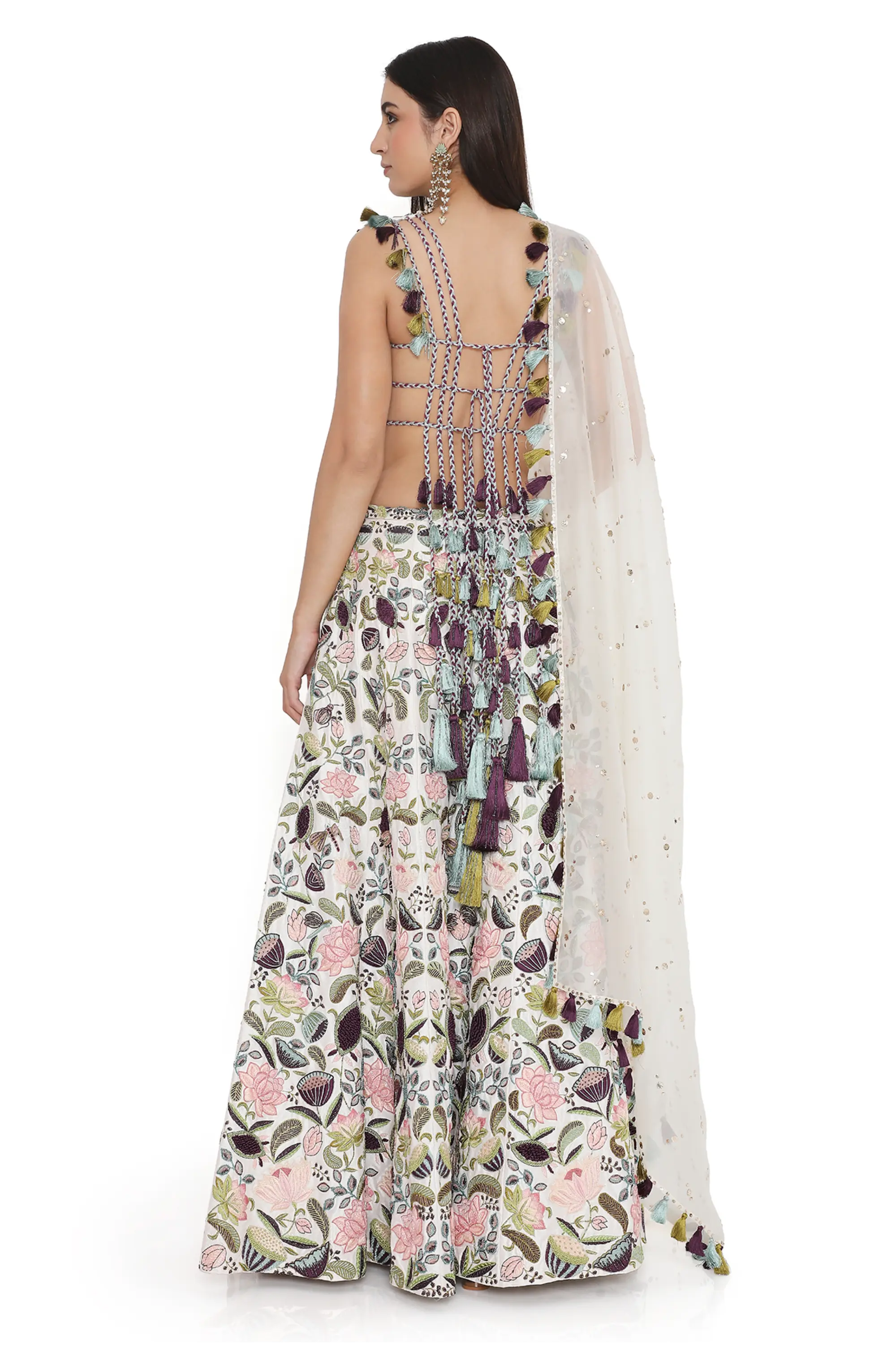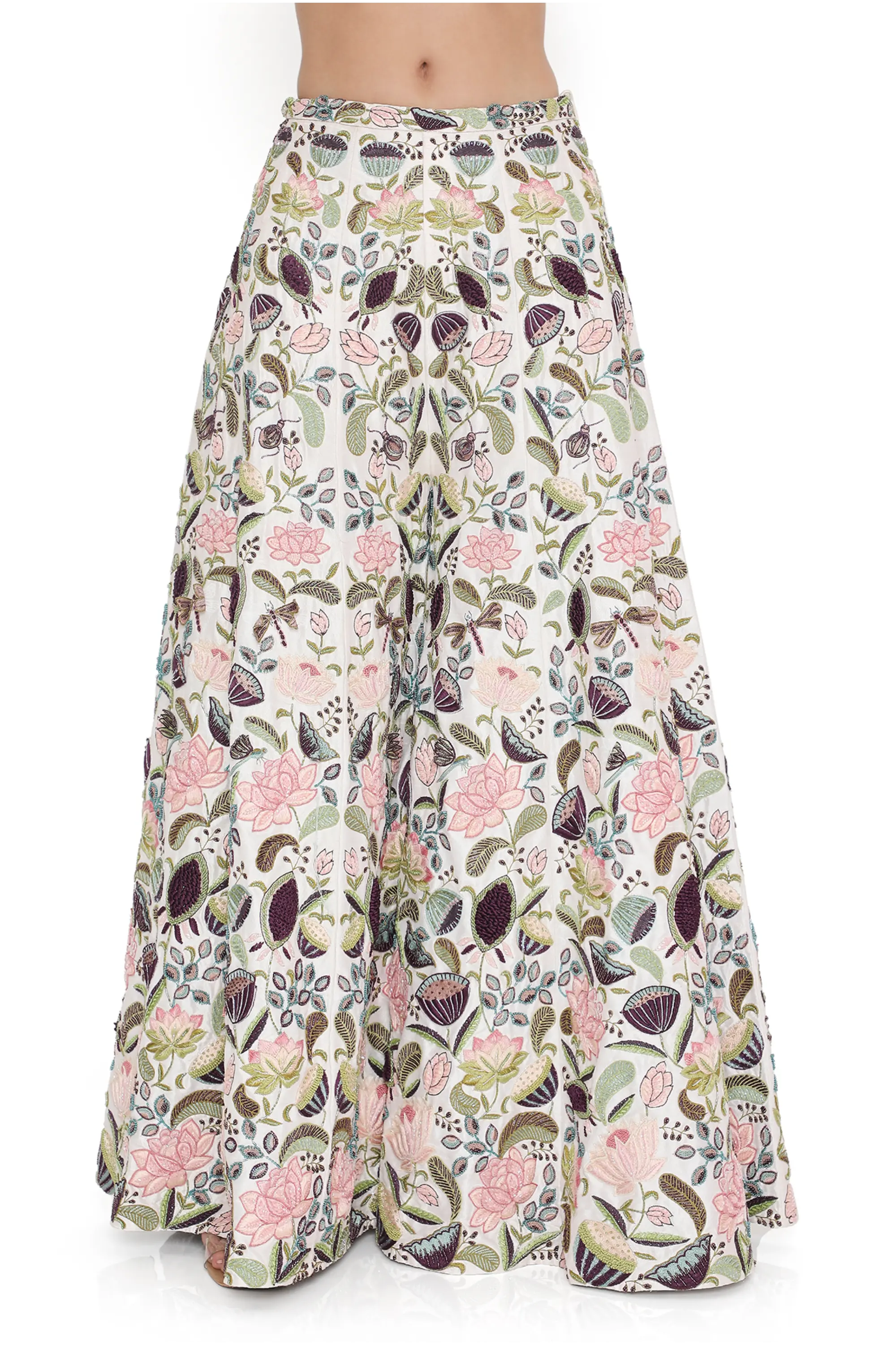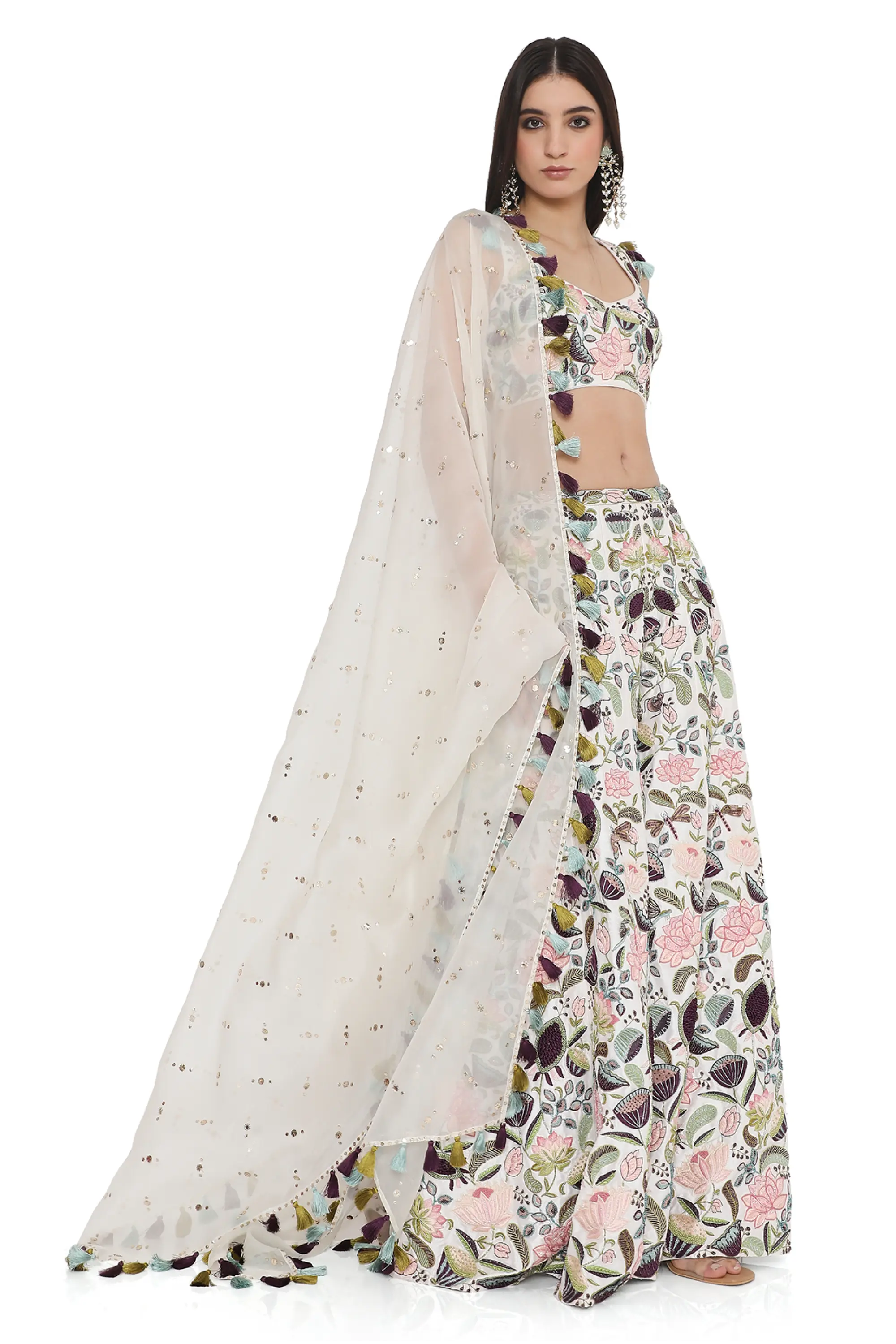 Ivory lotus embroidered choli with sharara and dupatta