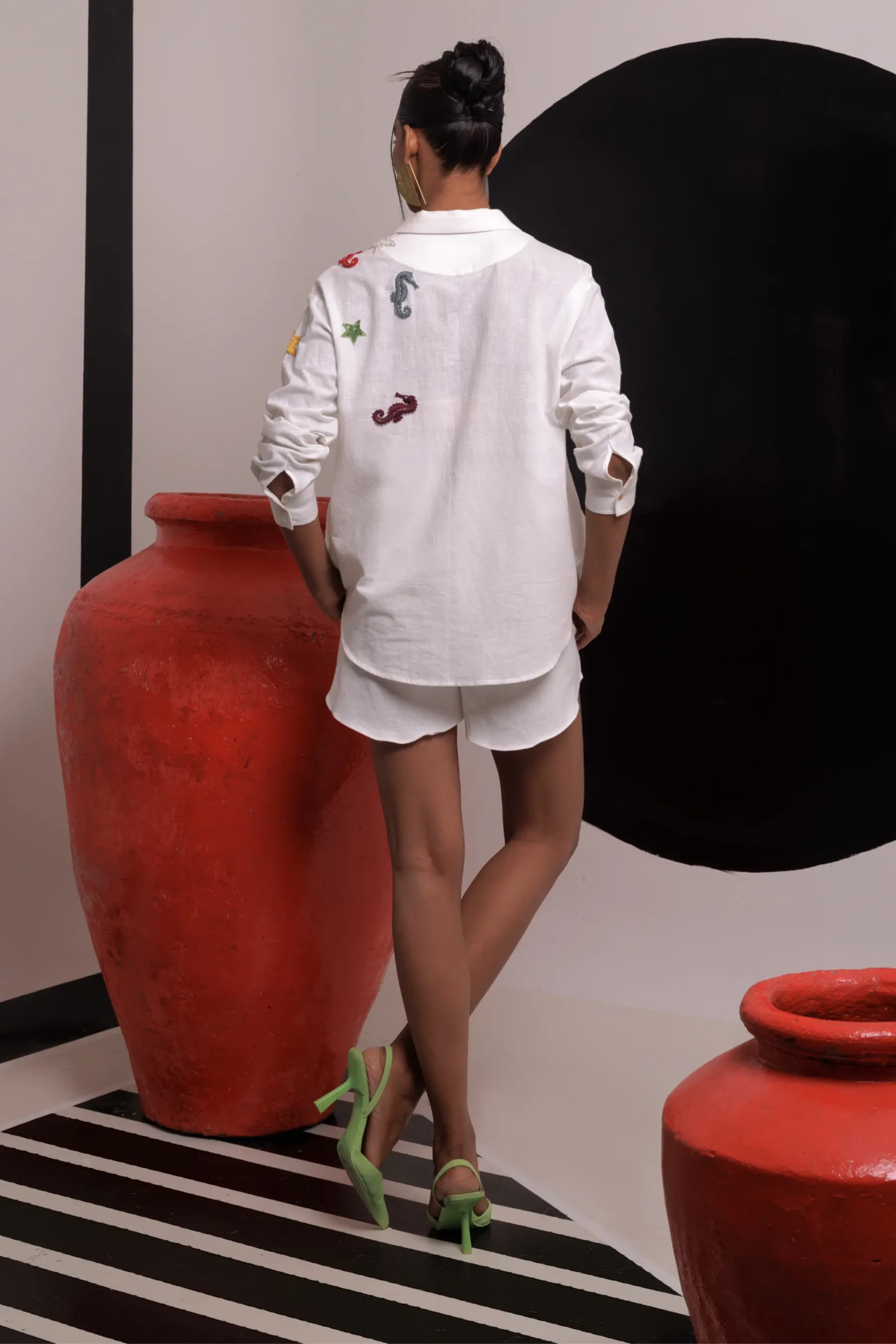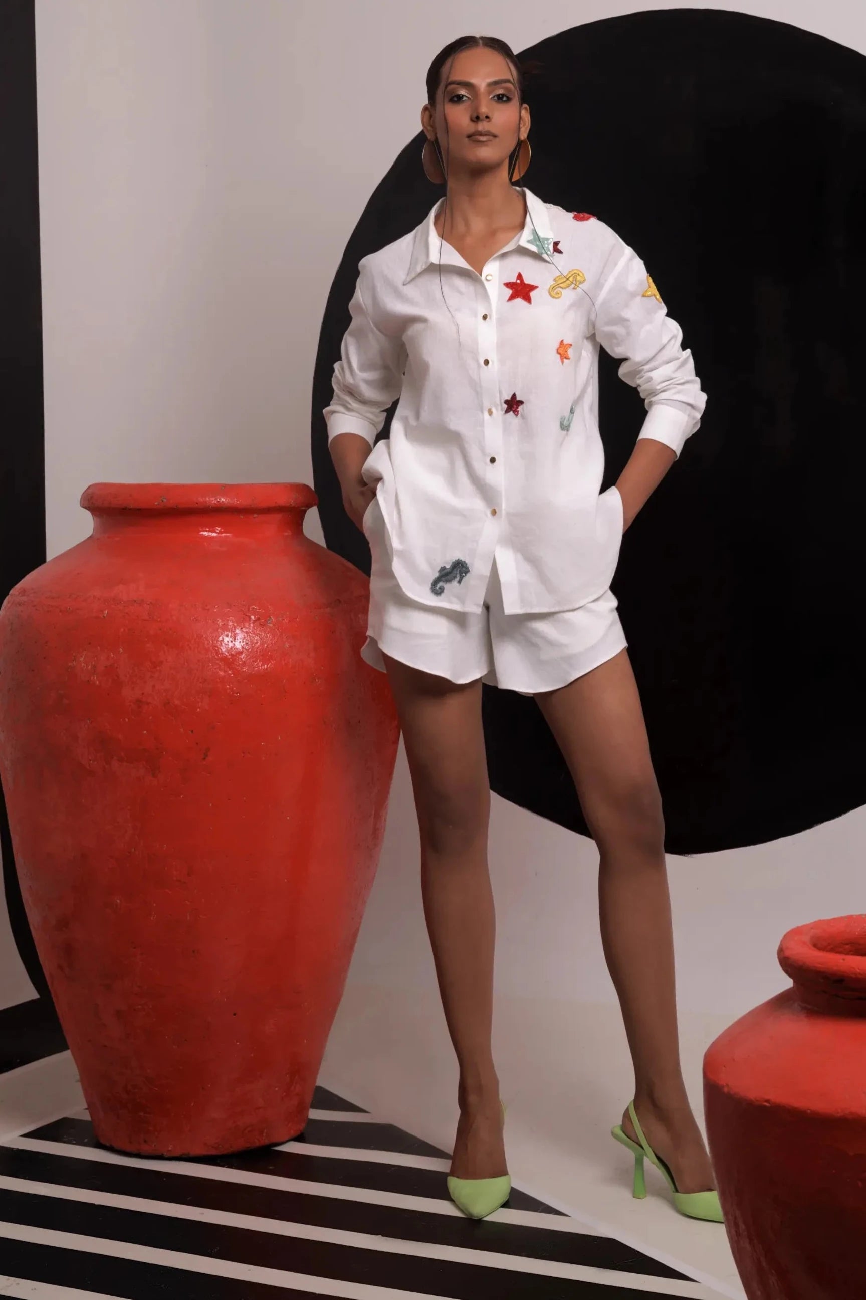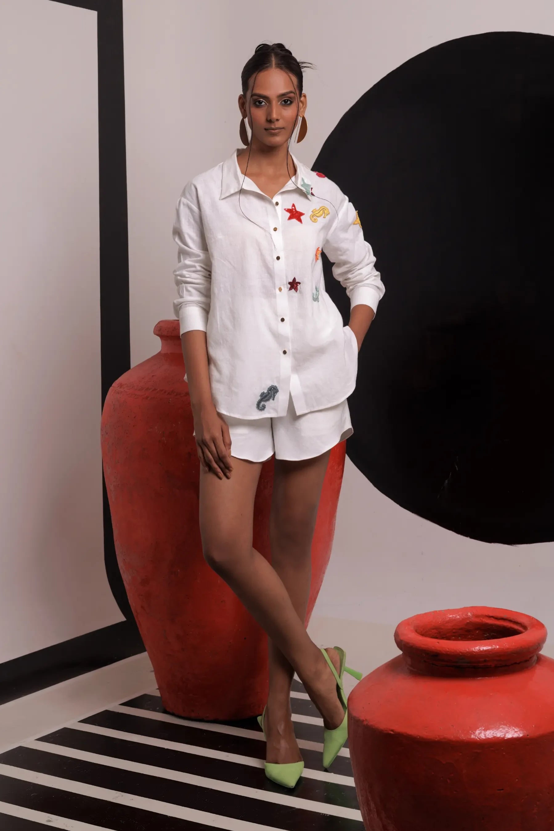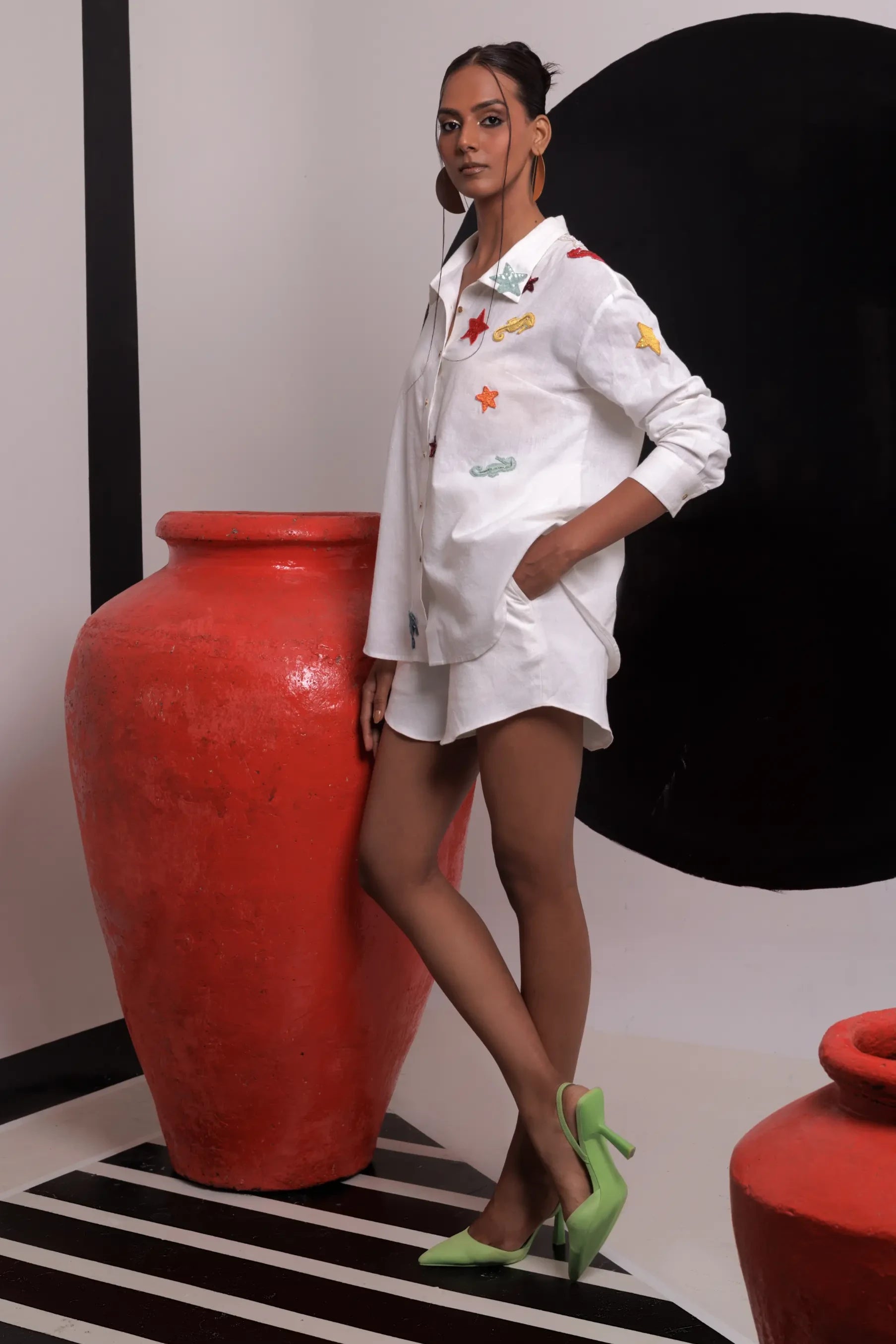 Elevate your casual wardrobe with our Ivory Multi-Color Patch Shirt paired with Shorts. This vibrant ensemble features an eye-catching patchwork design that combines a playful mix of colors, adding a pop of personality to your outfit. The lightweight, breathable fabric ensures comfort throughout the day, making it perfect for warm weather outings.