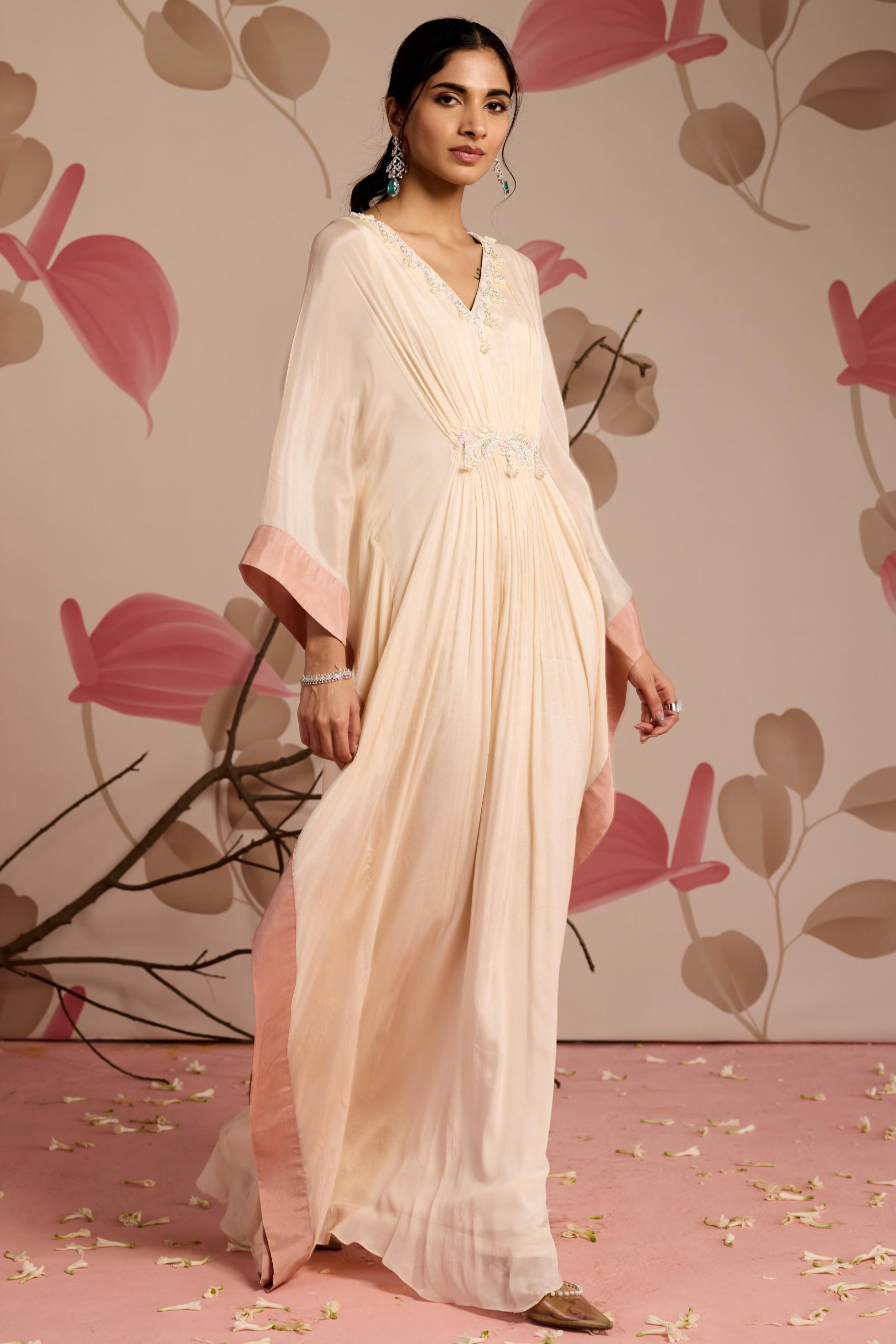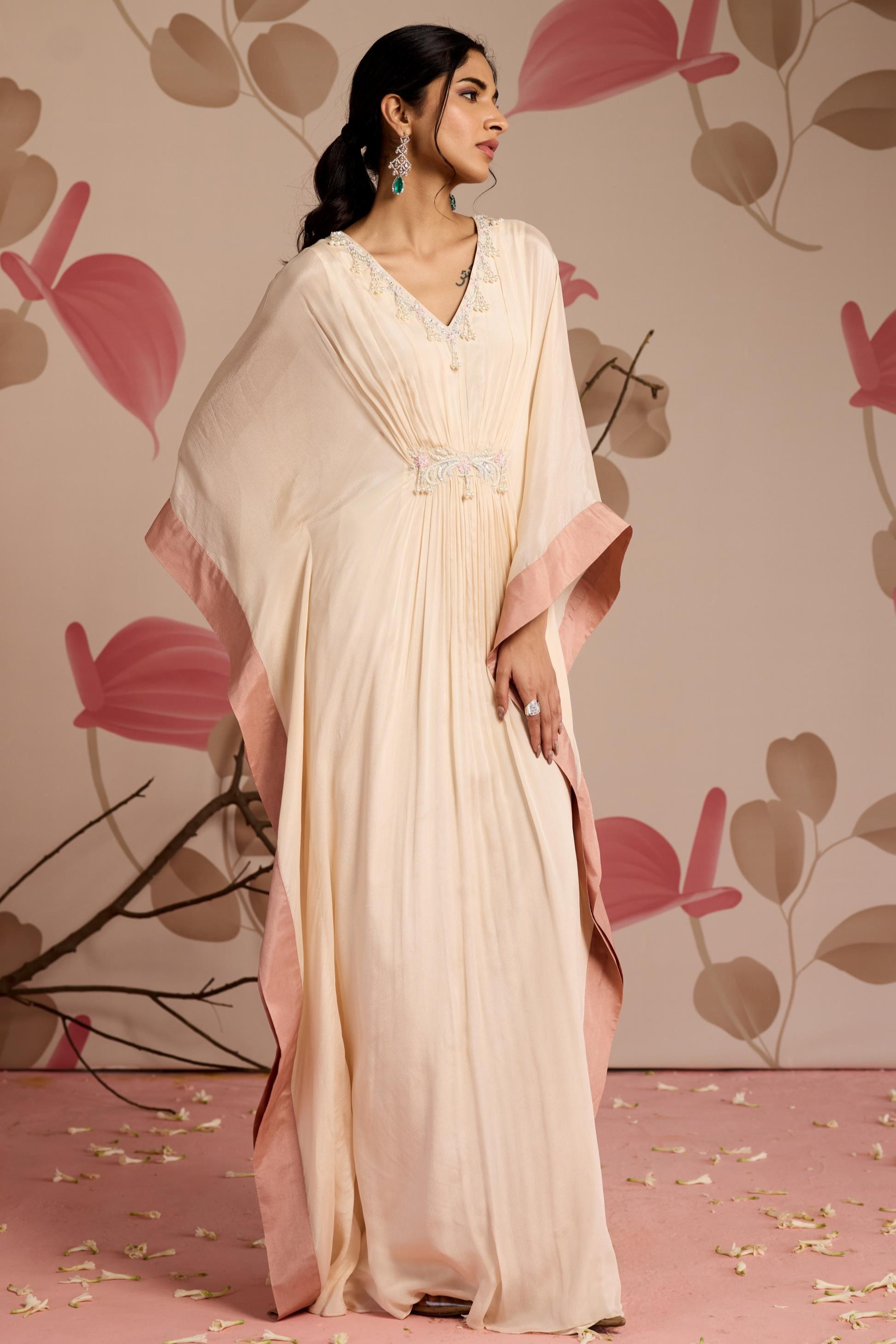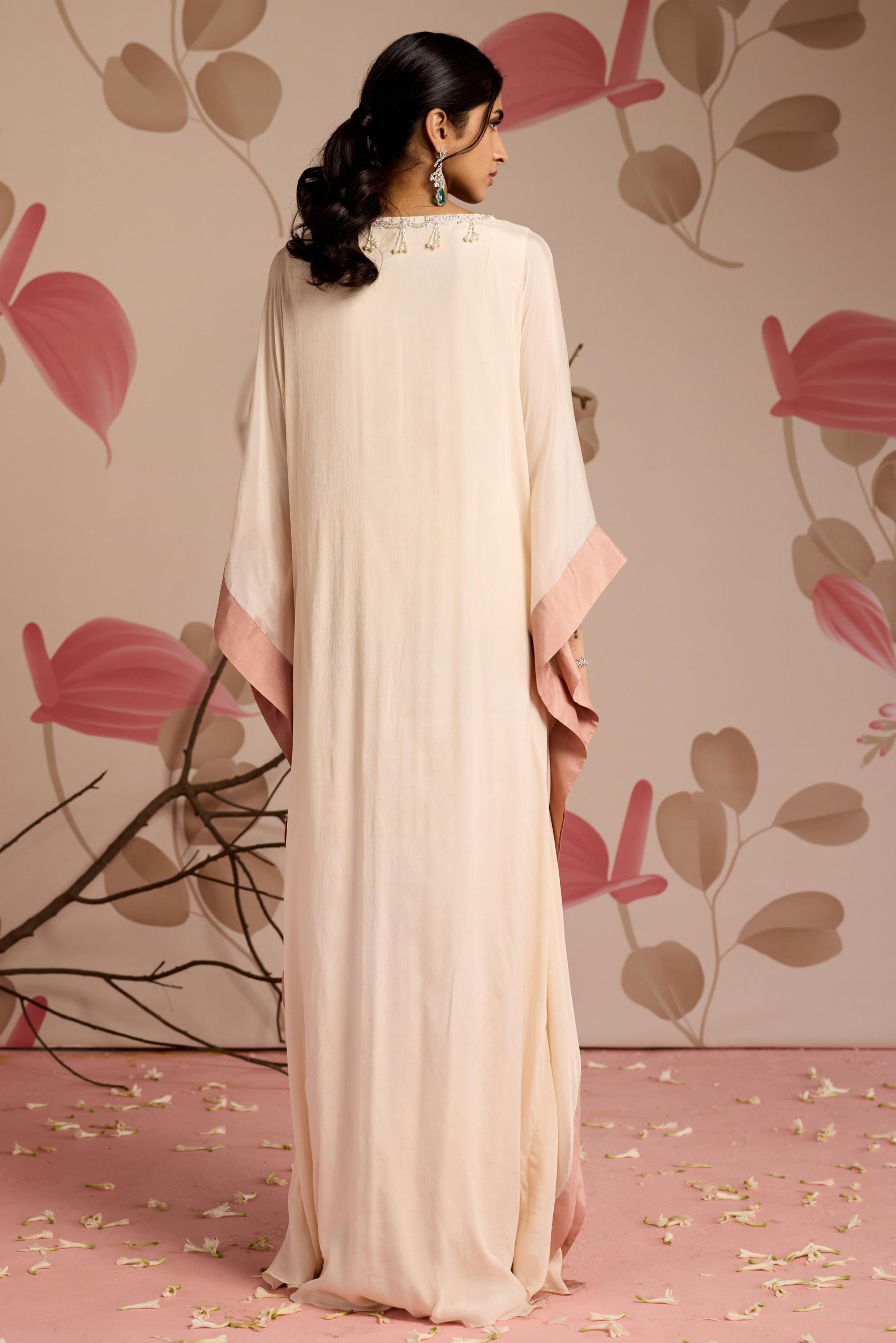 The Ivory Orchid Under Bloom Kaftan is a graceful and sophisticated piece that combines the timeless elegance of ivory with the delicate beauty of orchid-inspired floral detailing. Featuring a flowing, relaxed silhouette, this kaftan drapes beautifully over the body, providing both comfort and style. The intricate orchid accents add a touch of nature's charm, while the soft ivory hue exudes a sense of purity and refinement. Ideal for resort wear, casual gatherings, or evening relaxation, this kaftan offers a fresh, feminine look with a modern twist. A perfect choice for those who appreciate effortless elegance and nature-inspired designs.